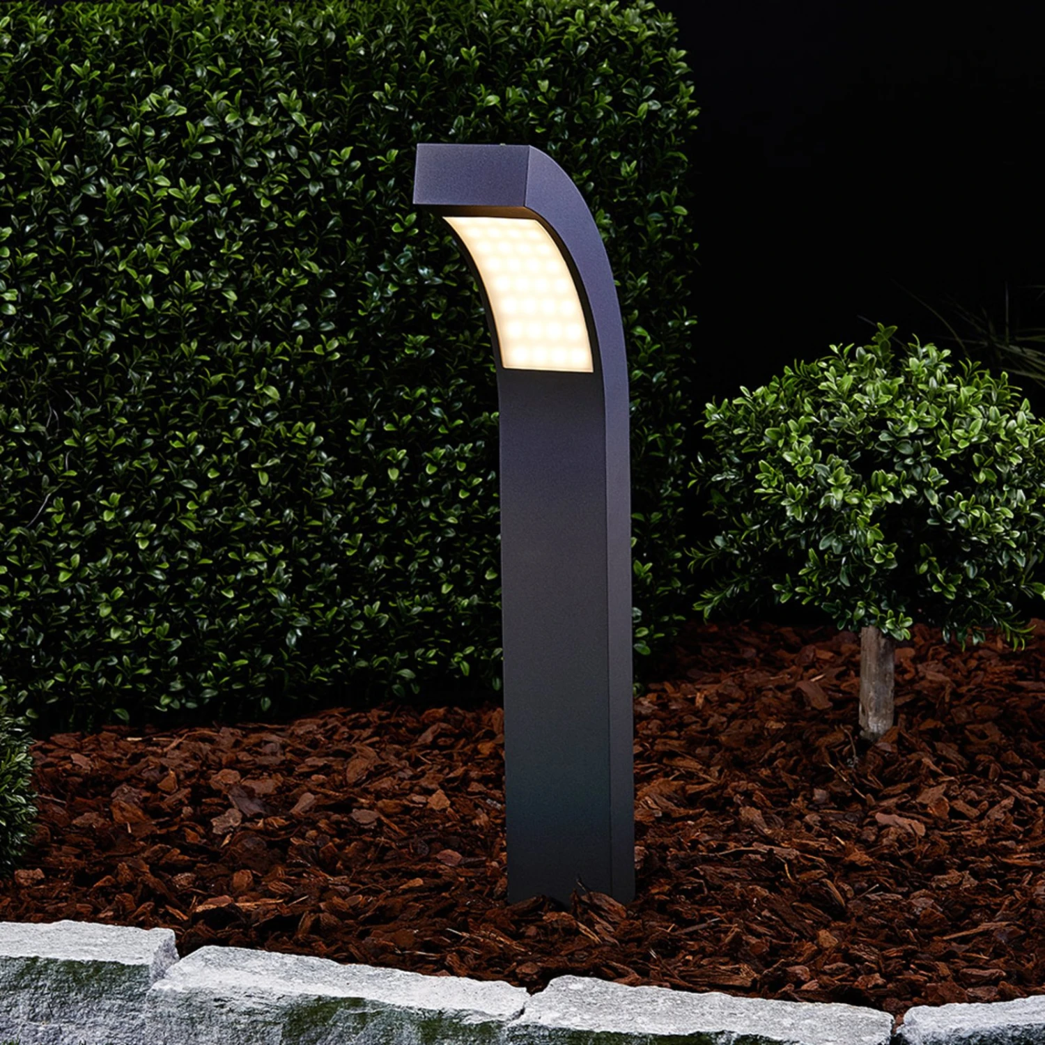 Gebogene LED-Sockelleuchte Lennik für eine energiesparende Beleuchtung von Außenbereichen