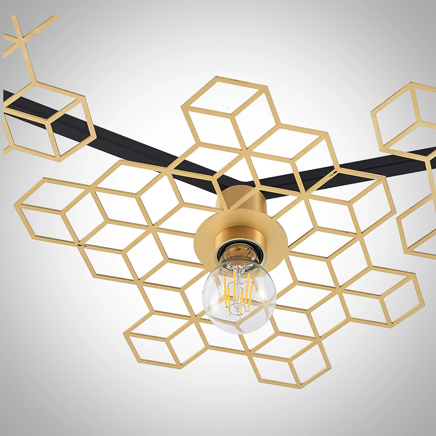 Die Deckenleuchte Alexaru ist ein wirklich edles Leuchtenprodukt, das sowohl gewerblich als auch privat eingesetzt werden kann. Bei der gewerblichen Nutzung empfehlen sich aufgrund der wirklich dekorativen Optik der Leuchtenserie vor allem Hotels und Restaurants als passende Einsatzorte. Dort präsentiert sich die Deckenleuchte dann mit einem ausgeprägten Objektcharakter und ist nie nur Lichtspender, sondern immer auch ein schönes Einrichtungsobjekt mit sagenhaften Blickfangqualitäten. Dabei nimmt die Leuchte, die auch an der Wand angebracht werden kann, schon allein wegen ihrer Dimensionen eine besondere Präsenz im Raum ein. Sechs in der Höhe leicht versetzte Grundelemente, die mittig jeweils mit einer E27-Lampe bestückt werden, bilden gemeinsam den Leuchtenkorpus von Alexaru und sie setzen sich auf kleinerer Ebene aus Waben zusammen, die auf noch kleinerem Feld jeweils aus drei Rauten bestehen. Wechselt man ein wenig die Perspektive, dann können die Waben durchaus auch eine optische Dreidimensionalität erkennen lassen und an das Abbild eines Würfels erinnern. Man sieht also schnell, dass es sich um ein durchdachtes Designkonstrukt handelt, das immer wieder überrascht. Die Wabenoptik entspricht ohne Zweifel einem sehr angesagten Trend im Einrichtungsbereich und die Leuchte für Wand und Decke verkörpert mit ihrem einzigartigen Ausdruck maximale Individualität und ein luxuriöses Flair. Midcentury meets Loft!