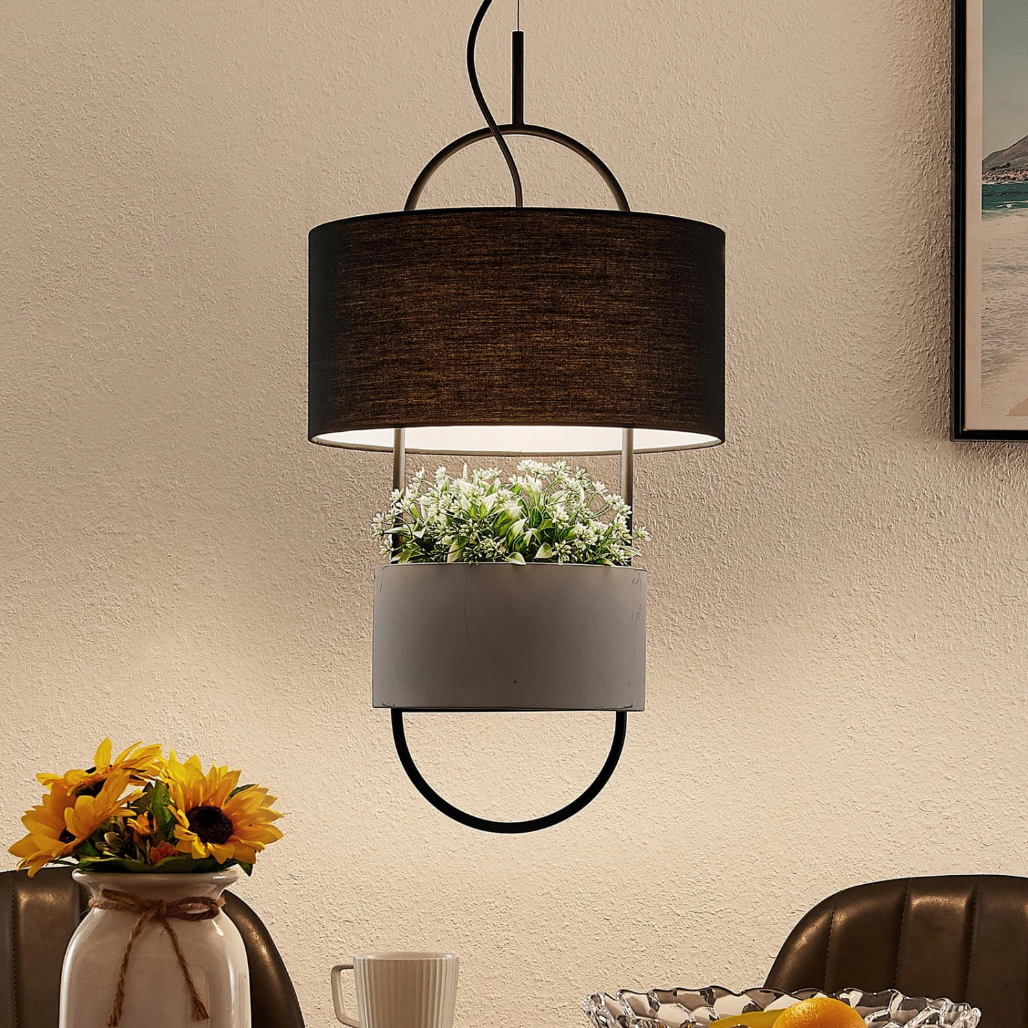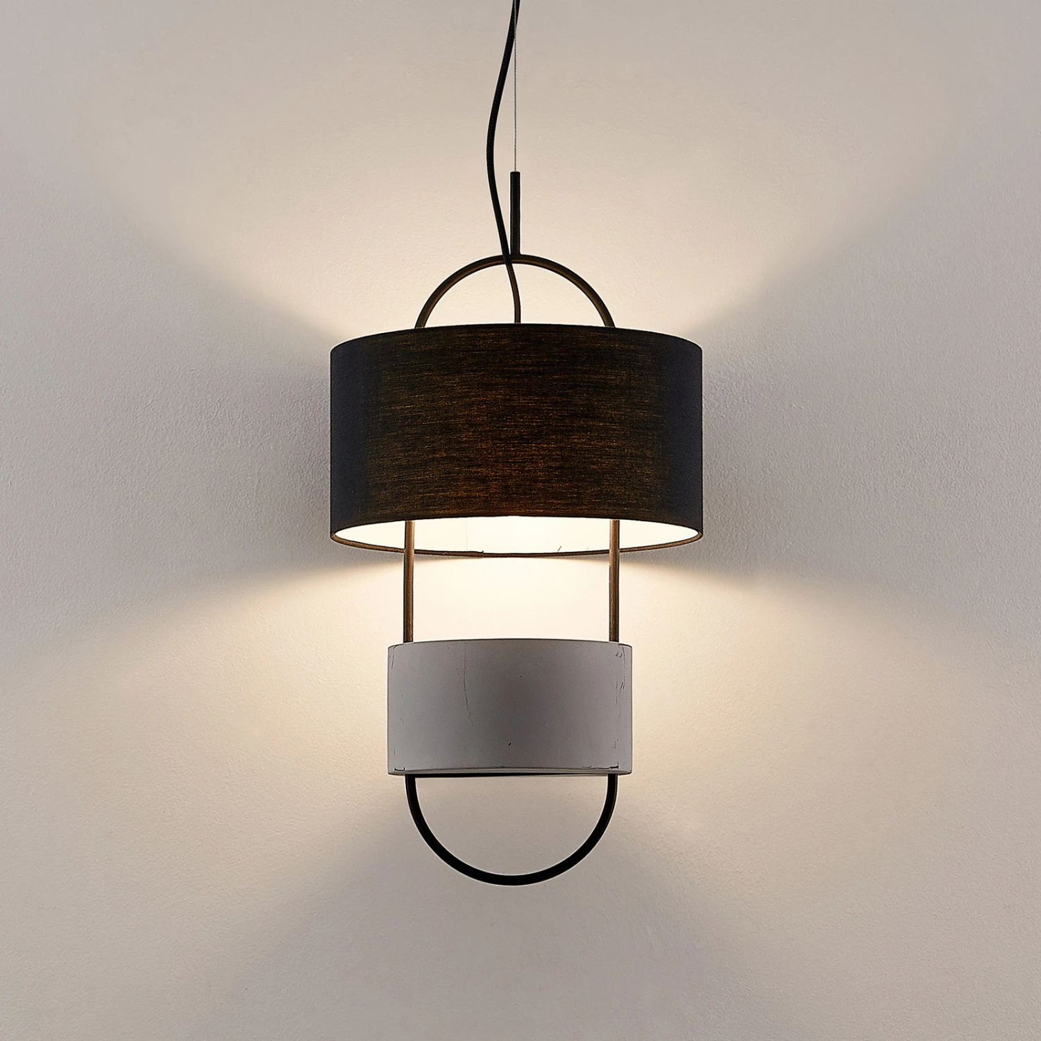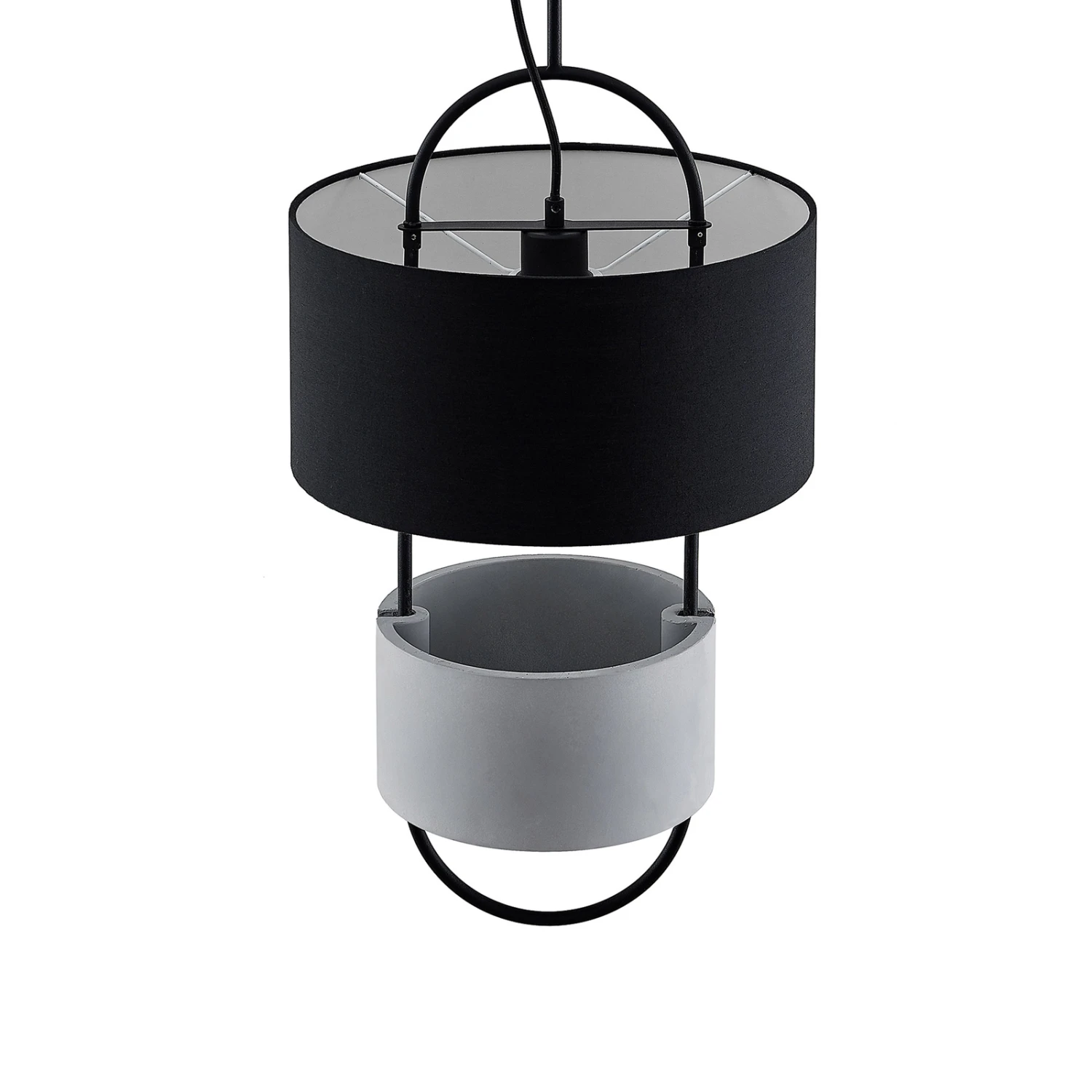 Pendellampe Amylee mit schwarzem Stoffschirm und Betonschale – ideal als stimmungsvolle Wohnraumbeleuchtung