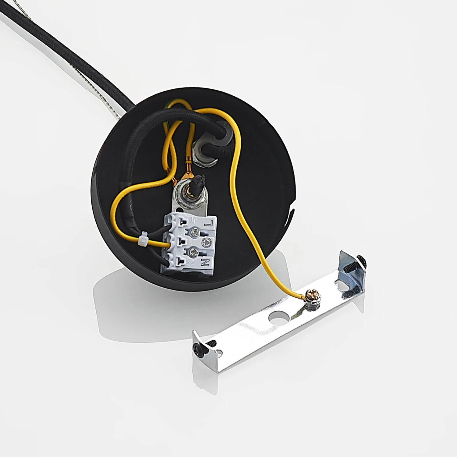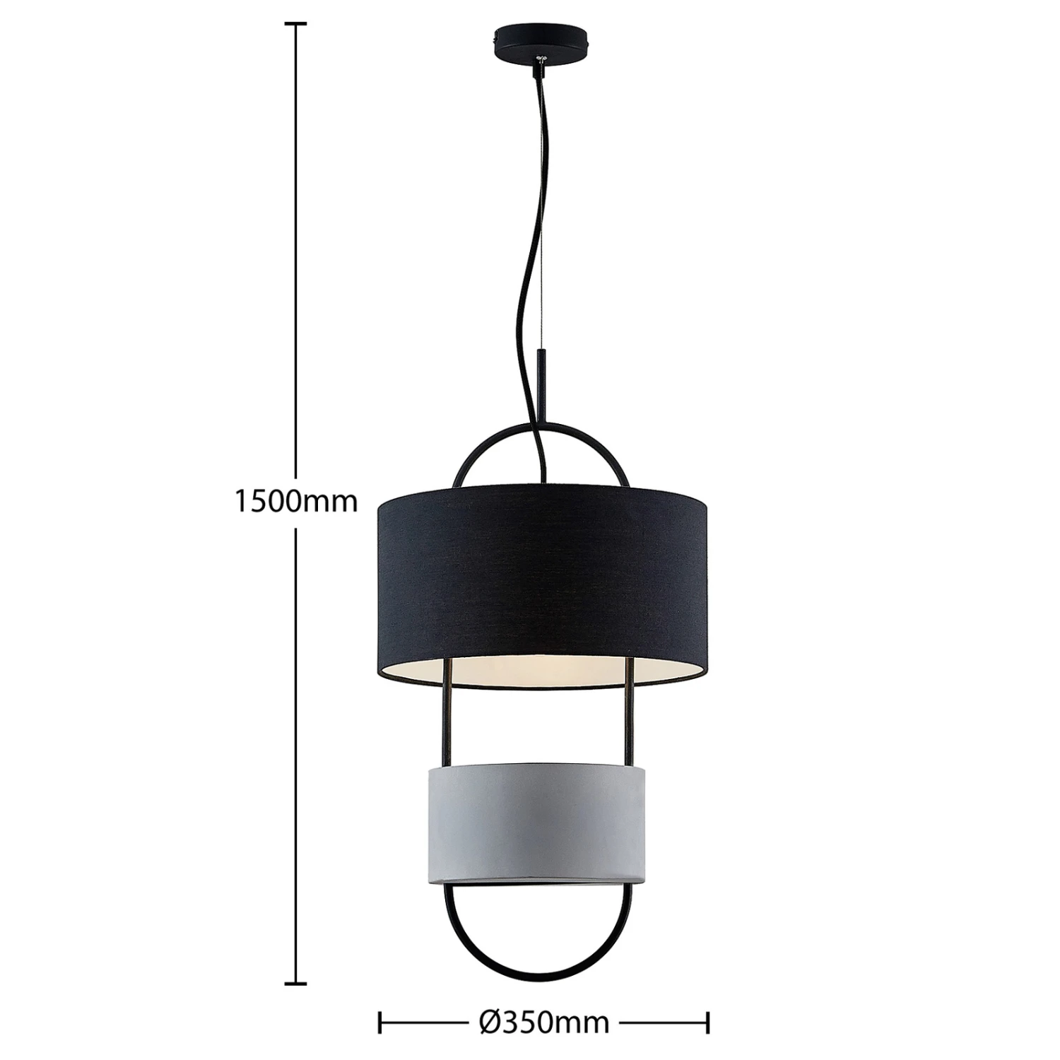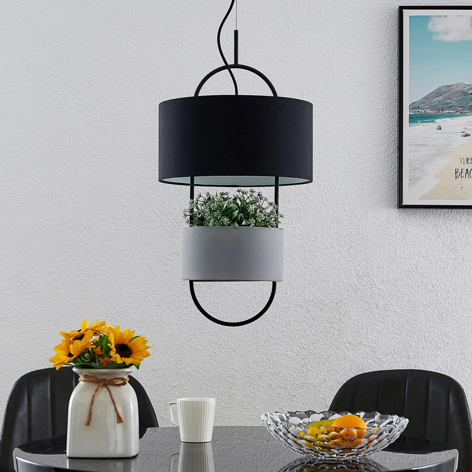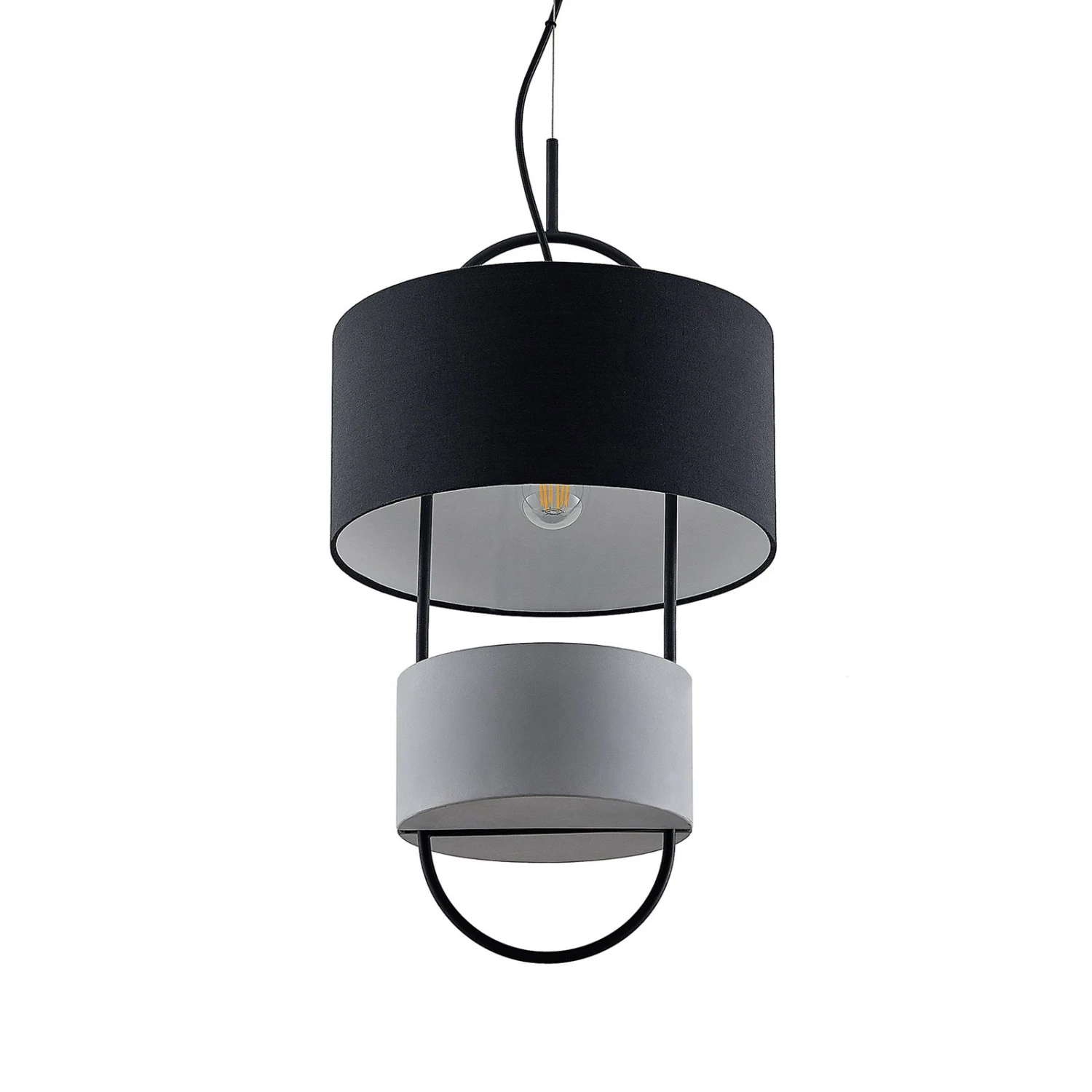 Pendellampe Amylee mit schwarzem Stoffschirm und Betonschale – ideal als stimmungsvolle Wohnraumbeleuchtung