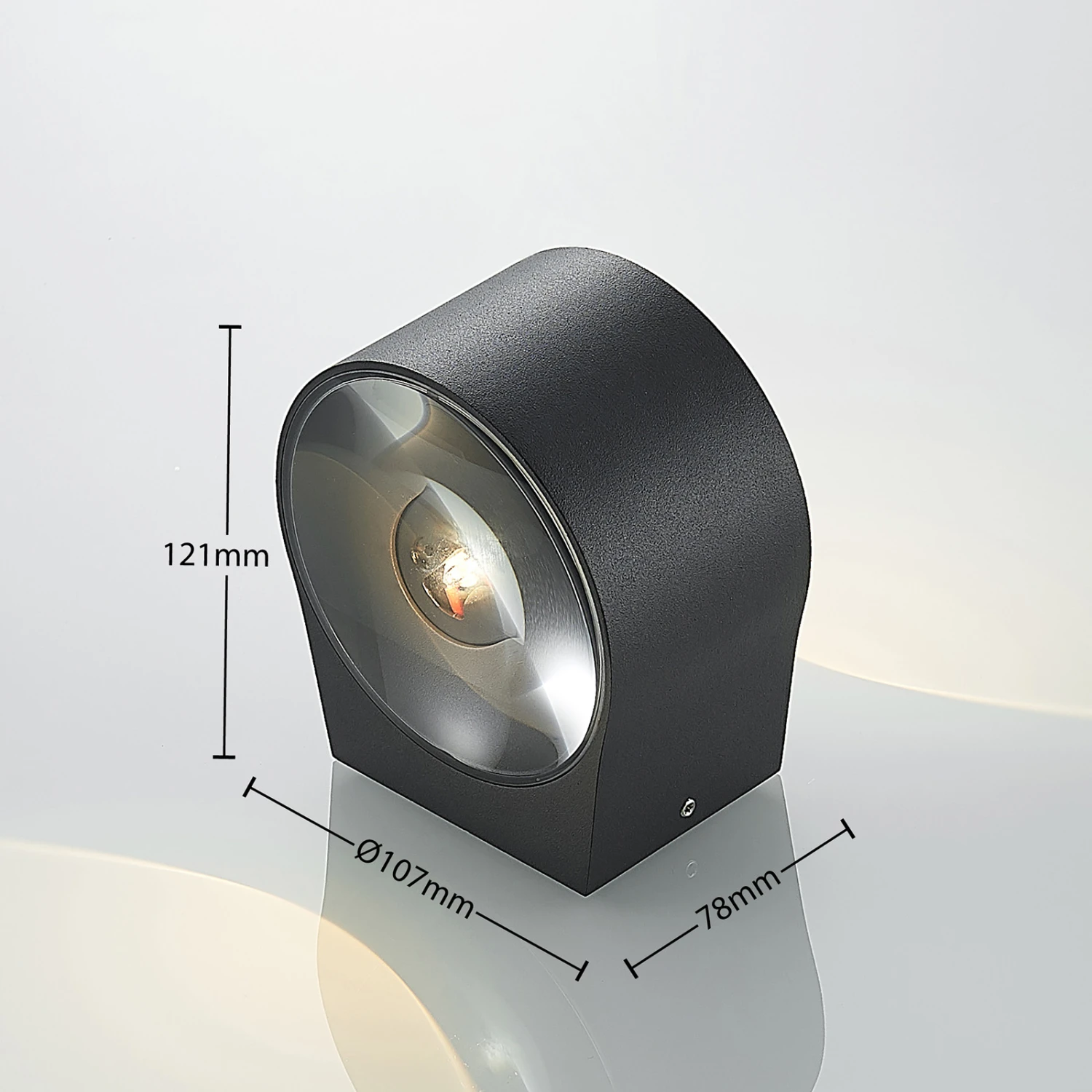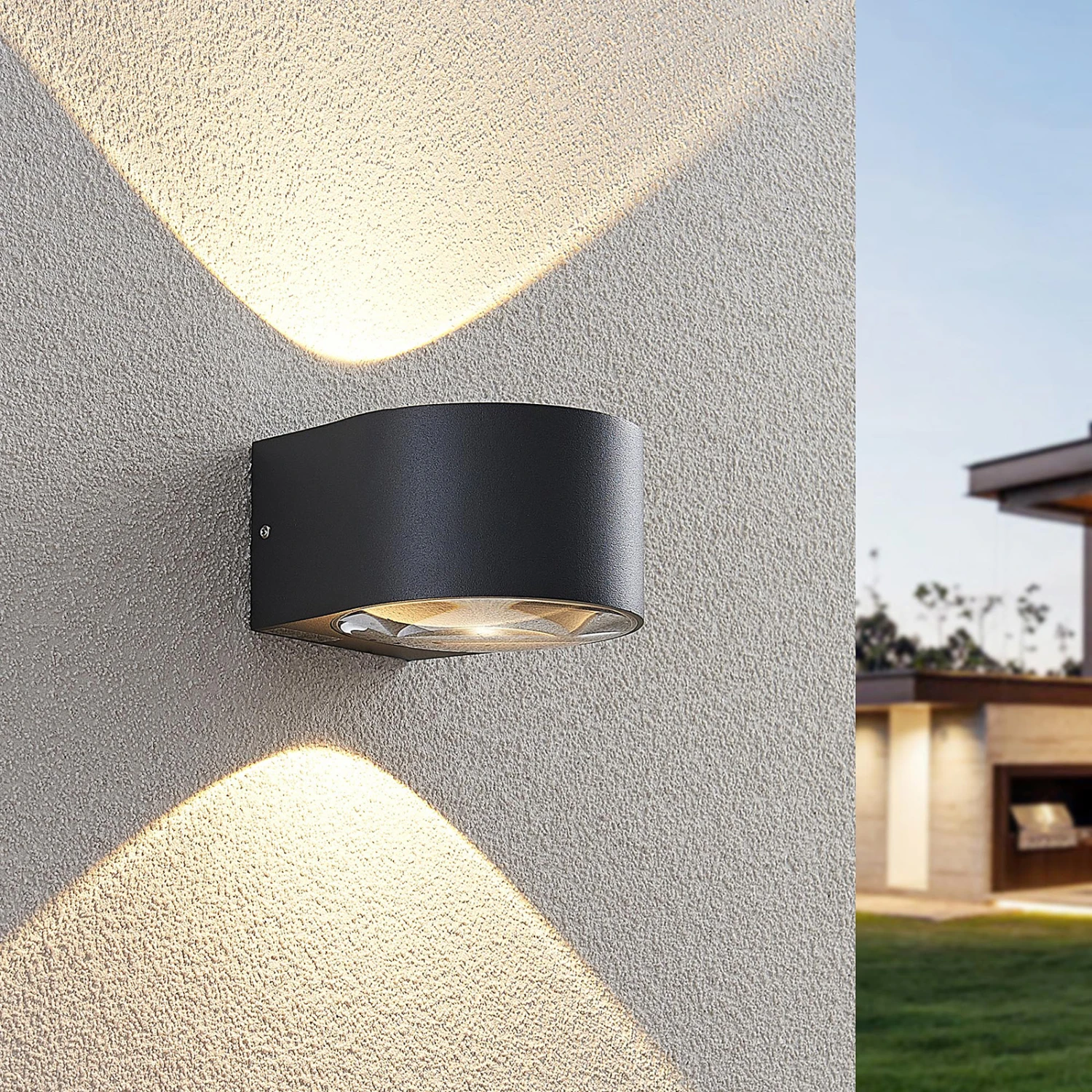 Astrida besteht aus einem zylindrischen Leuchtenkörper, der aus Aluminiumdruckguss besteht. Oben und unten sitzt jeweils eine Glaslinse, die für besonders schöne Lichtverhältnisse sorgt, die sich durch eine starke Konturierung auszeichnen. Schon von Weitem ist dieser Lichteffekt gut sichtbar und macht die Fassade eines Hauses auch bei Nacht zum einem stilvollem Objekt. Insbesondere moderne Umgebungen profitieren von dem besonderen Look der Wandleuchte, die für den Einsatz im Außenbereich gedacht ist. Dabei profitiert Astrida von einer guten Stoßfestigkeit (IK06) und dank möglicher Durchgangsverdrahtung lassen sich auch einige Leuchten komfortabel nebeneinander anbringen.