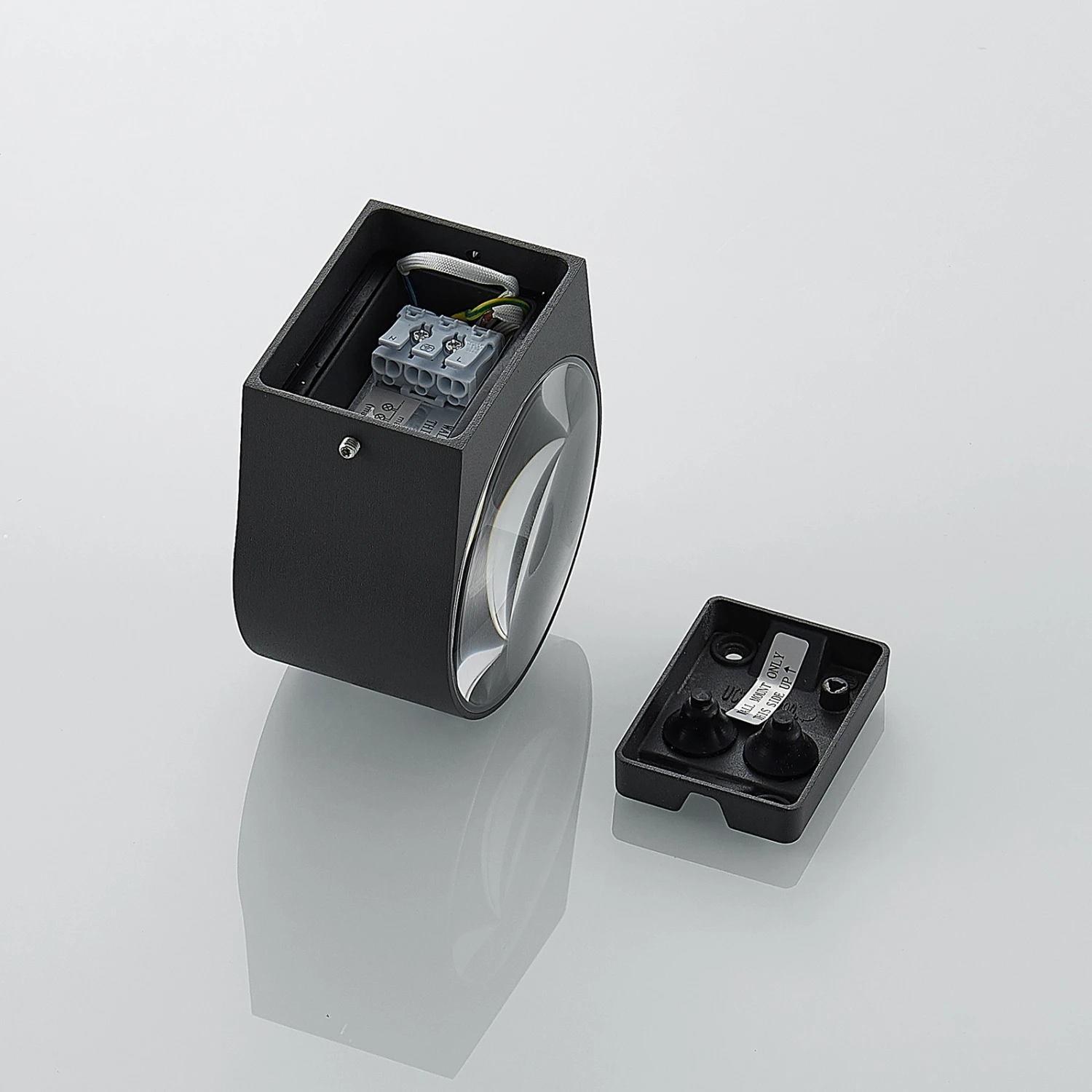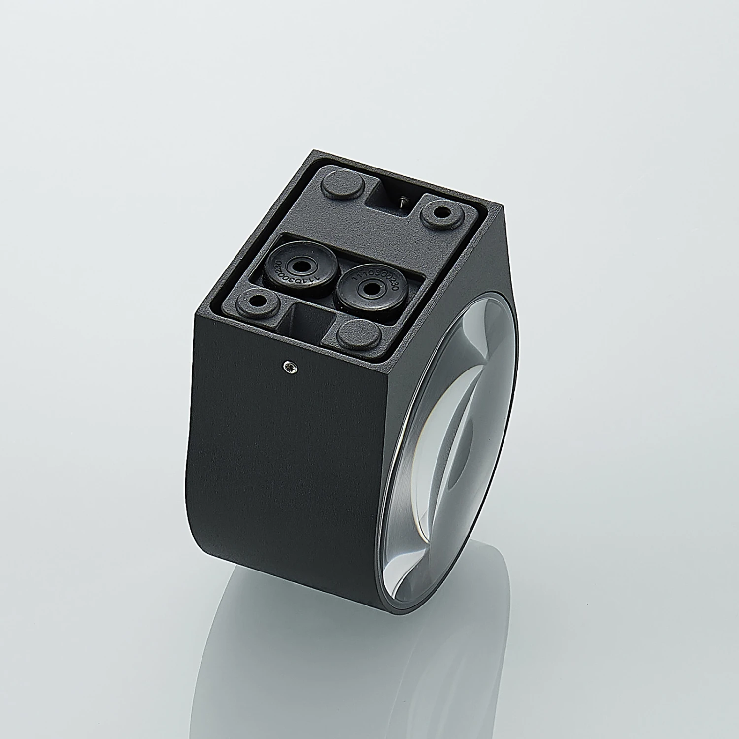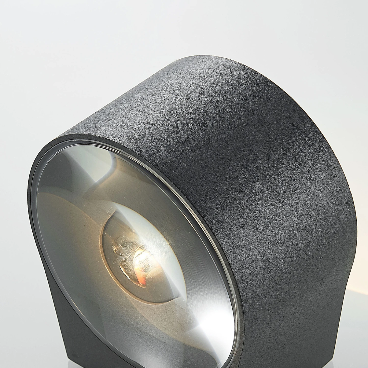 Dunkelgraue LED-Wandleuchte Astrida mit zwei Glaslinsen für effektvollen Lichtschein