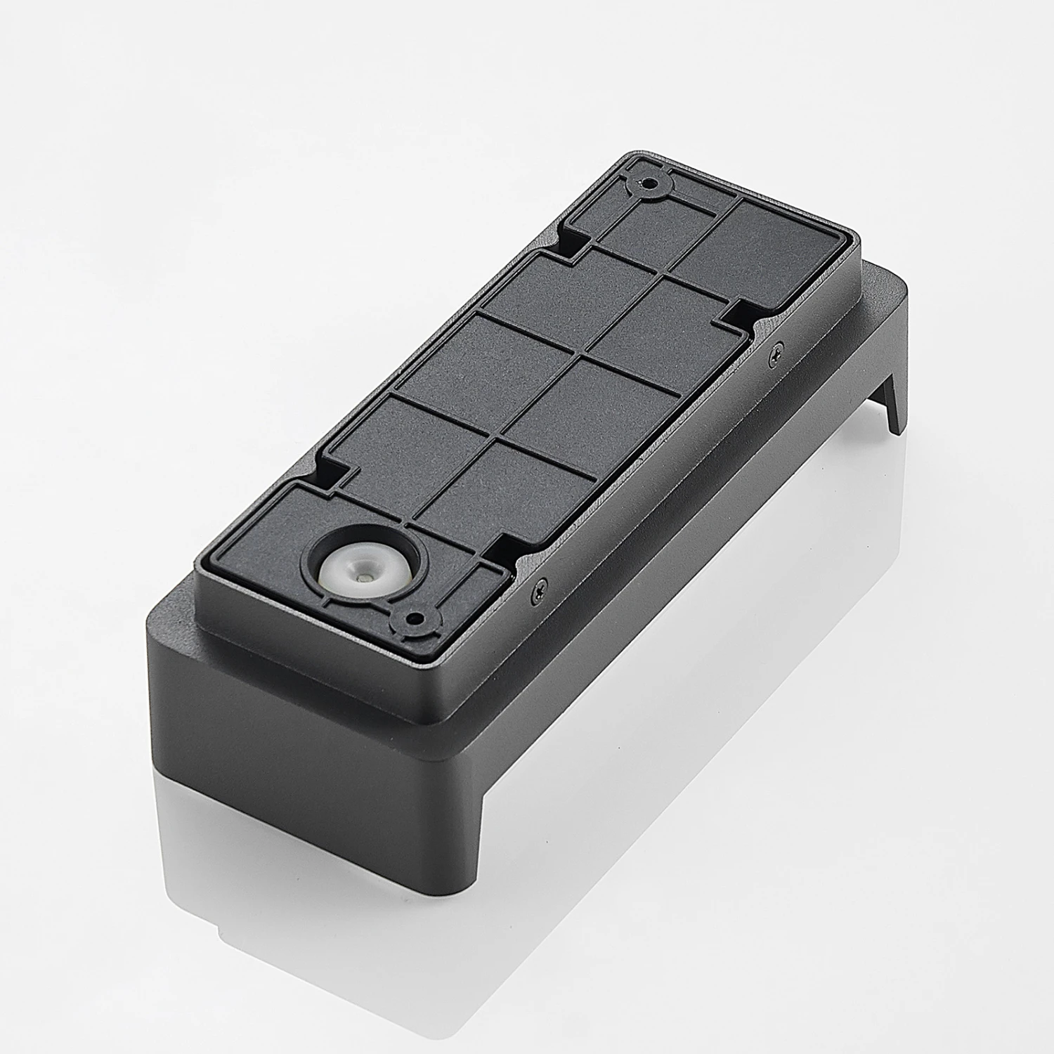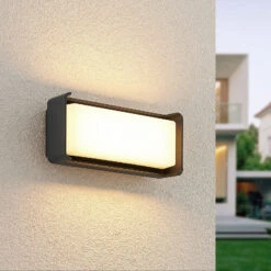 Eine einfache eckige Form kennzeichnet die praktische LED-Außenwandleuchte Babet. Sie besteht aus einem dunkelgrauen Korpus aus Aluminium, der mit einem opalweißen Diffusor ergänzt wird. Hinter diesem versteckt sich die leistungsstarke LED-Technik, die mit einem warmweißen Licht gleichmäßig und energieeffizient die Umgebung erhellt. Dank der hohen Schutzart von IP65 ist Babet als Außenleuchte staubdicht und gegen Strahlwasser geschützt, sodass sie überall im Außenbereich, ob Haus, im Garten oder an der Garage montiert werden kann.