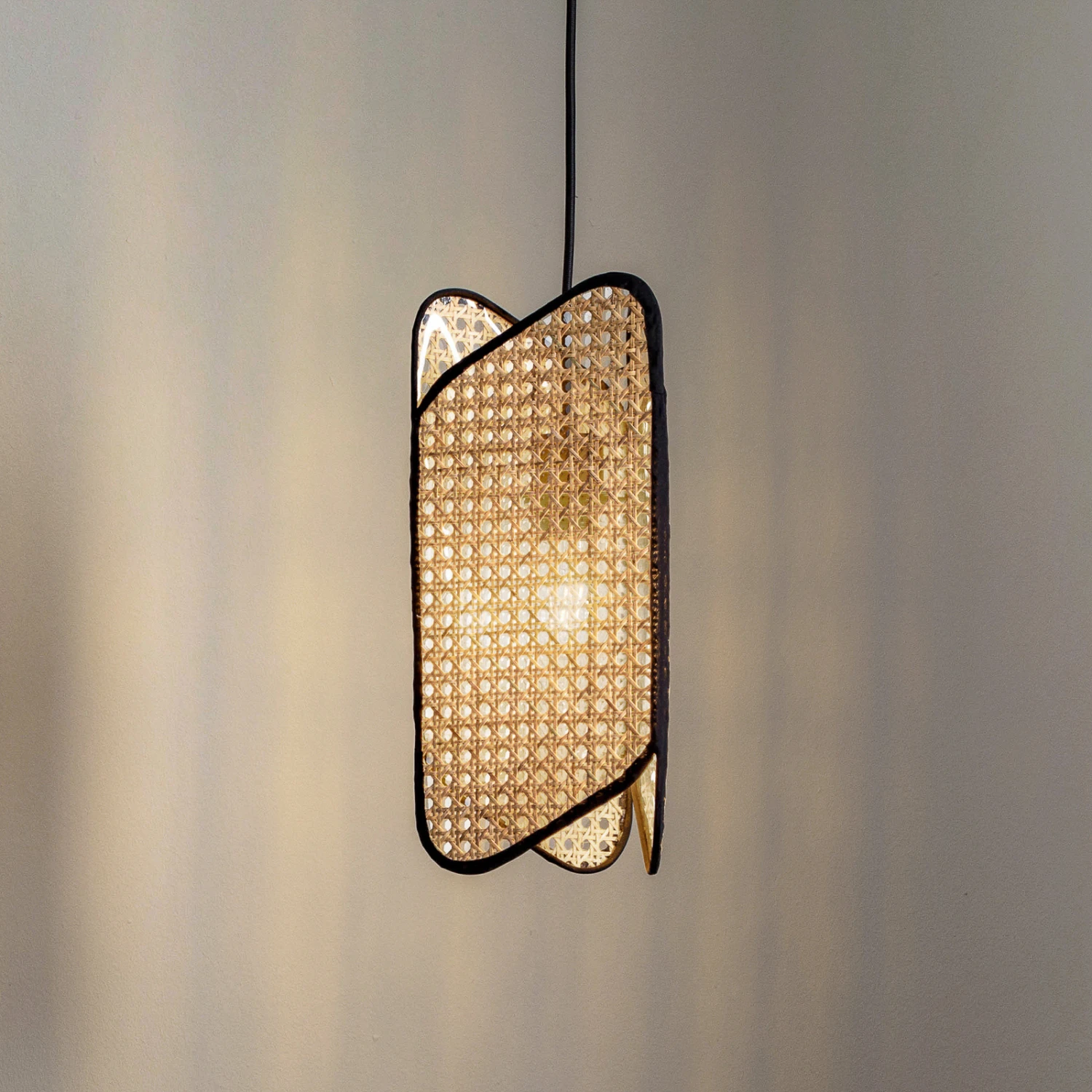 Bassiola überzeugt mit einer dekorativen Gestaltung in einem exklusiven Design von Ingo Thiele. Die Hängeleuchte hat einen Lampenschirm, der sich aus drei schwarz gerahmten Seitenteilen zusammensetzt, die das typische Wiener Geflecht aufweisen, das schon zu Beginn des letzten Jahrhunderts ein beliebtes Gestaltungsmerkmal war und von seiner Popularität nichts eingebüßt hat. Damit entsteht eine besonders natürliche Optik mit dem hellen Bambuston, die sich gut mit Boho-Einrichtungsstilen kombinieren lässt, bei denen natürliche Materialien und Behaglichkeit zu den kennzeichnenden Charakteristika zählen. Der Schirm aus Bambus mit seinem attraktiven Geflecht trägt außerdem zu einem sehr schönen Lichtbild bei, das Licht und Schatten kunststvoll miteinander verbindet und die Gemütlichkeit sehr in den Vordergrund rückt.