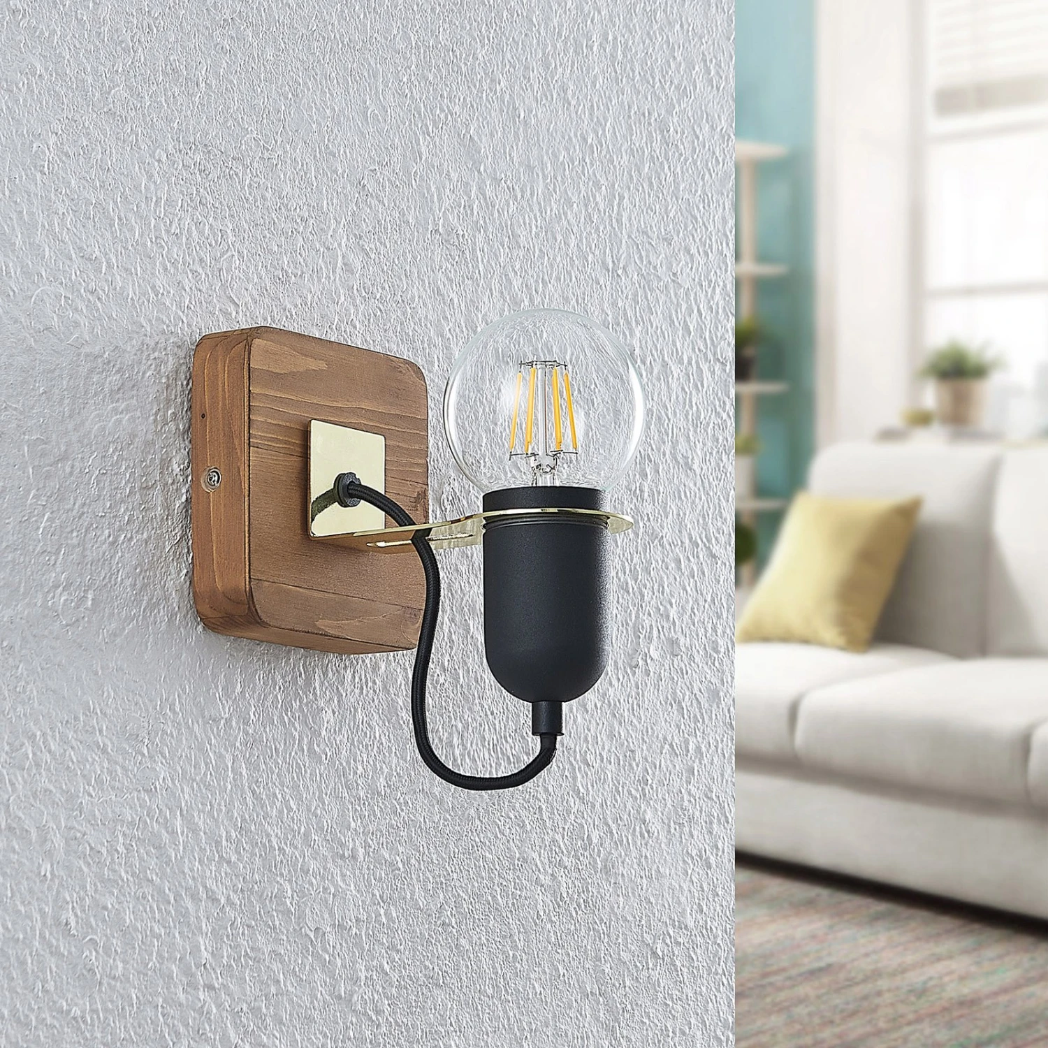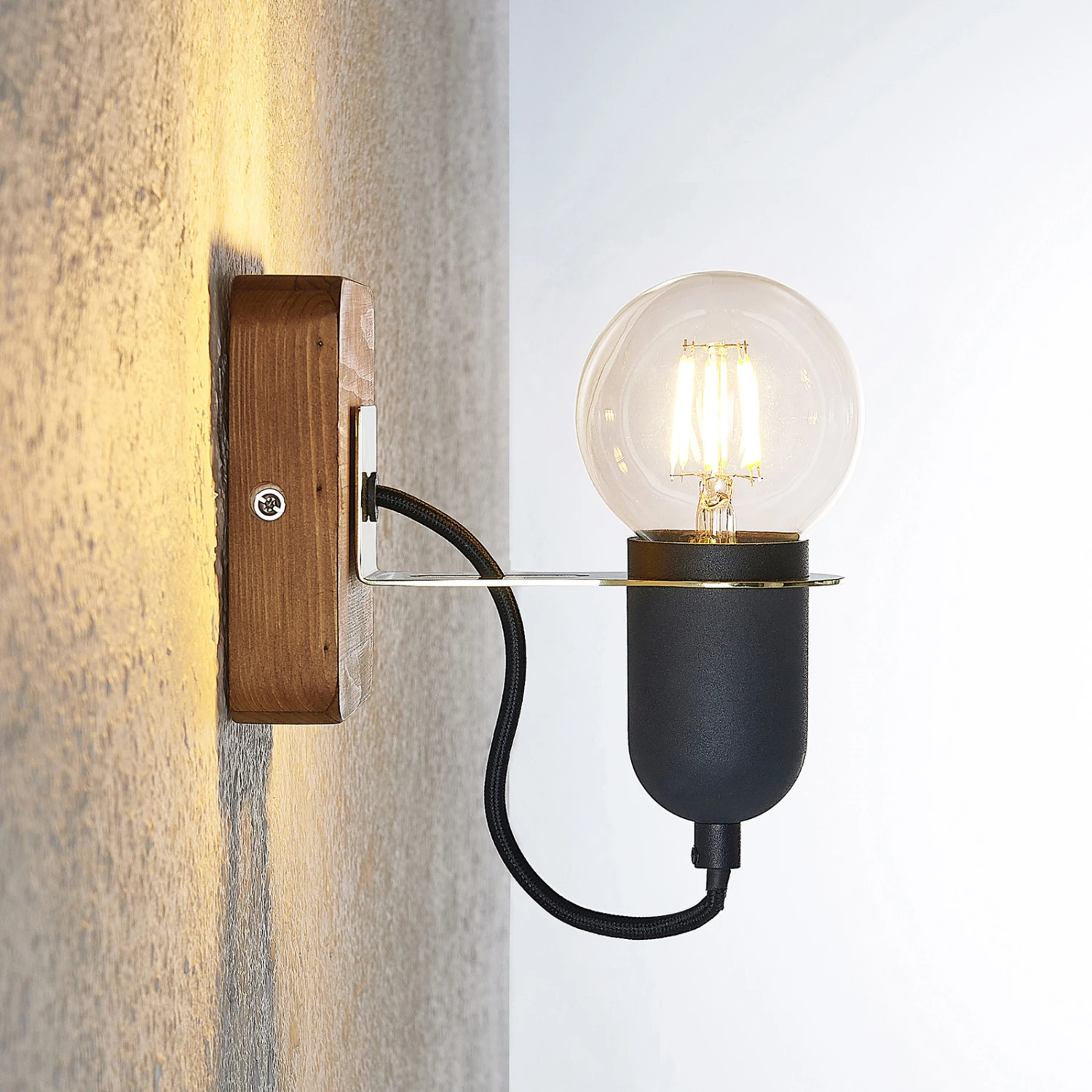 Wer auf der Suche nach einem markanten Wandspot ist, der neugierige Blicke auf sich zieht und auffällige Akzente an Wohnungswänden setzt, wird mit dem Wandspot Becky nicht enttäuscht. Der Spot sitzt an einer Wandhalterung aus Kiefernholz, der eine sandschwarze Fassung trägt, in die ein Leuchmittel eingesetzt werden kann. Möchte man der Leuchte das gewisse Etwas verleihen, so greift man in diesem Fall nach einem Filament-Leuchtmittel, welches mit seinem besonderes Aussehen das Design der Leuchte weiter betont. Der Wandspot Becky besitzt einen stimmigen Farbkontrast aus hellem Holz und Schwarz und integriert sich gut in einen ausgefallenen Einrichtungsstil. Nach Bedarf kann er darüber hinaus mit weiteren Leuchten seiner Serie kombiniert werden, um ein stimmiges Gesamtbild zu schaffen.