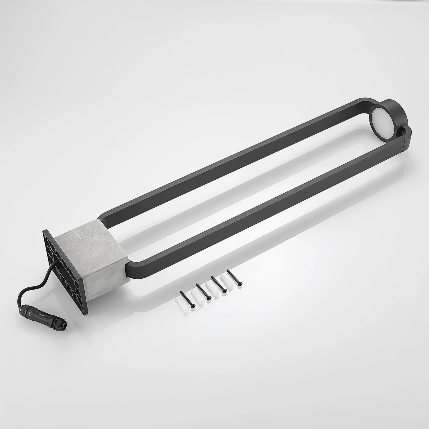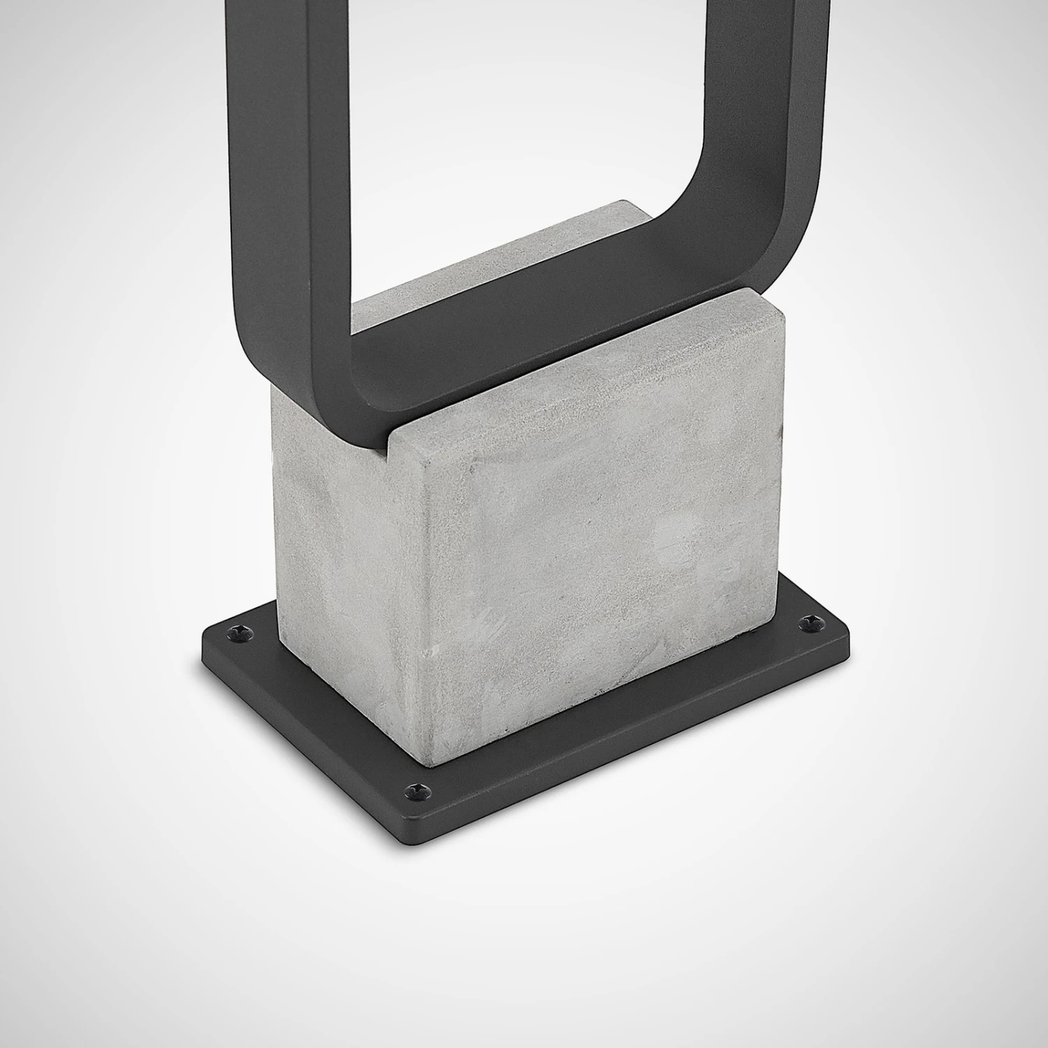 Rahmenförmige LED-Pollerlampe Belna in dunklem Grau, mit Betonelement