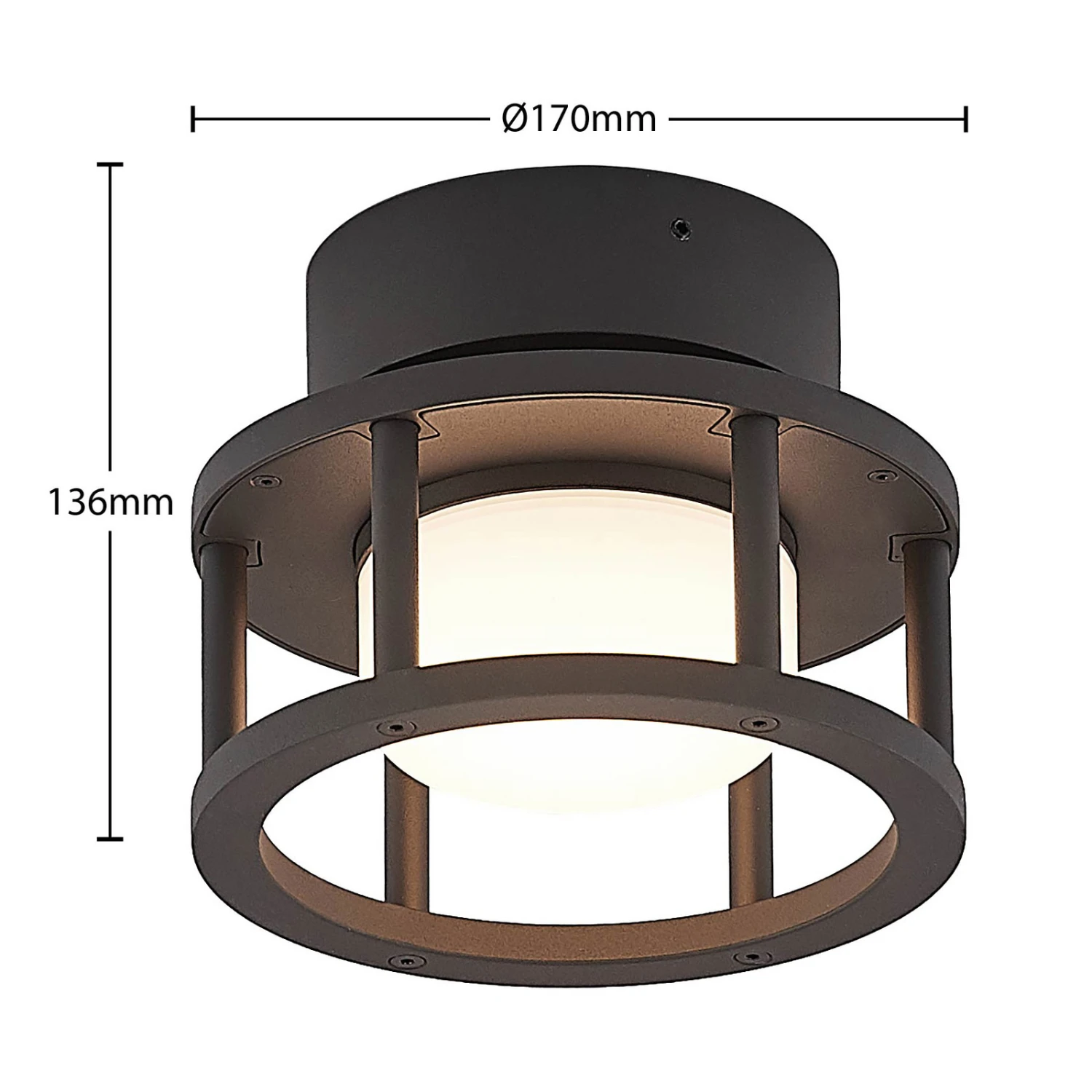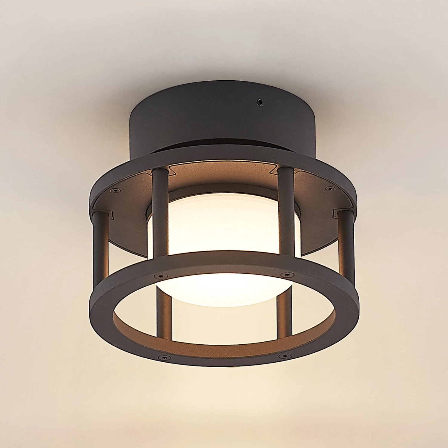 Kompakte Außendeckenleuchte Berenike aus dunkelgrauem Aluminium