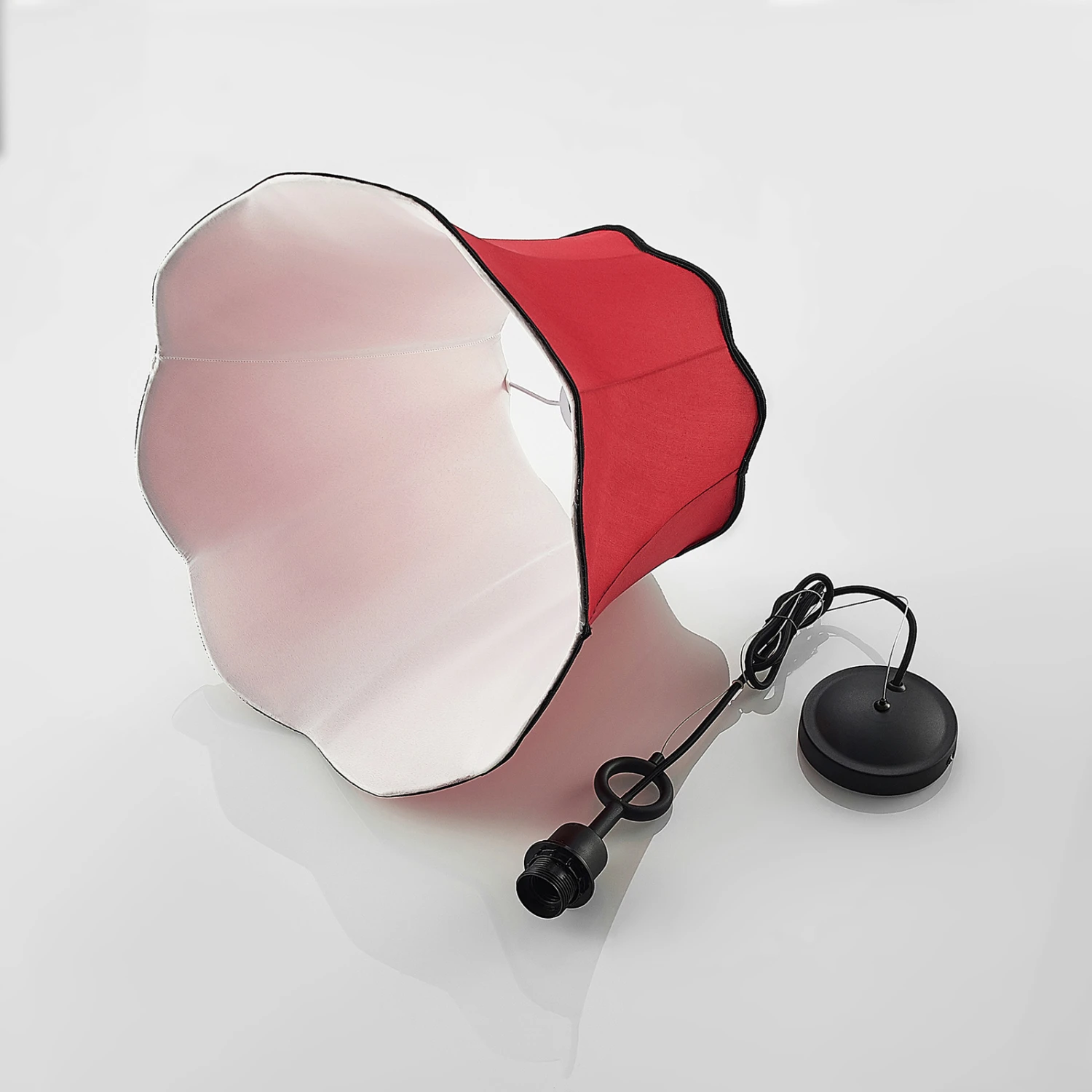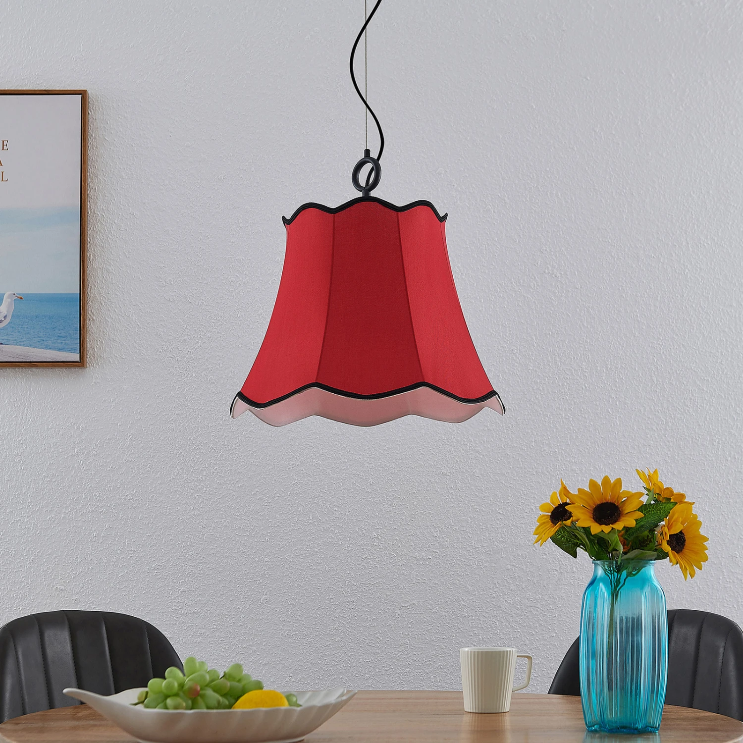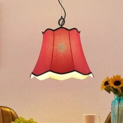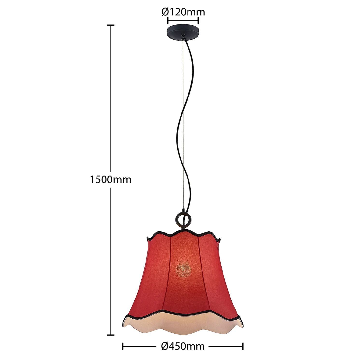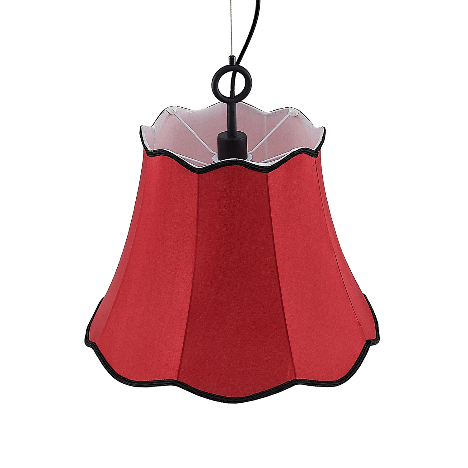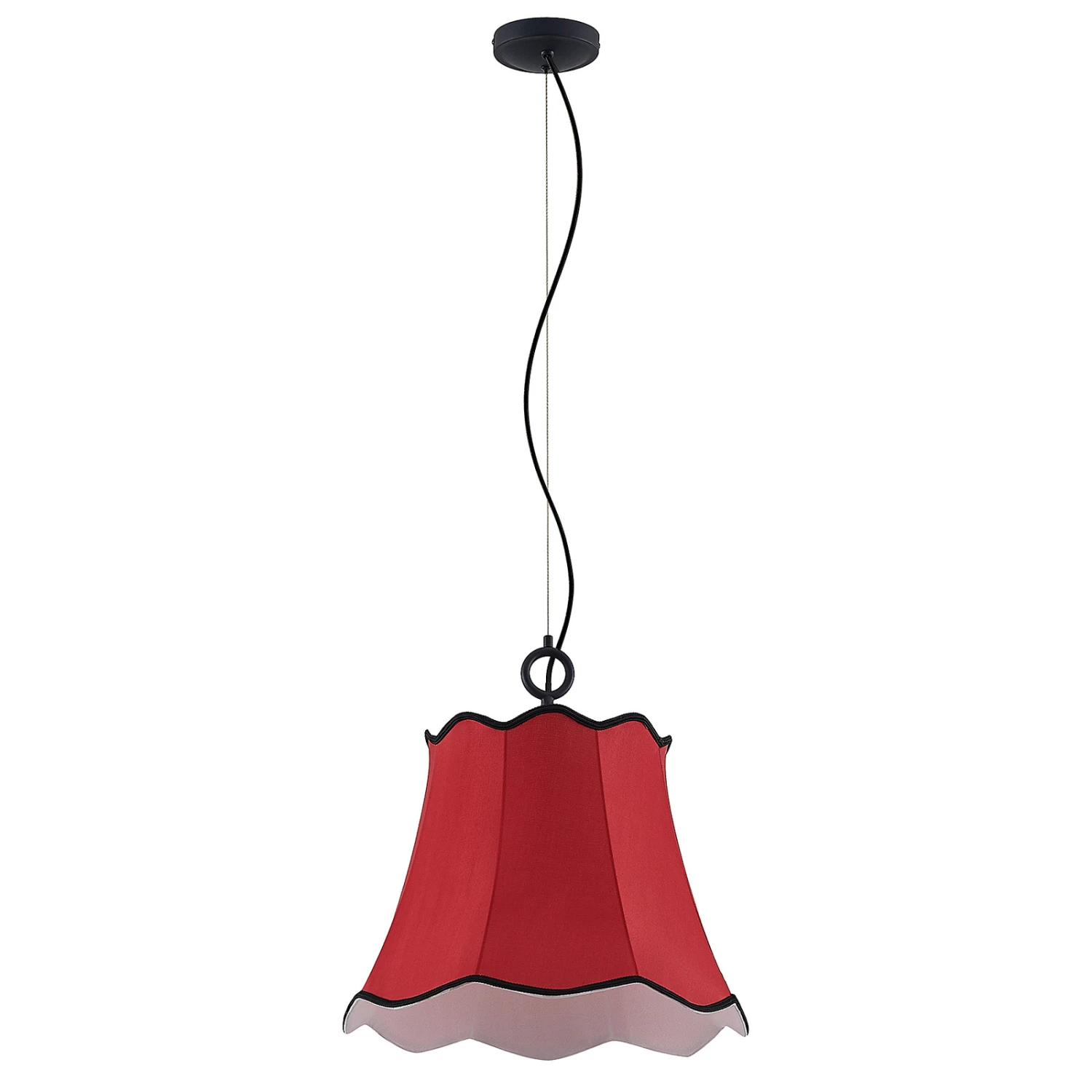 Wellenförmig abschließende Textilpendellampe Binta in schönem Rotton