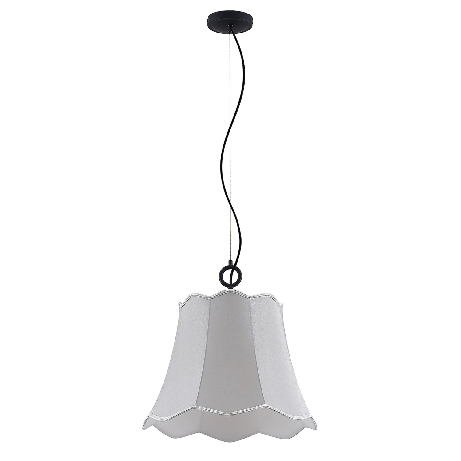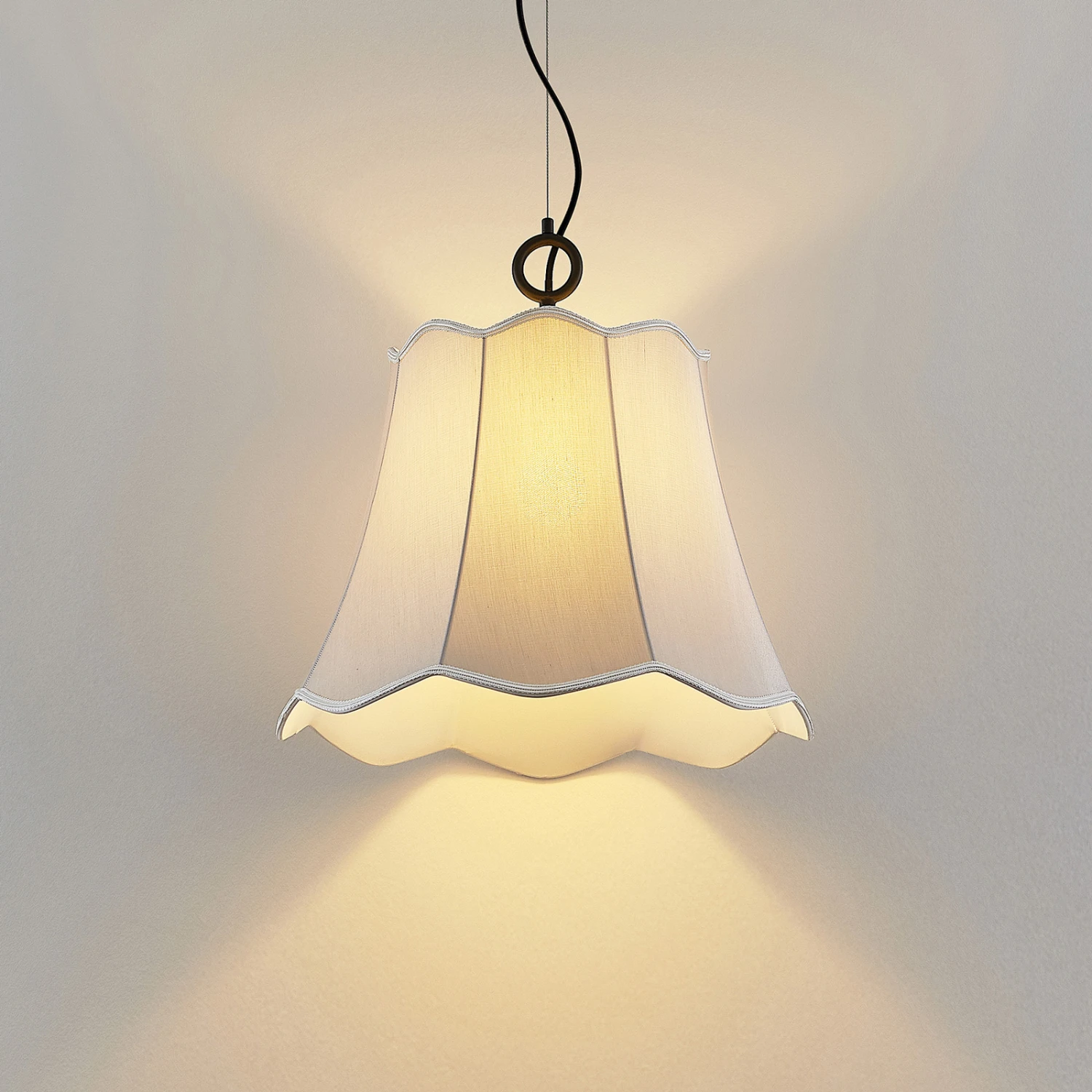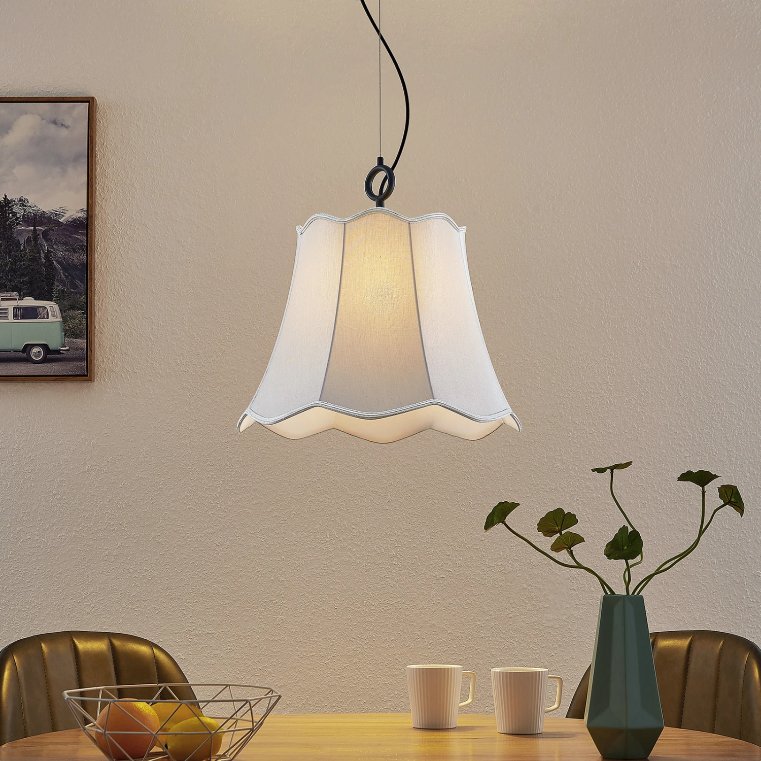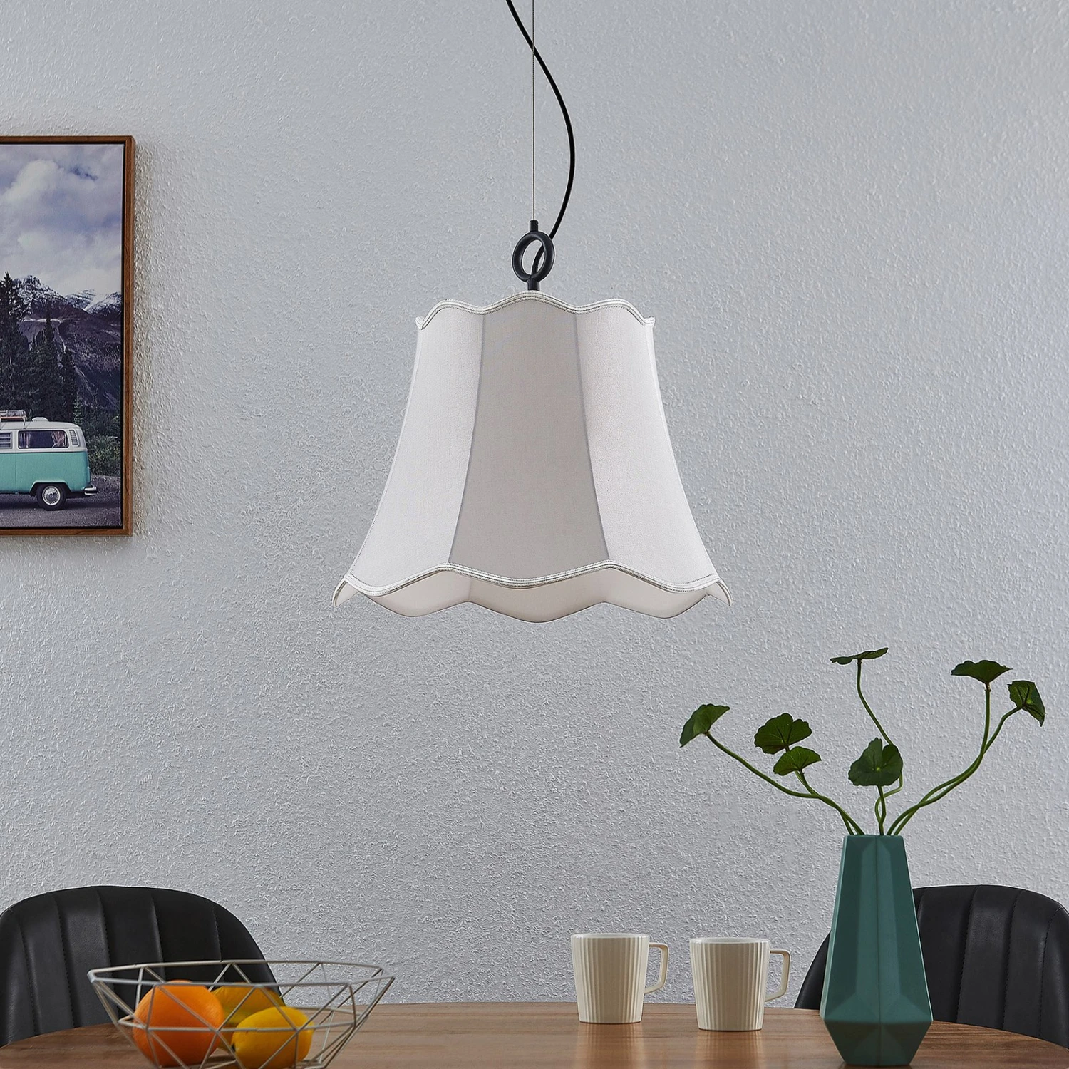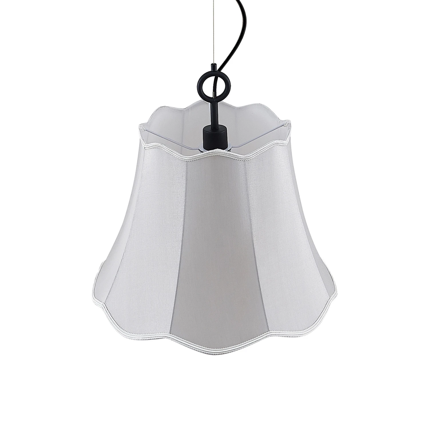 Silbergraue Stoff-Hängeleuchte Binta mit gewelltem Abschluss und exklusivem Design