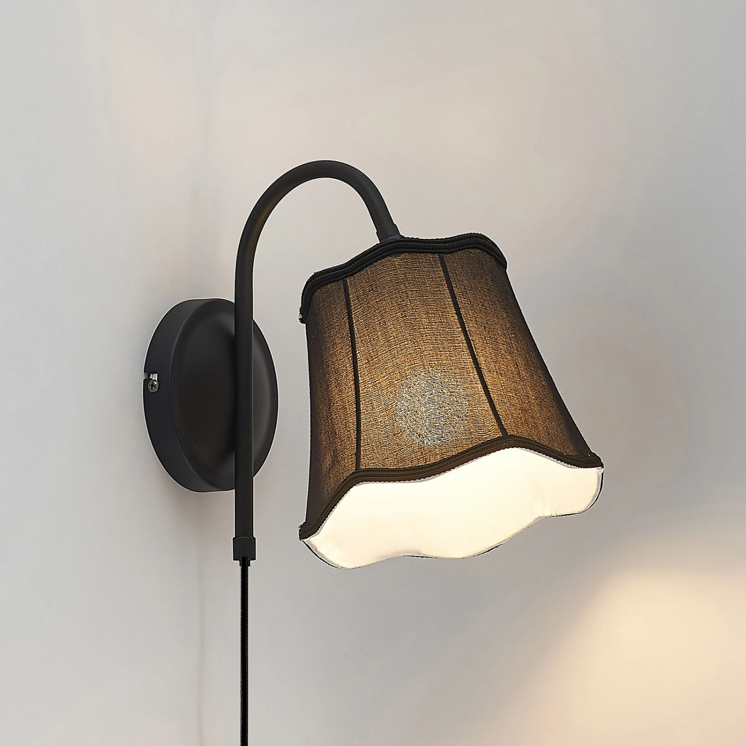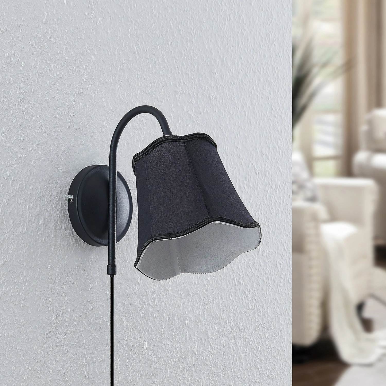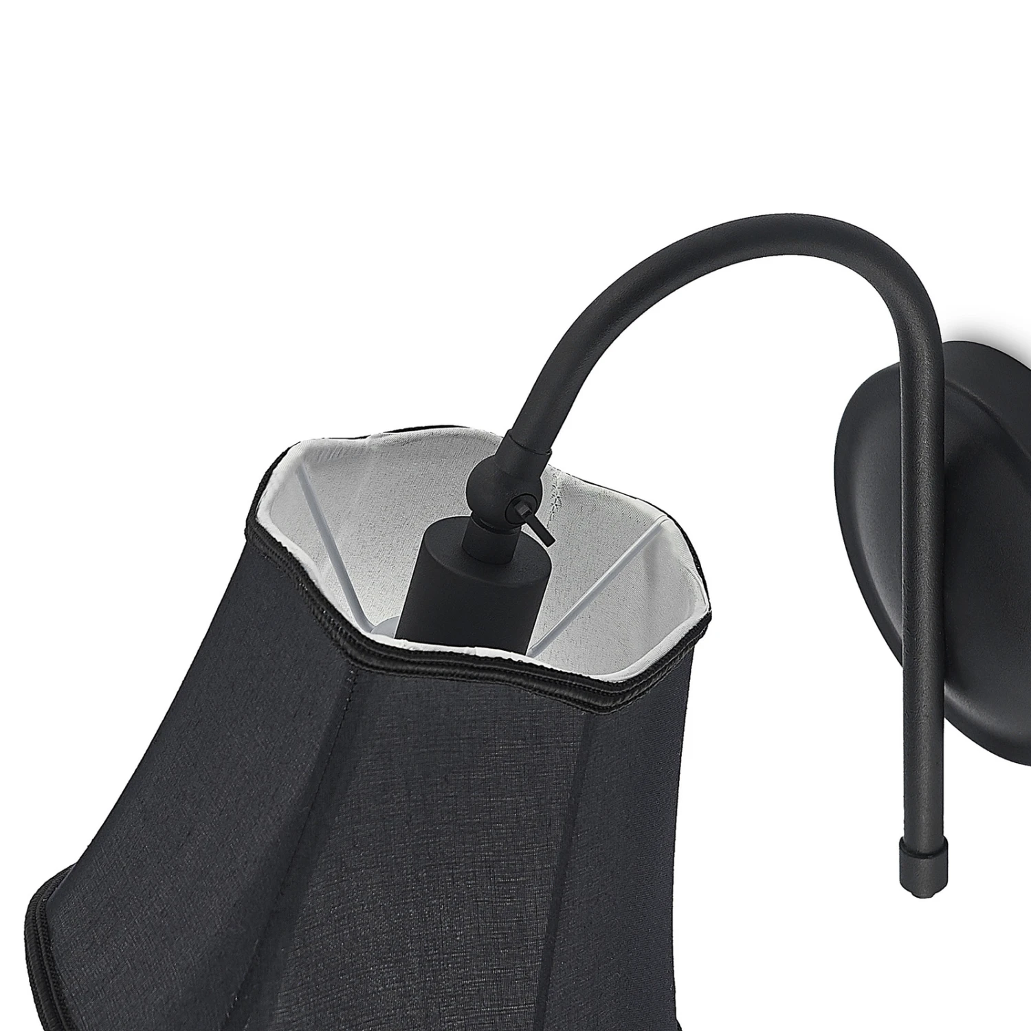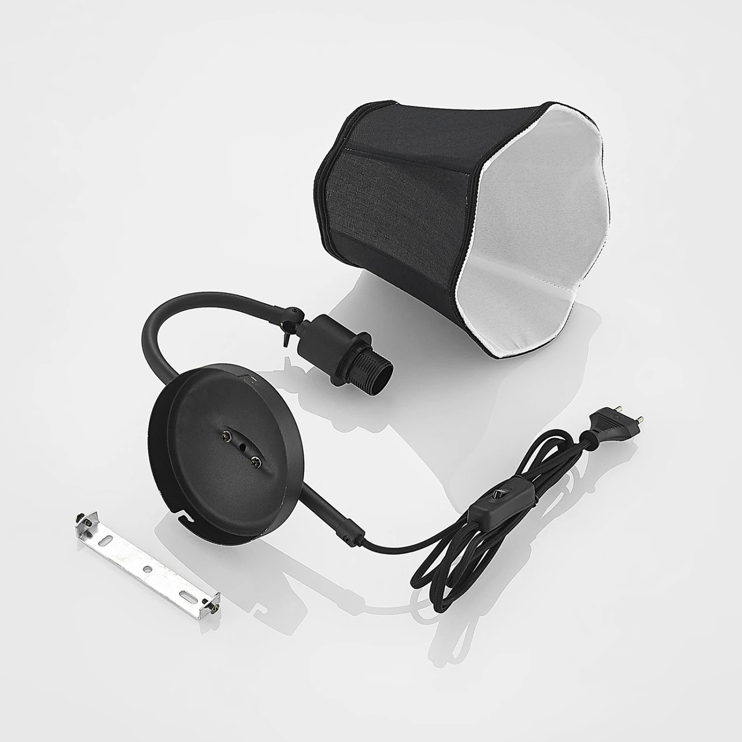 Retro-Wandleuchte Binta in Schwarz mit Stoff-Schirm