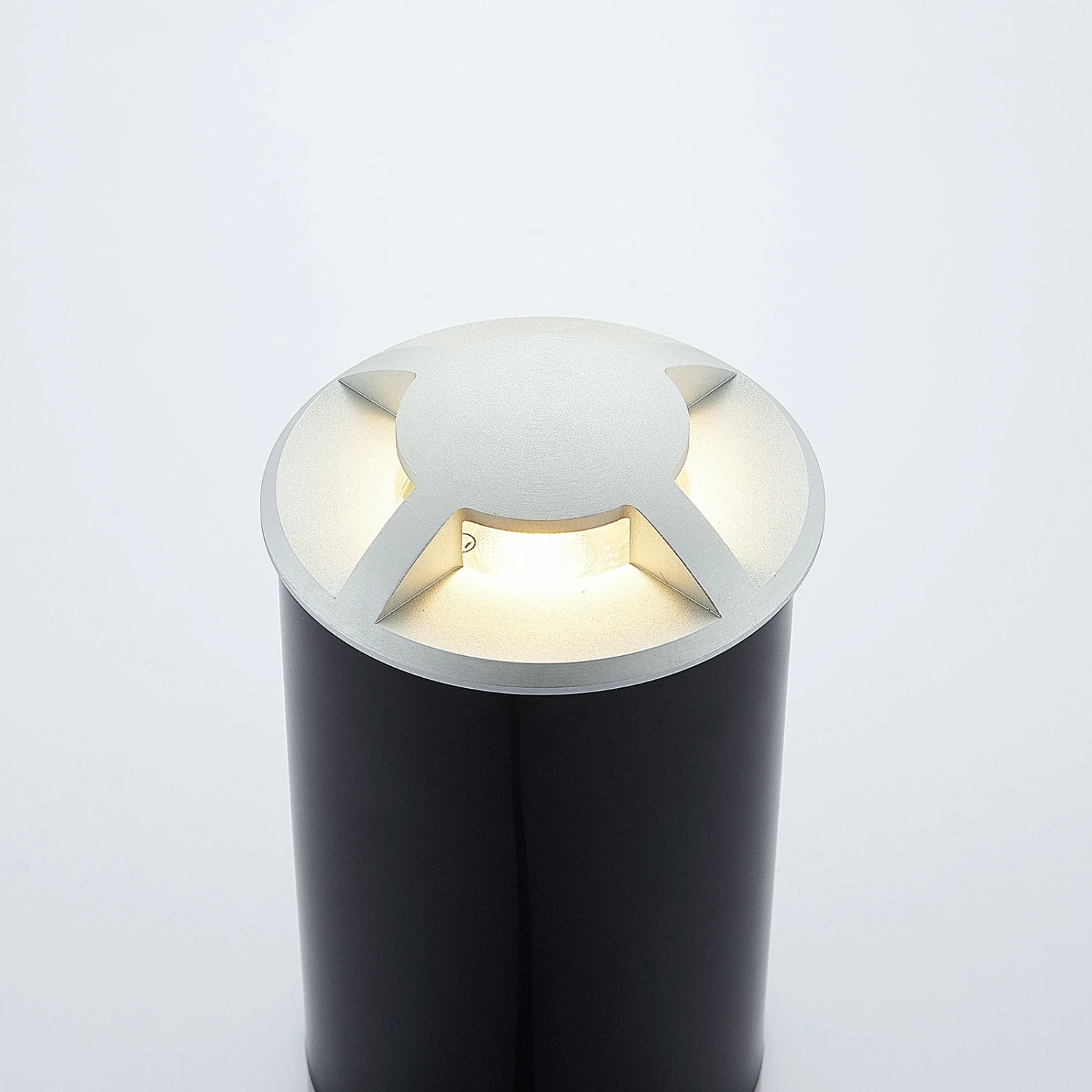 Titanfarbene Bodeneinbaulampe Edwina in runder Form, IP67, begehbar bis 500 kg