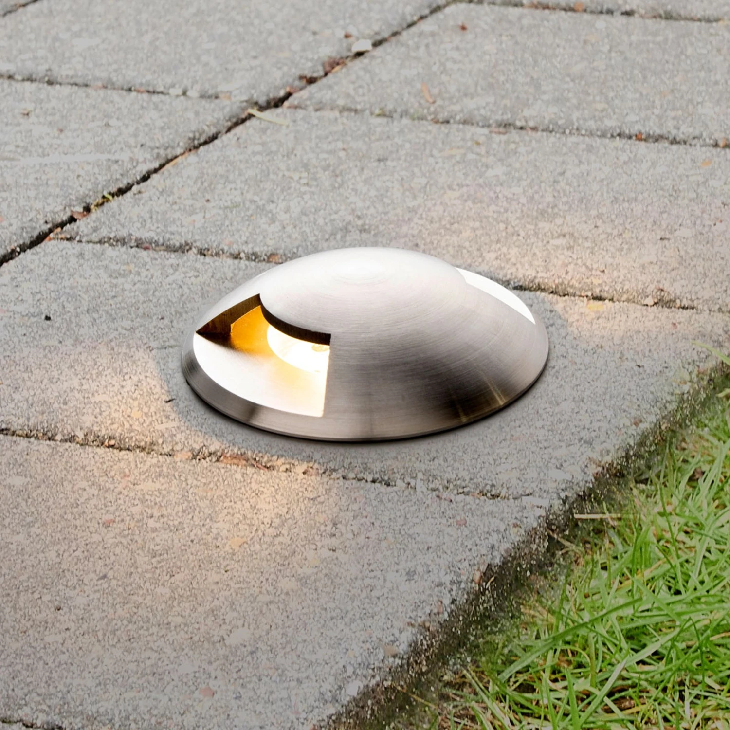 Dieser LED-Bodeneinbaustrahler hat eine runde Grundform und strahlt den warmweißen Lichtschein zu zwei Seiten ab, so dass ein nützliches Orientierungslicht entsteht, wenn man einen Weg oder Hof passiert. Dann werden etwaige Stolperfallen früh erkannt und können gemieden werden. Verstärkt wird dieser Effekt natürlich, wenn man gleich mehrere Bodeneinbaustrahler in einer gewissen Entfernung voneinander montiert.