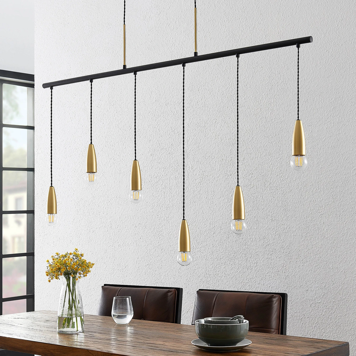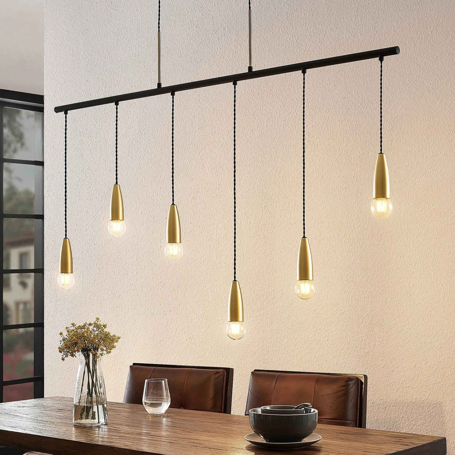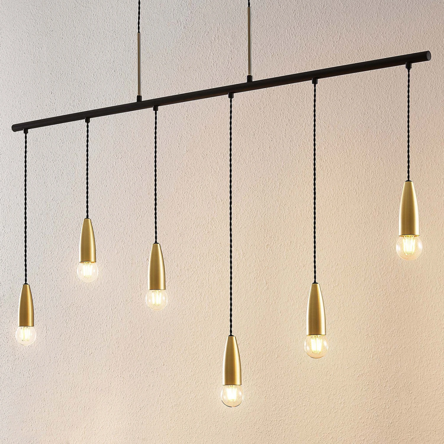 Sechsflammige Pendelleuchte Carlea mit designorientierter Ausstrahlung und Elementen in Messing und Gold – sehr schön für das Esszimmer