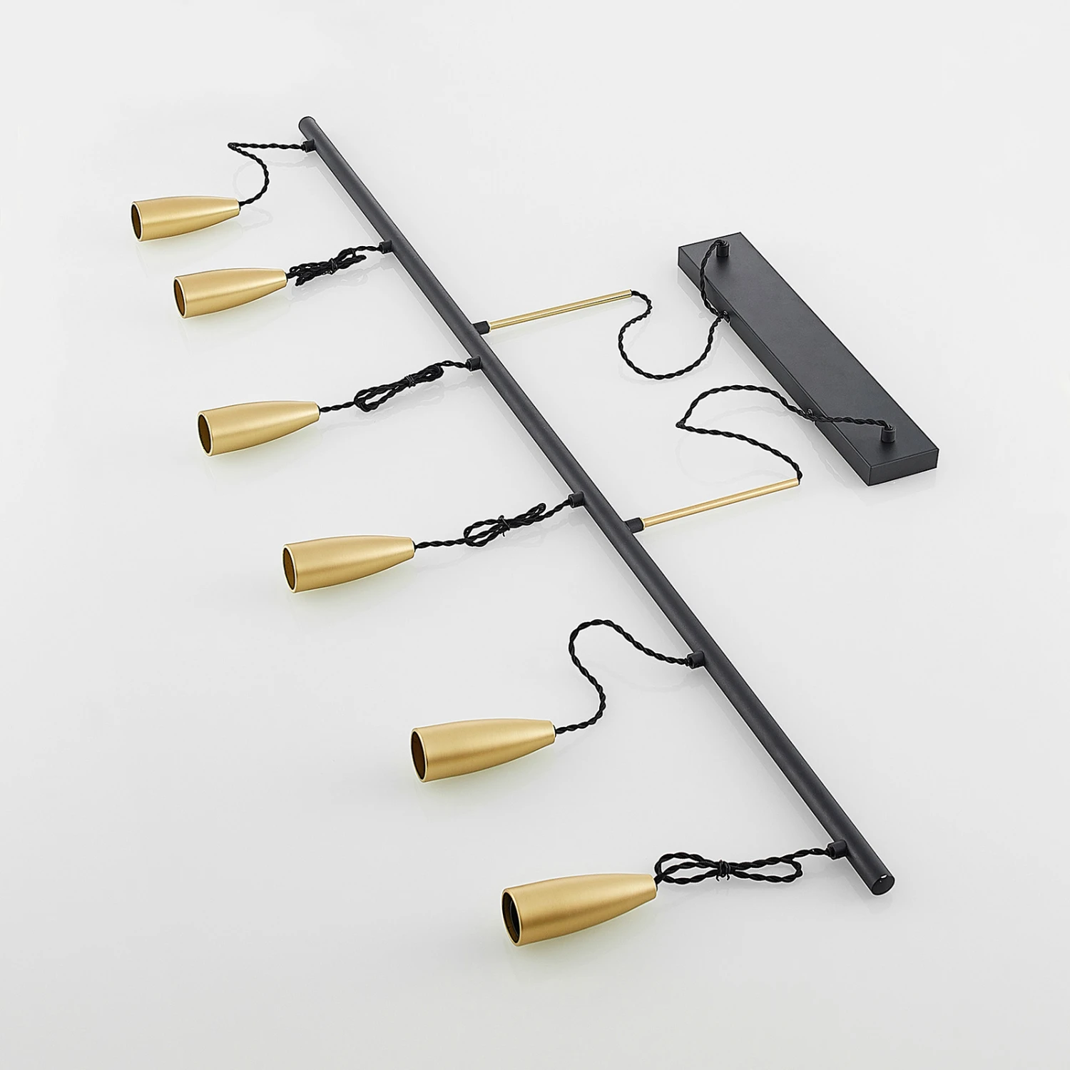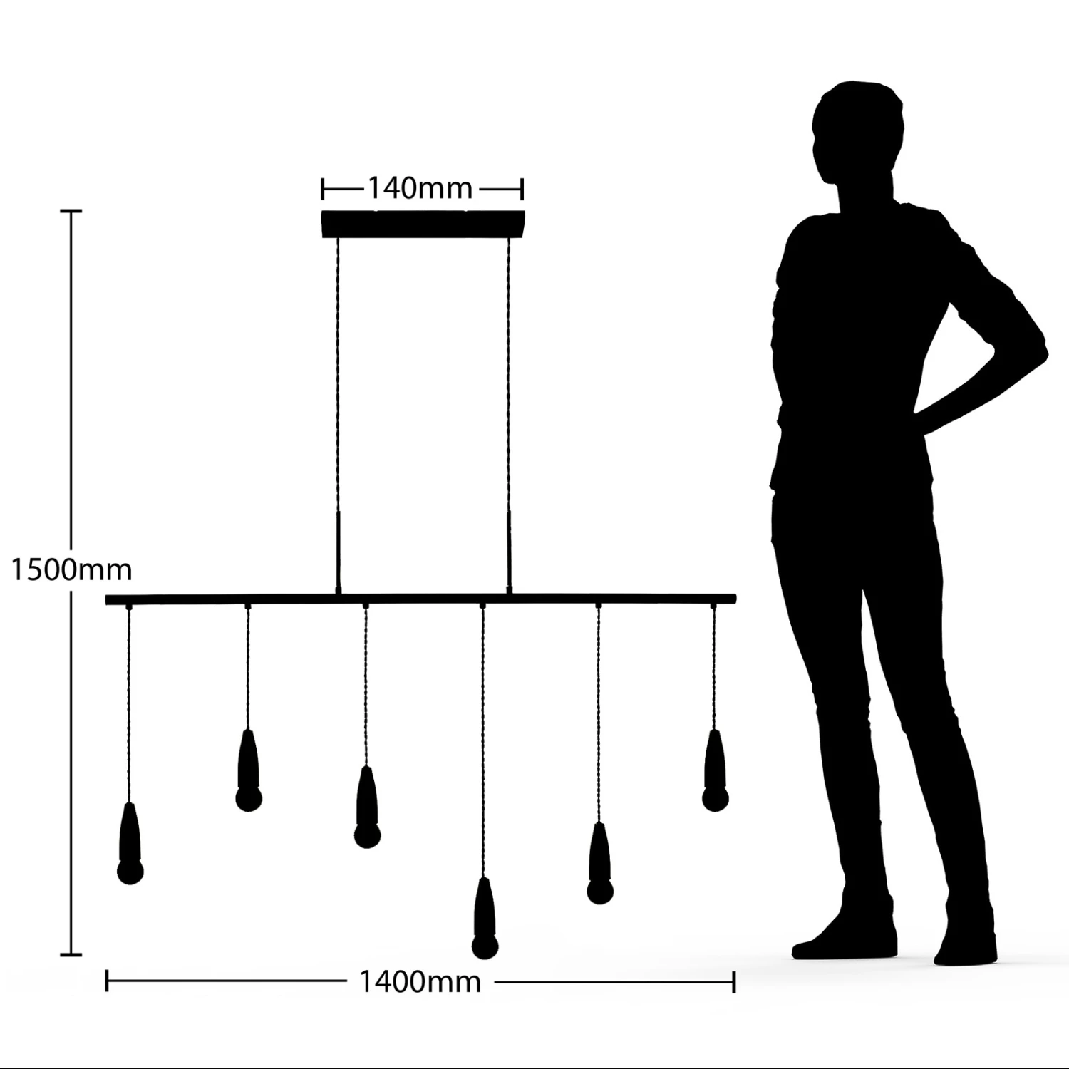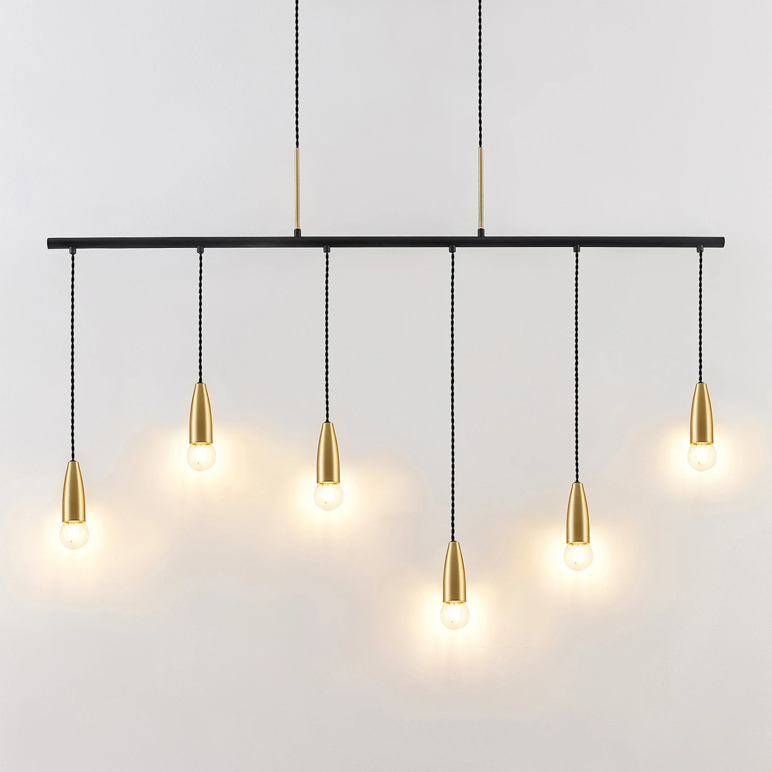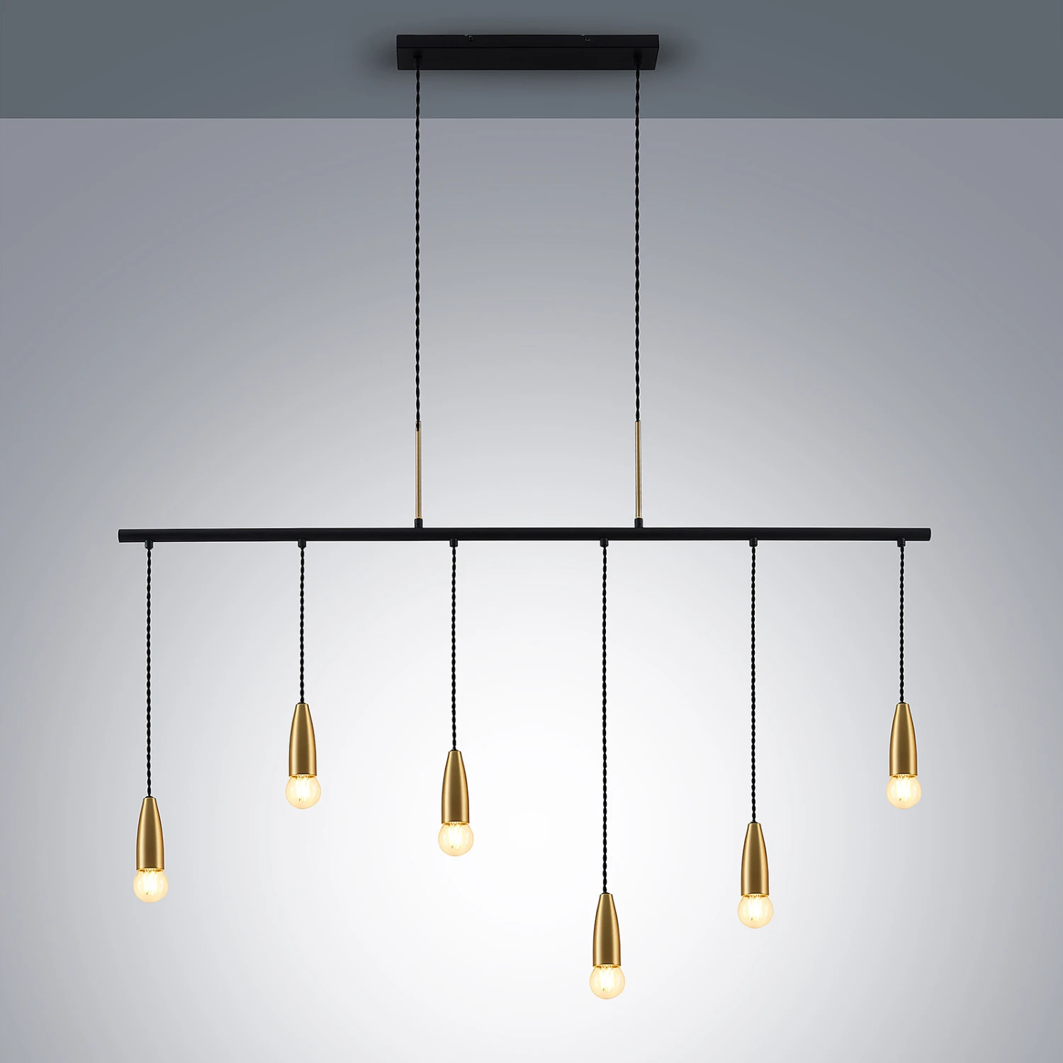 Sechsflammige Pendelleuchte Carlea mit designorientierter Ausstrahlung und Elementen in Messing und Gold – sehr schön für das Esszimmer
