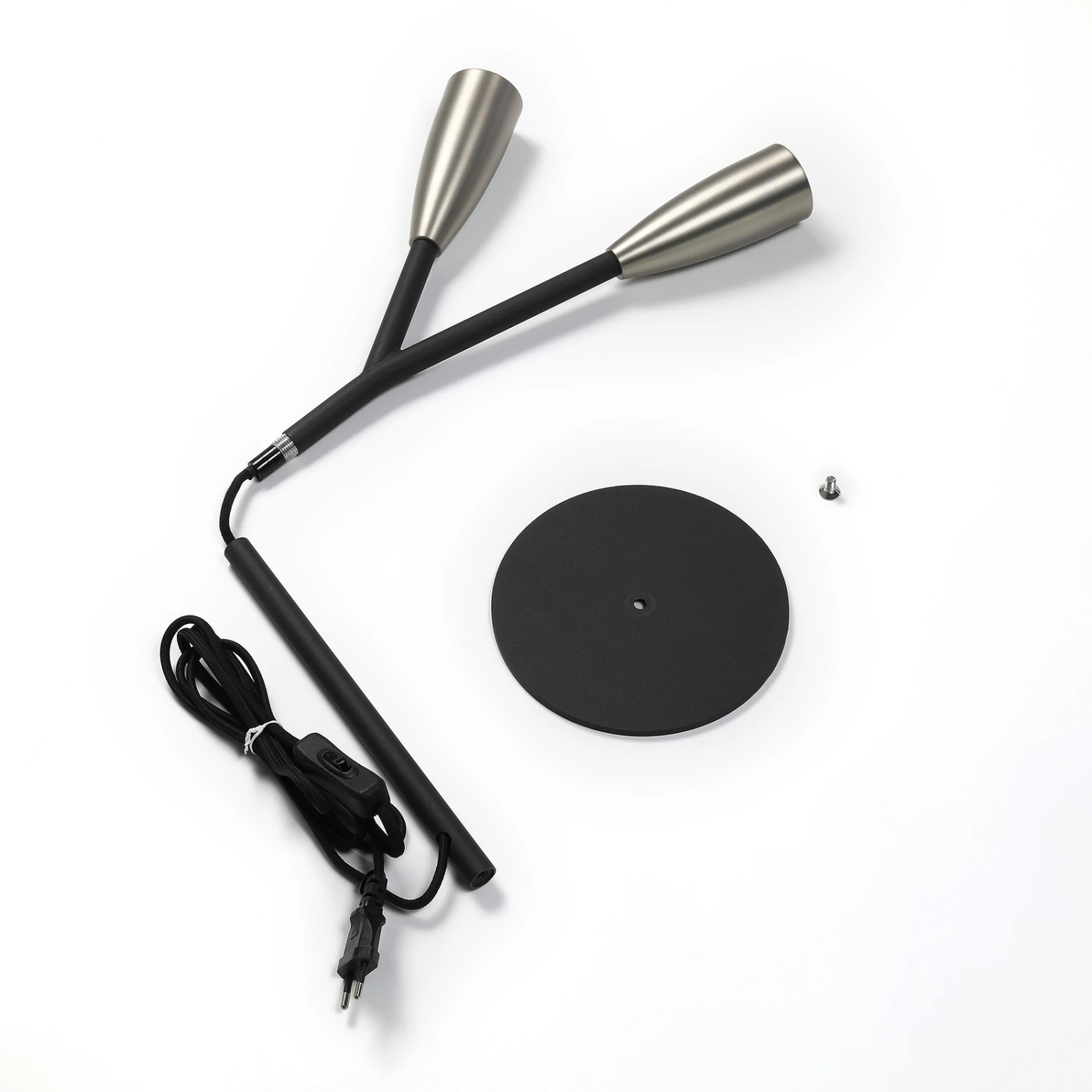 Zweiflammige Tischlampe Carlea in Schwarz und Nickel