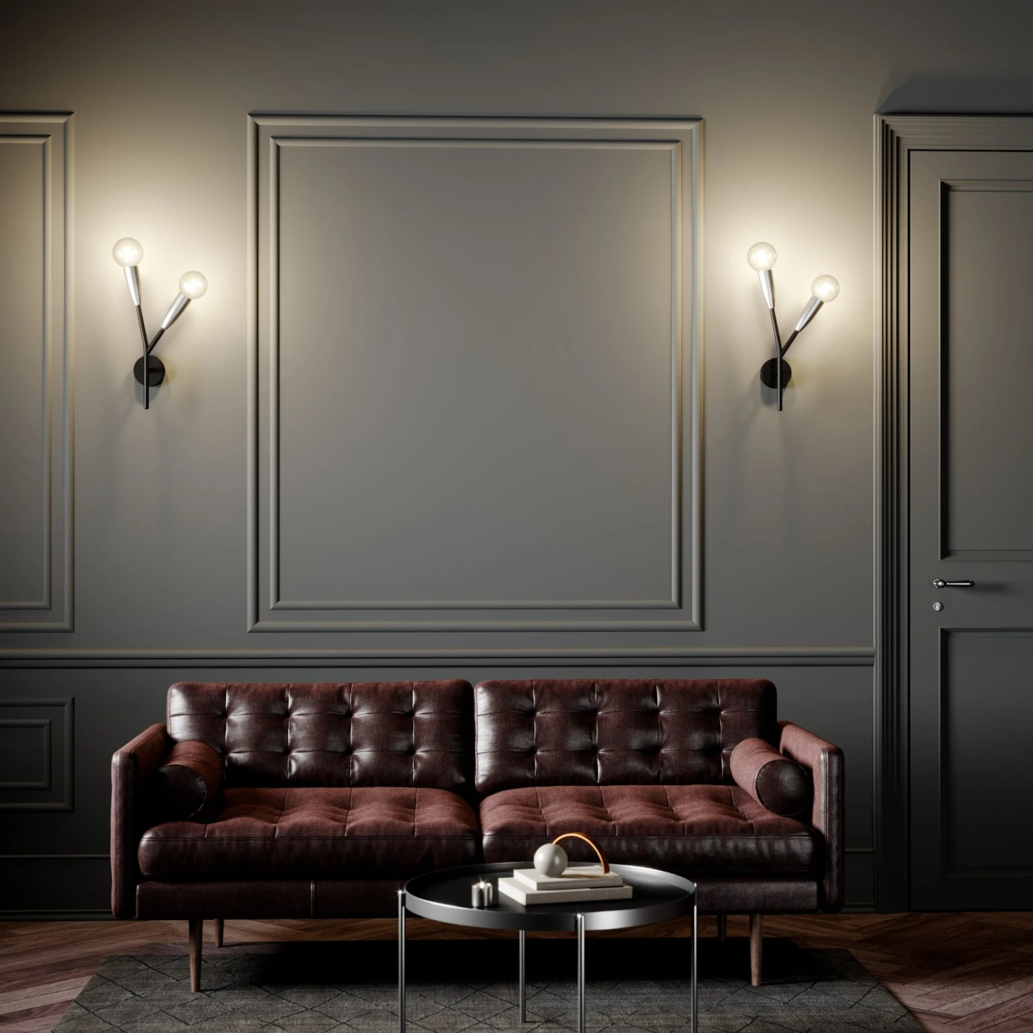 Schwarze Wandlampe Carlea mit nickelfarbenen Details, zweiflammig