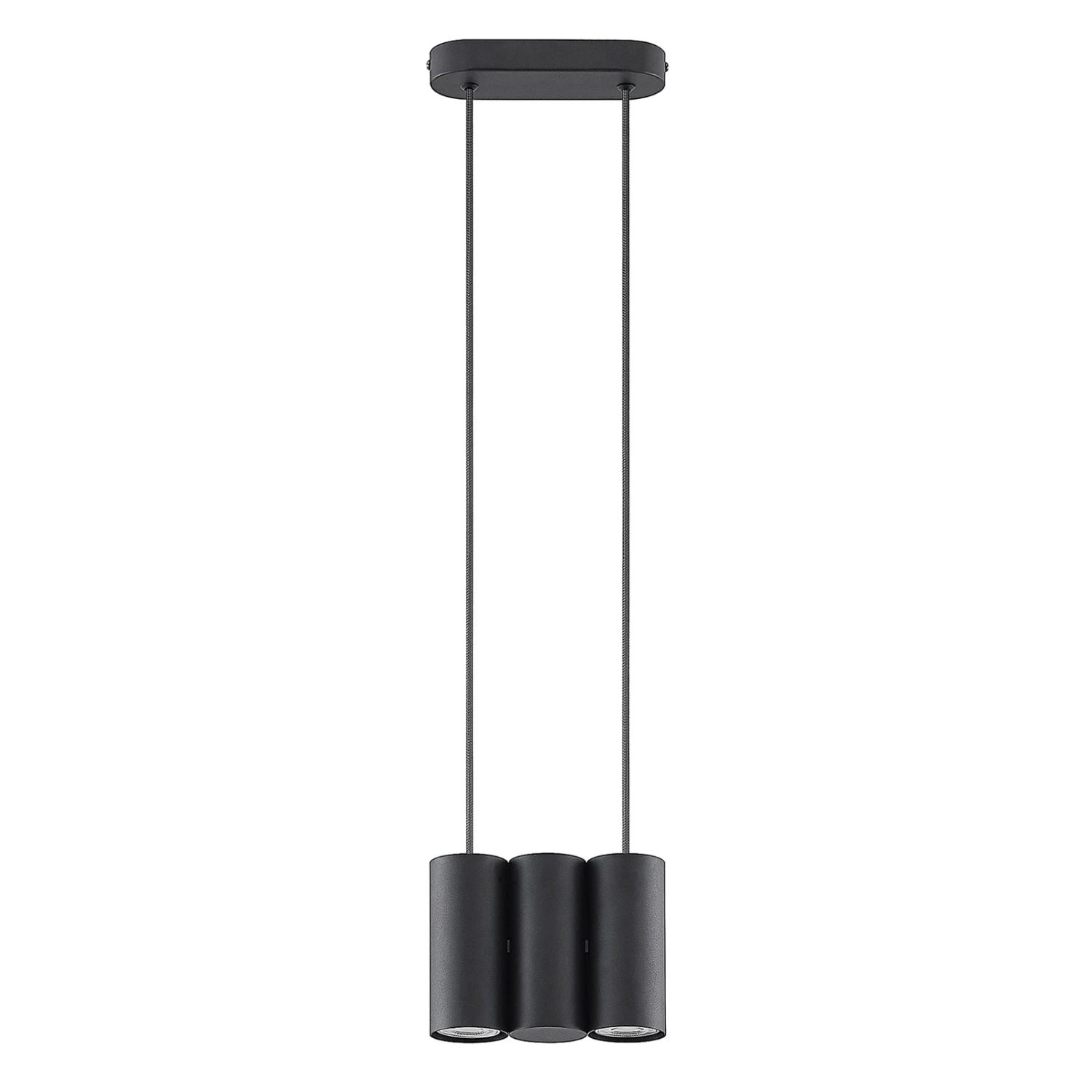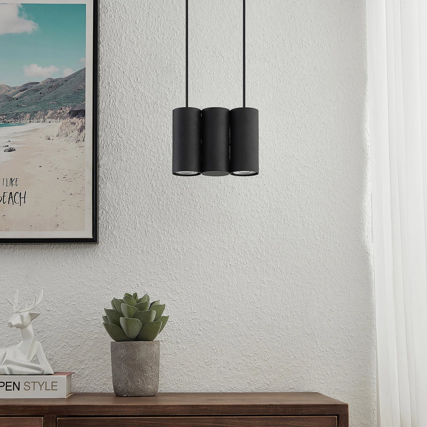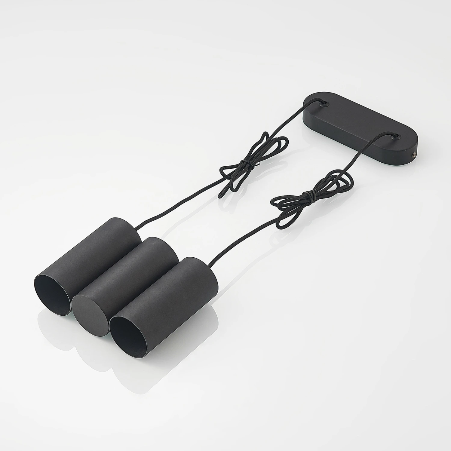 Die schlanke Hängelampe Cesur besitzt einen robusten Charakter und ein schlankes Design. Sie besteht aus einem gebündelten Leuchtenschirm, der aus drei röhrenförmigen Schirme besteht und mit drei Leuchtmitteln bestückt werden kann. Zwei der Schirme sind nach unten ausgerichtet, während der dritte nach oben zeigt, wodurch eine interessante Beleuchtung entsteht. Die sandschwarze Farbgebung rundet das markante Design der Leuchte ab und integriert sich gut in verschiedene Einrichtungsstile. Die Hängeleuchte Cesur eignet sich hervorragend für die Installation in einem Wohnzimmer oder über einem Esstisch.