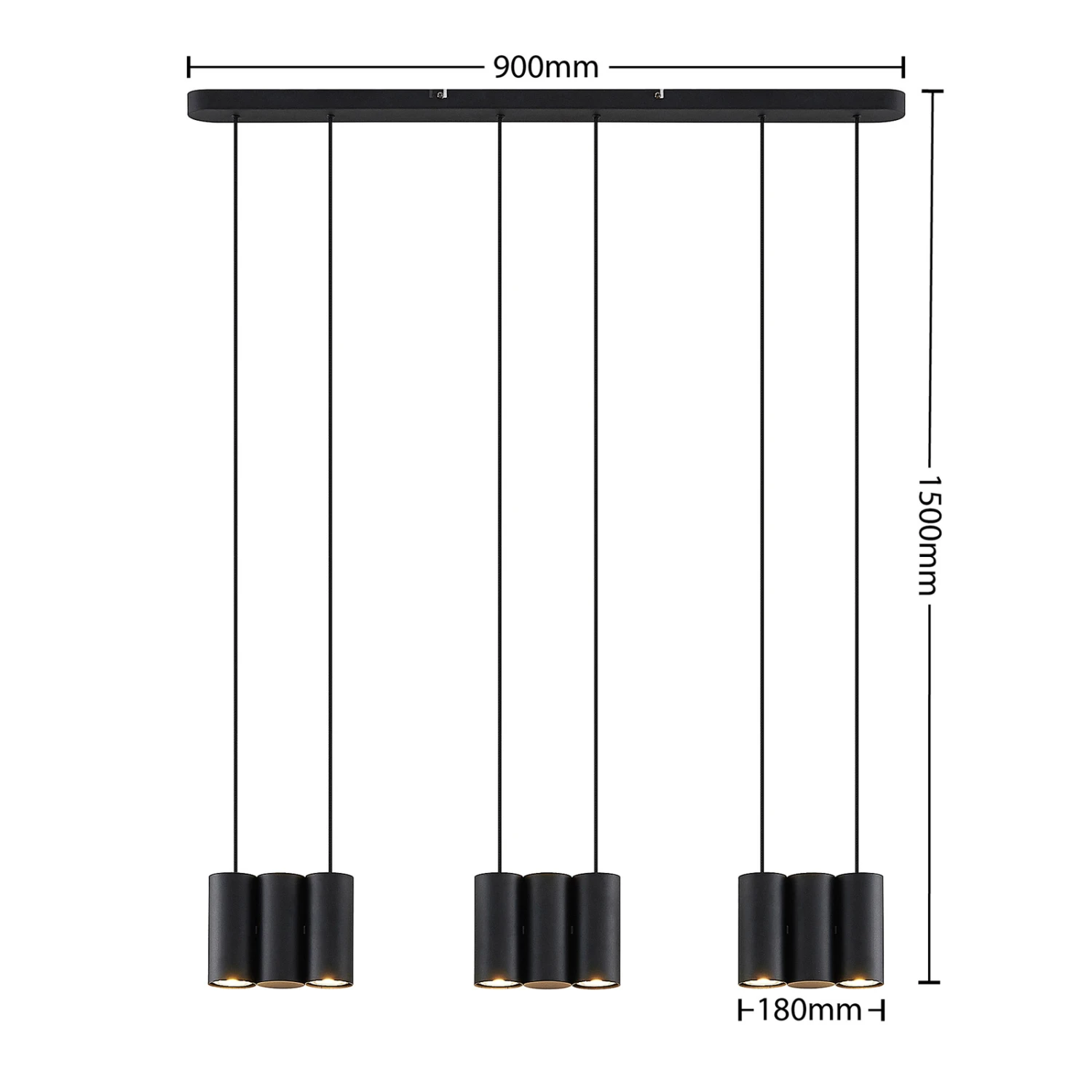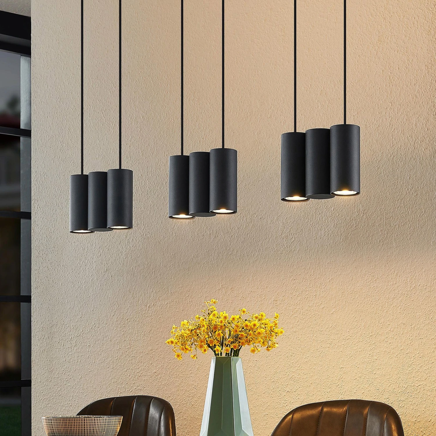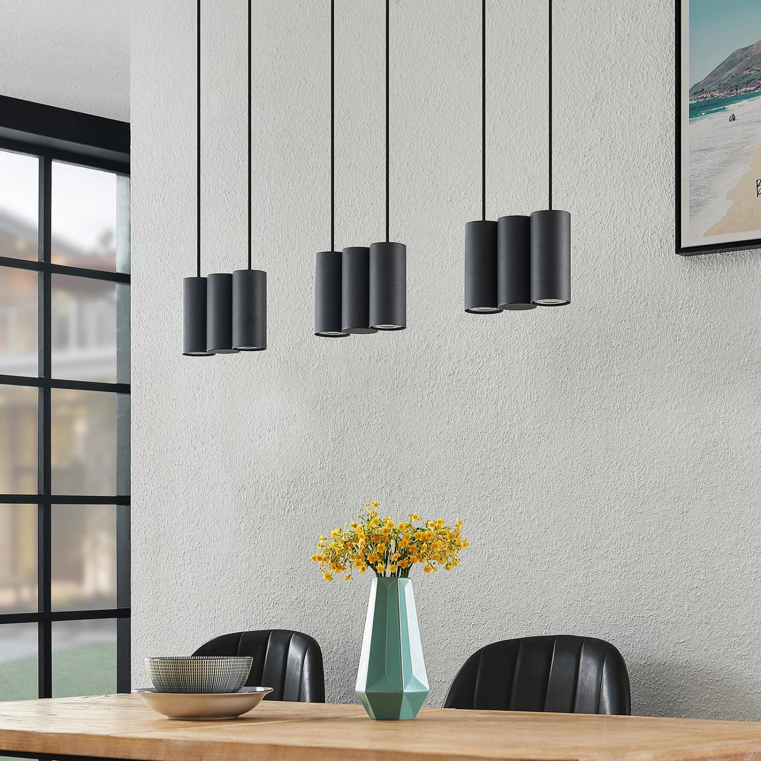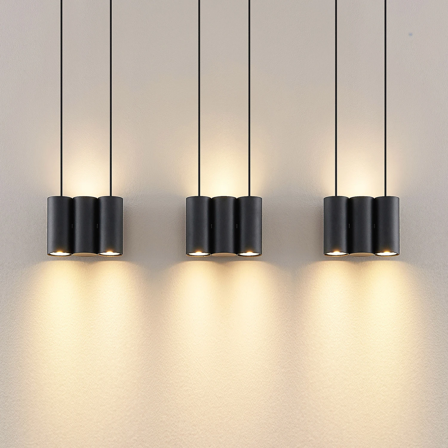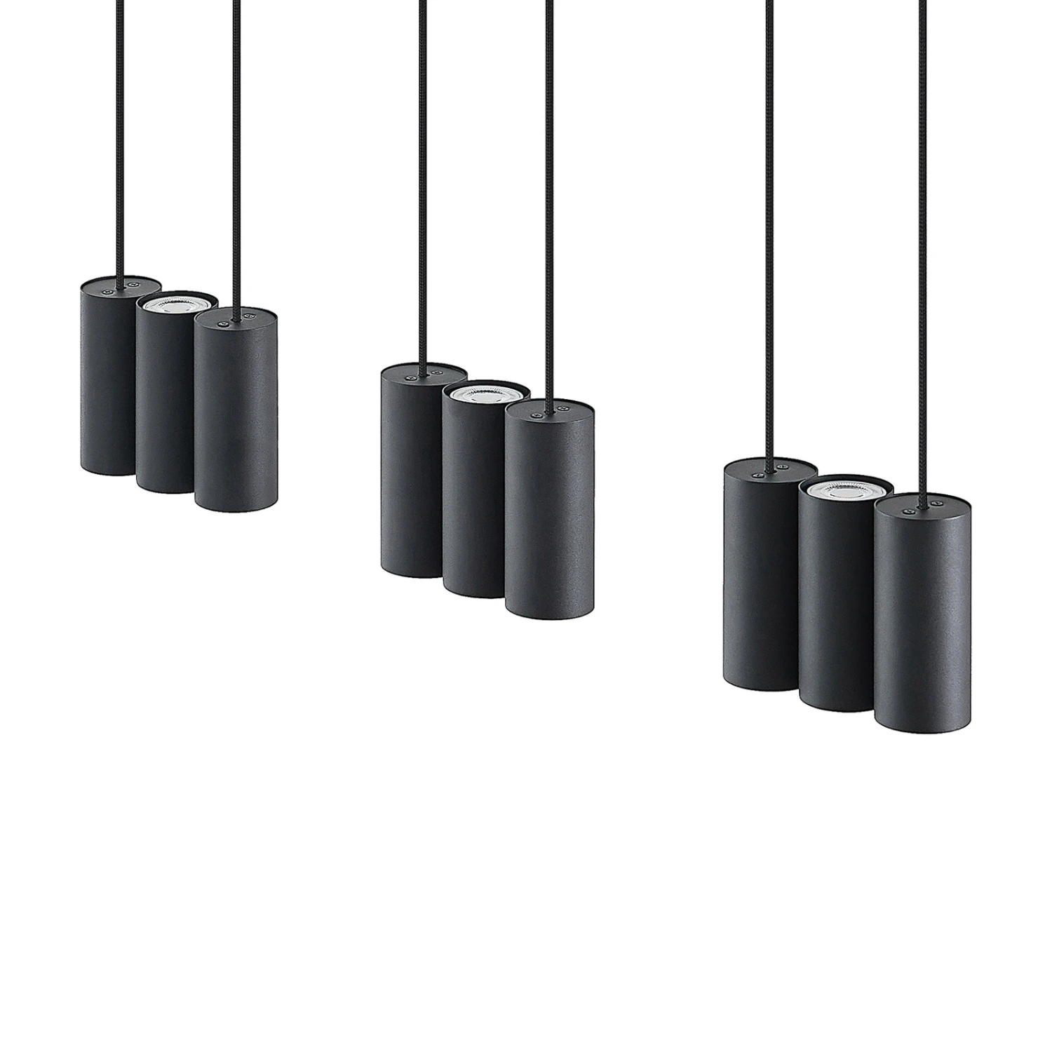 Neunflammige Hängeleuchte Cesur aus sandschwarzem Stahl in modernem Design