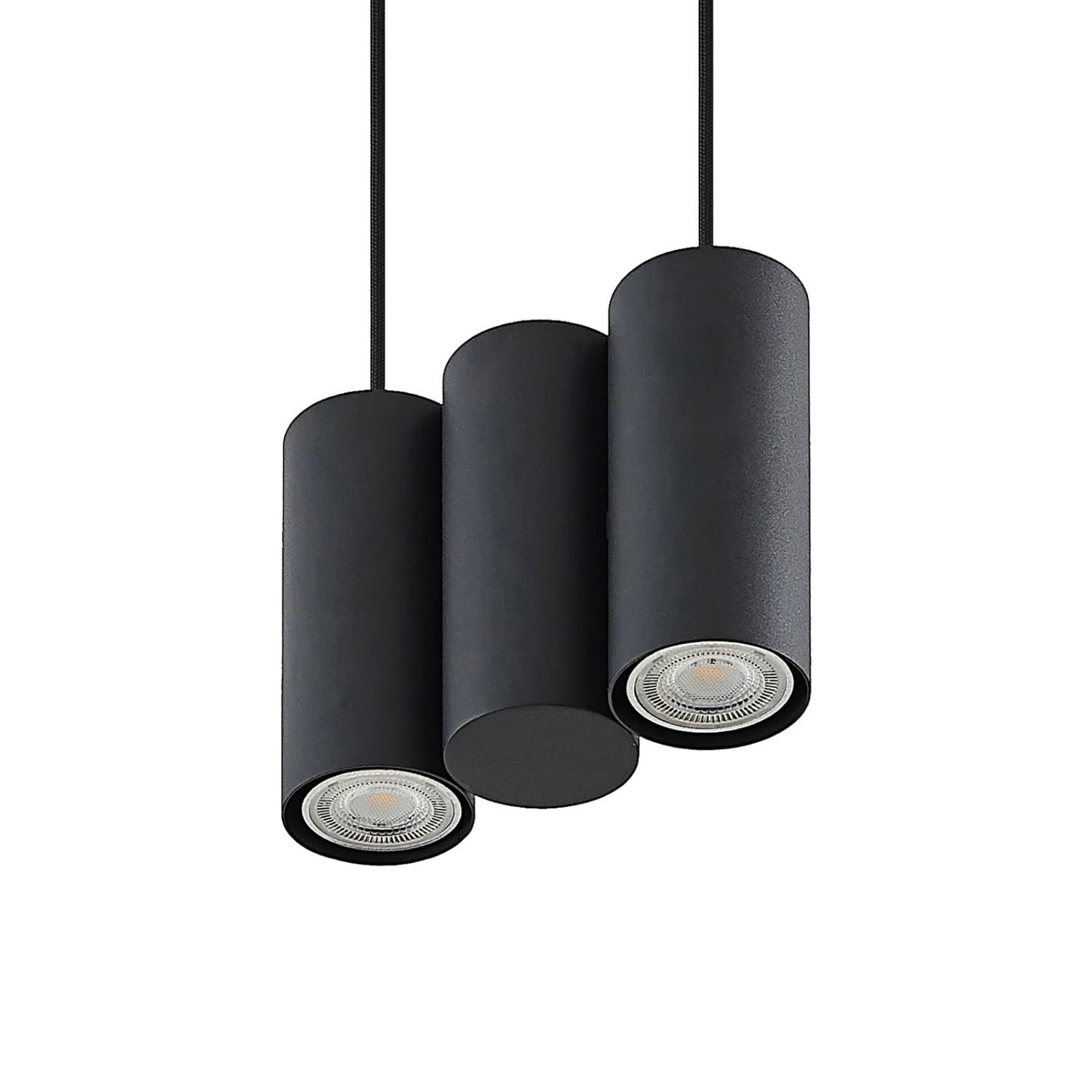 Jeder der auf der Suche nach einer aufsehenerregenden Hängelampe ist, wird durch Cesur nicht enttäuscht. Die Leuchte ist aus Stahl hergestellt und präsentiert sich in einem stimmigen Schwarz. Ihre längliche Deckenhalterung trägt drei Leuchtenschirme, die jeweils aus drei Röhren bestehen. Innerhalb dieser Röhren sitzt jeweils eine Fassung, die mit entsprechenden Leuchtmitteln bestückt werden kann. Hier können die Lichtintensität und die Lichtfarbe an die persönlichen Bedürfnisse angepasst werden, in dem man zu einem Leuchtmittel nach Wahl greift. Die Hängeleuchte Cesur eignet sich hervorragend für die Installation in einem Wohnzimmer oder einem Esszimmer.