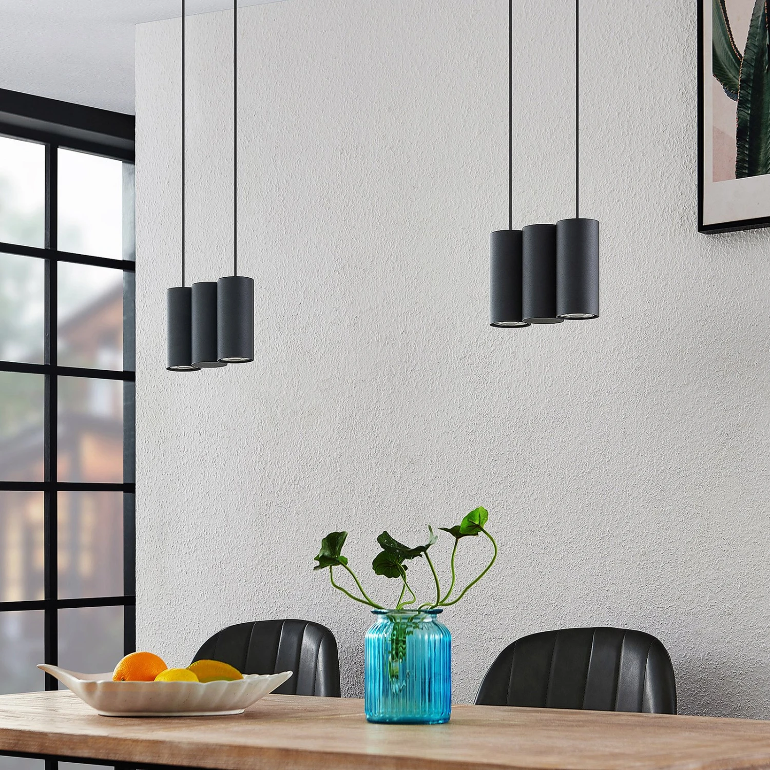 Sechsflammige Hängeleuchte Cesur aus Stahl in schwarzer Farbgebung