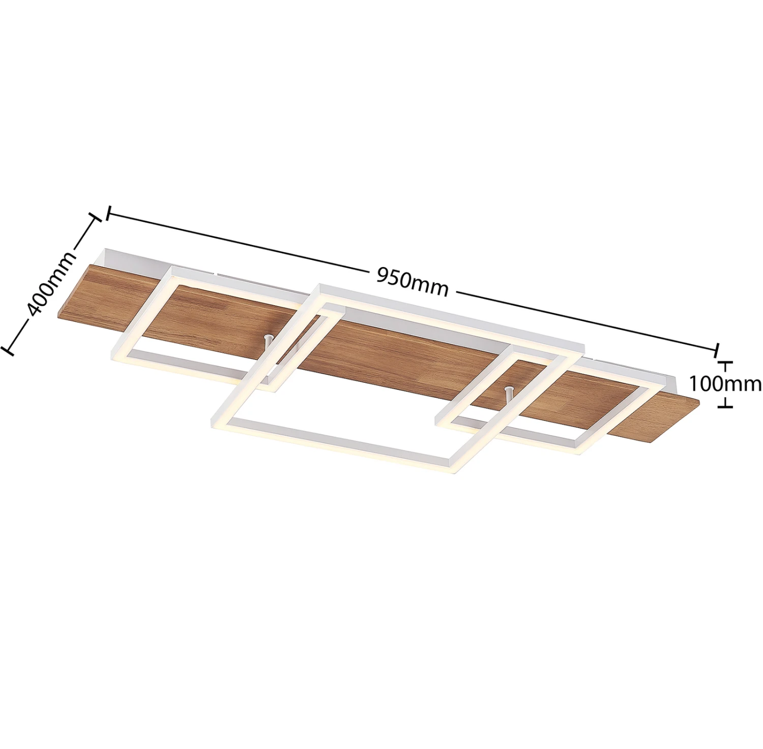 Längliche Holz-LED-Deckenleuchte Chariska in einem exklusiven Design, CCT-Farbwechsel und dimmbar