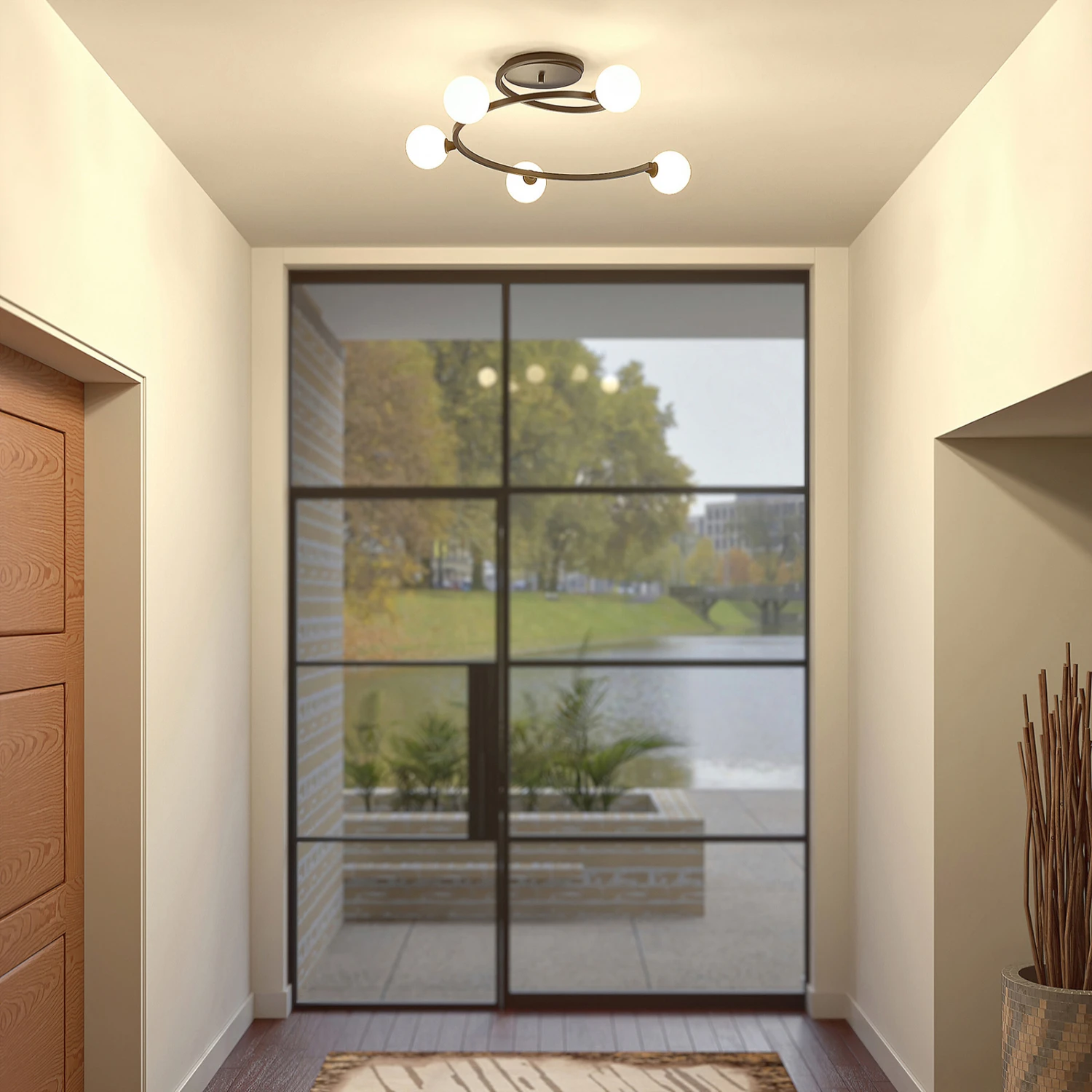 Spiralförmige Deckenleuchte Chenoa mit Glasleuchtenschirmen