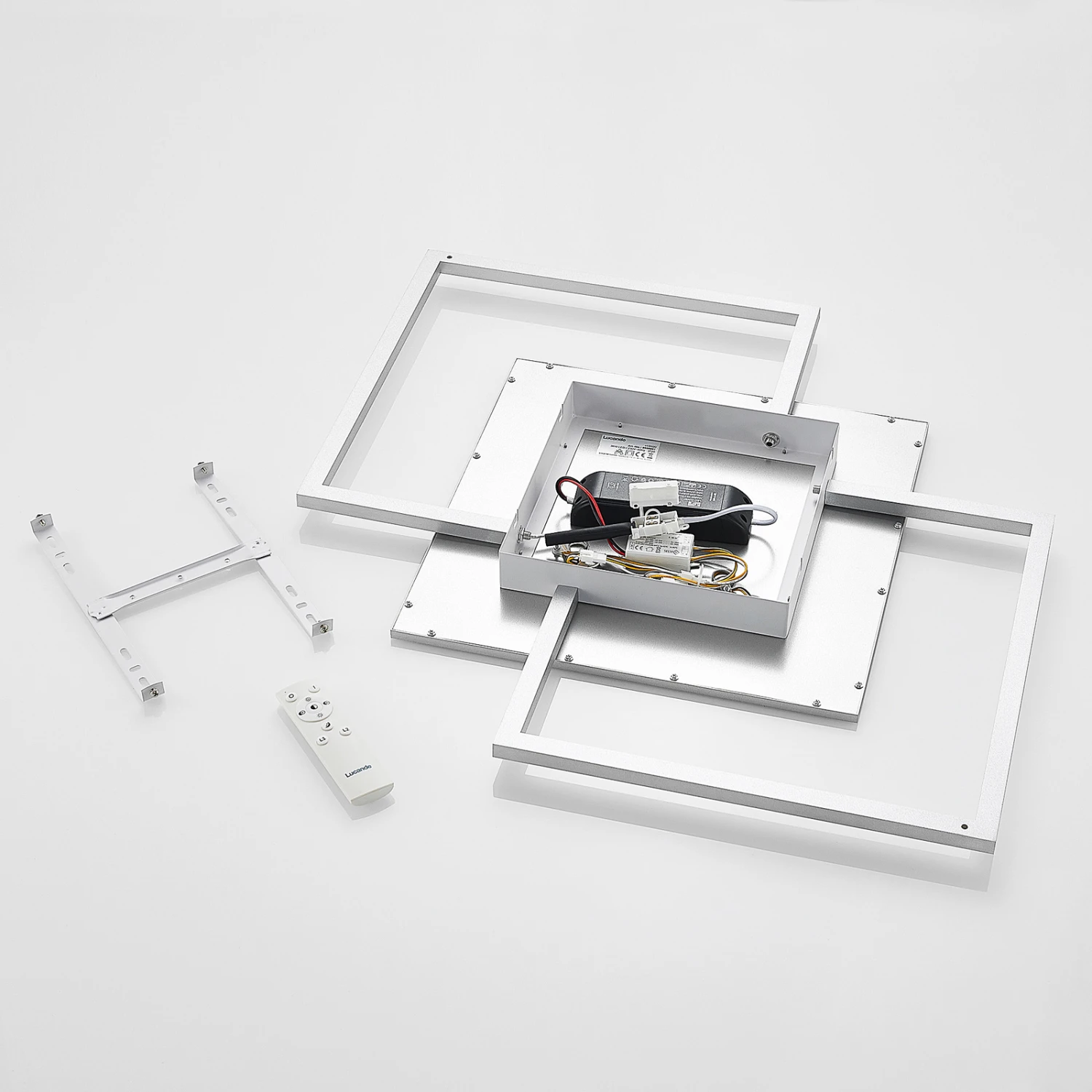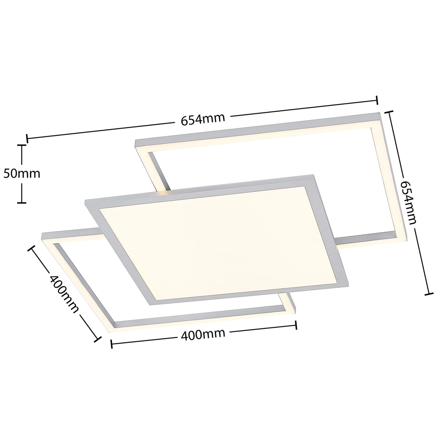 Die LED-Deckenlampe Ciaran ist eine perfekte Begleiterin, wenn es um die Beleuchtung eines Schlafzimmers oder eines Wohnzimmers geht, und sie bringt darüber hinaus einige praktische Funktionalitäten mit sich. Sie ist aus Aluminium und Eisen gefertigt und in elegantem Silber gehalten, während ihr Leuchtenkörper aus drei übereinander angebrachten Quadraten besteht. An diesen Elementen sitzen festverbaute LEDs, welche mit Hilfe einer Fernbedienung oder eines Wandschalters einfach zu bedienen sind. Ihre Lichtfarbe lässt sich in drei Ebenen regeln (2.700 K, 4.000 K und 6.500 K) und auch ihre Helligkeit ist stufenlos dimmbar (10% – 100%). Das elegante Aussehen der LED-Deckenleuchte Ciaran schmückt jede Wohnungsdecke und sieht vor allem in modern eingerichteten Räumen besonders gut aus. Sie integriert sich darüber hinaus in verschiedenste Einrichtungsstile, ohne dabei das restliche Mobiliar zu überschatten.