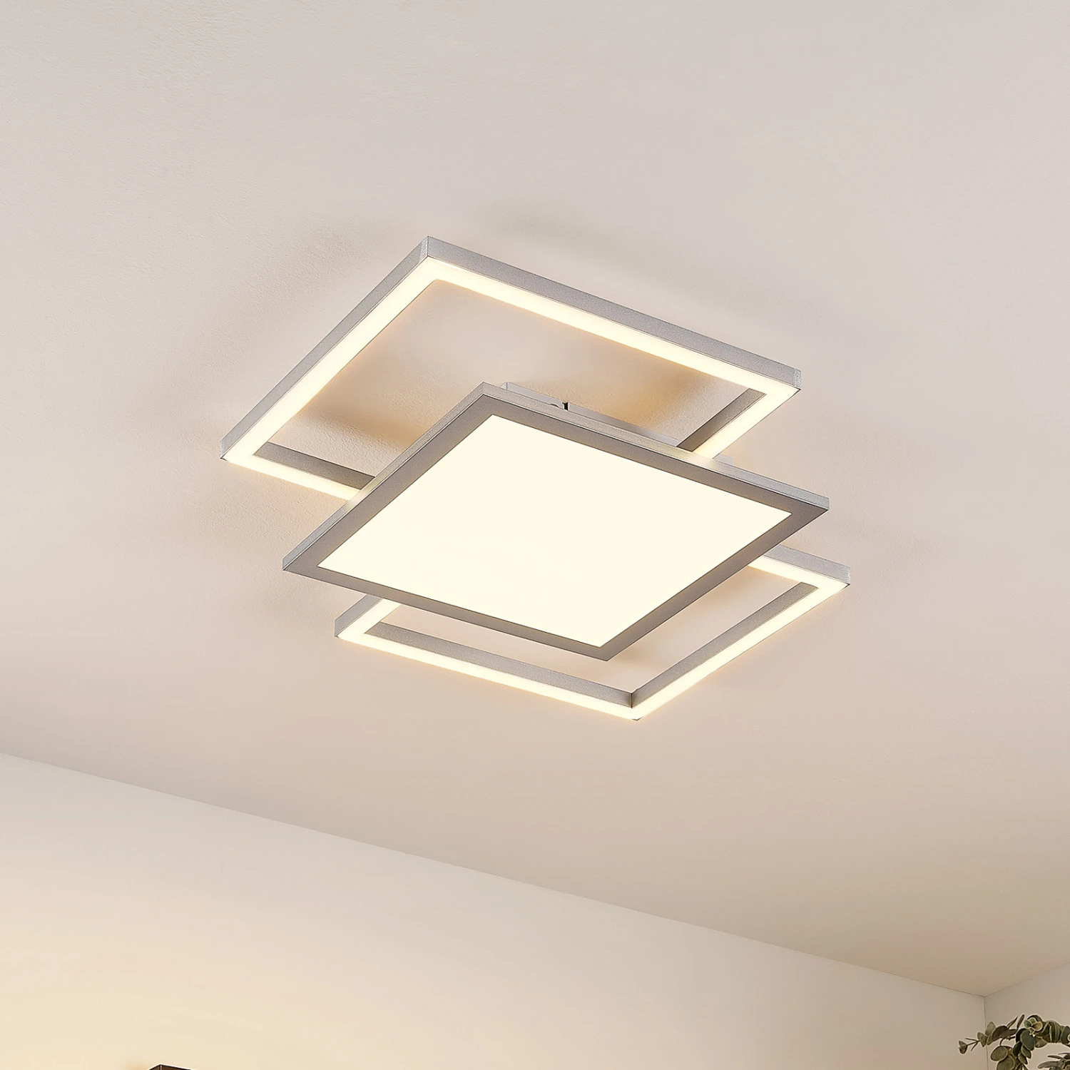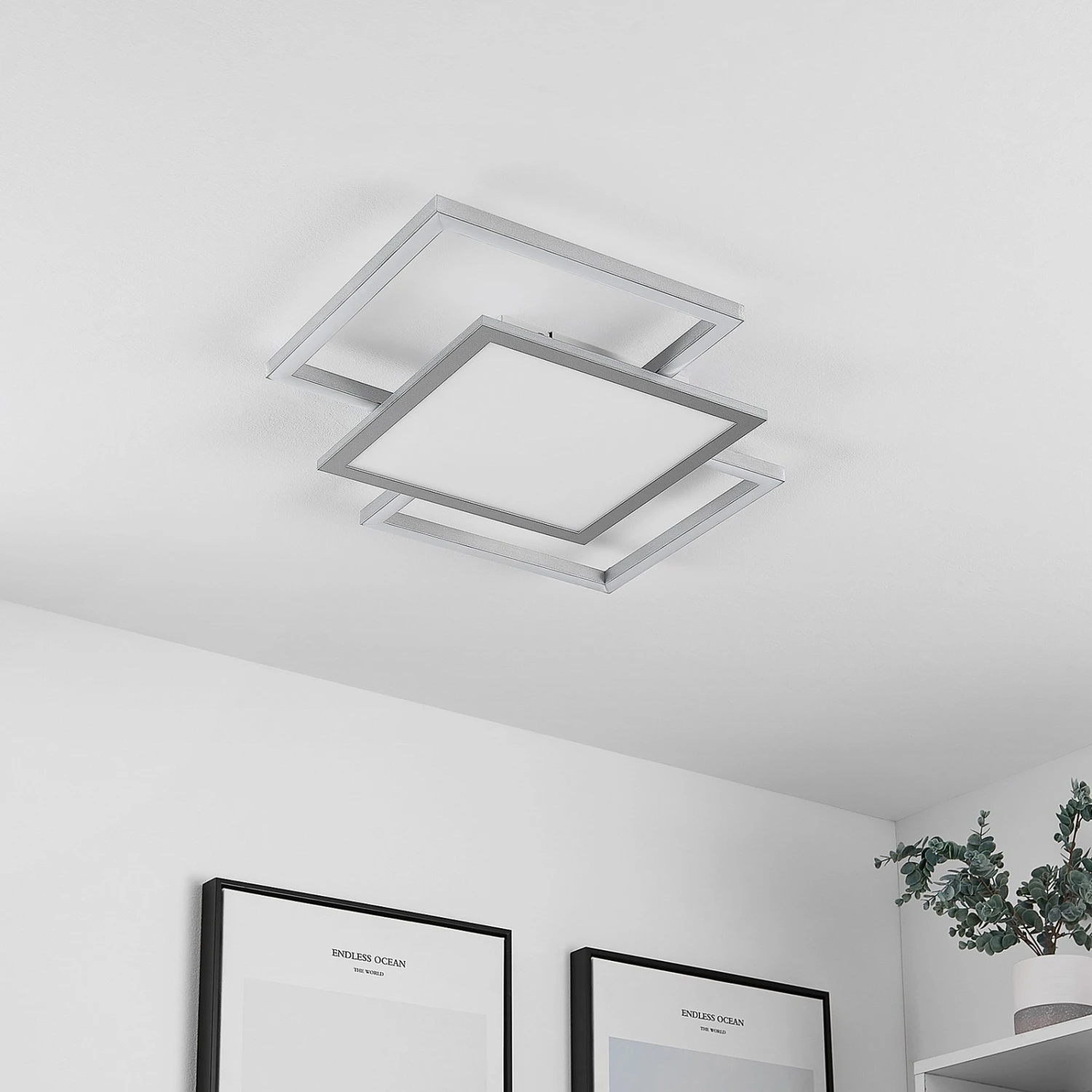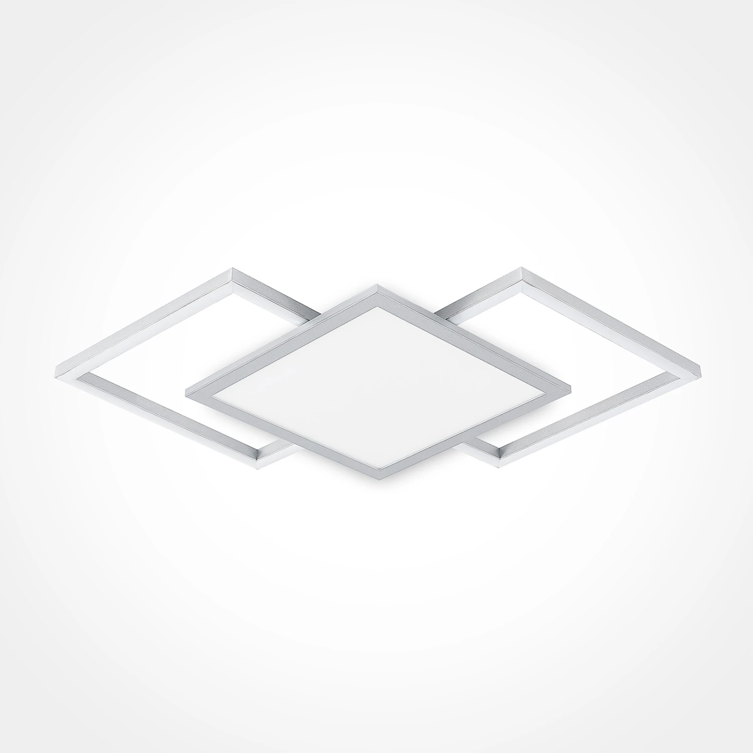 Die LED-Deckenlampe Ciaran verbindet ein modernes Aussehen mit zweckmäßigen Funktionen. Sie besteht aus zwei quadratischen Rahmen und einem Viereck, welche sich überlappen und ein attraktives, symmetrischen Muster ergeben. Ihr Leuchtenkörper besteht aus Eisen und Aluminium, was ihr ein glattes und elegantes Aussehen verleiht.