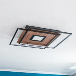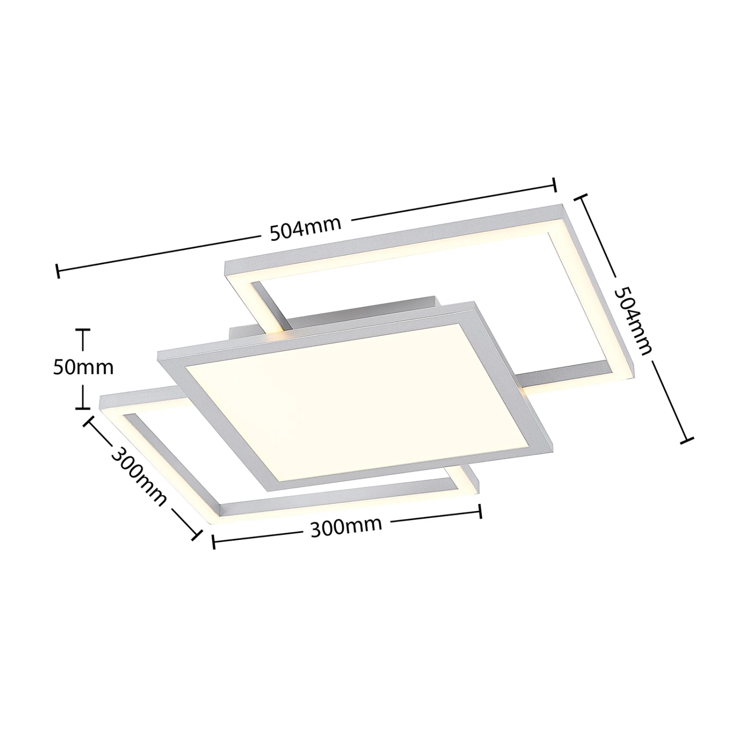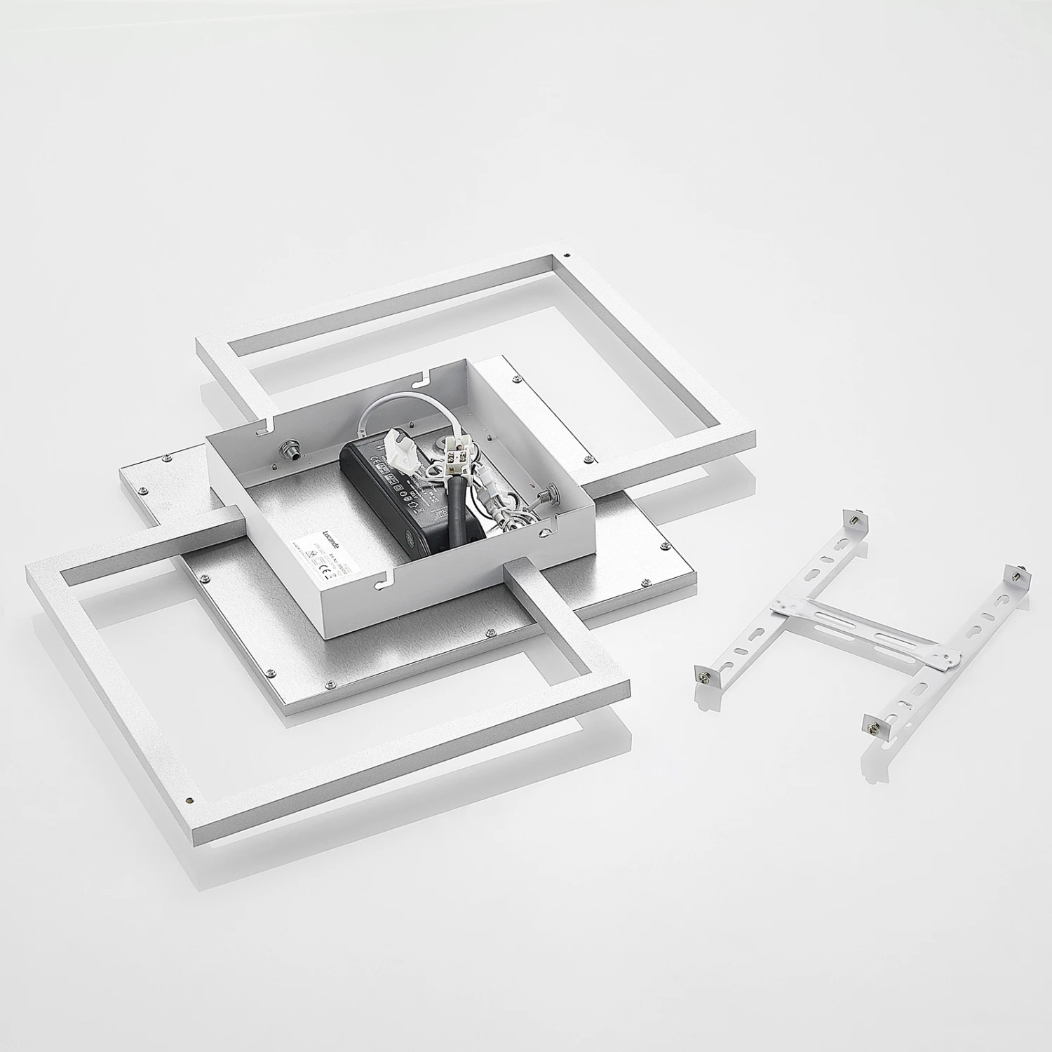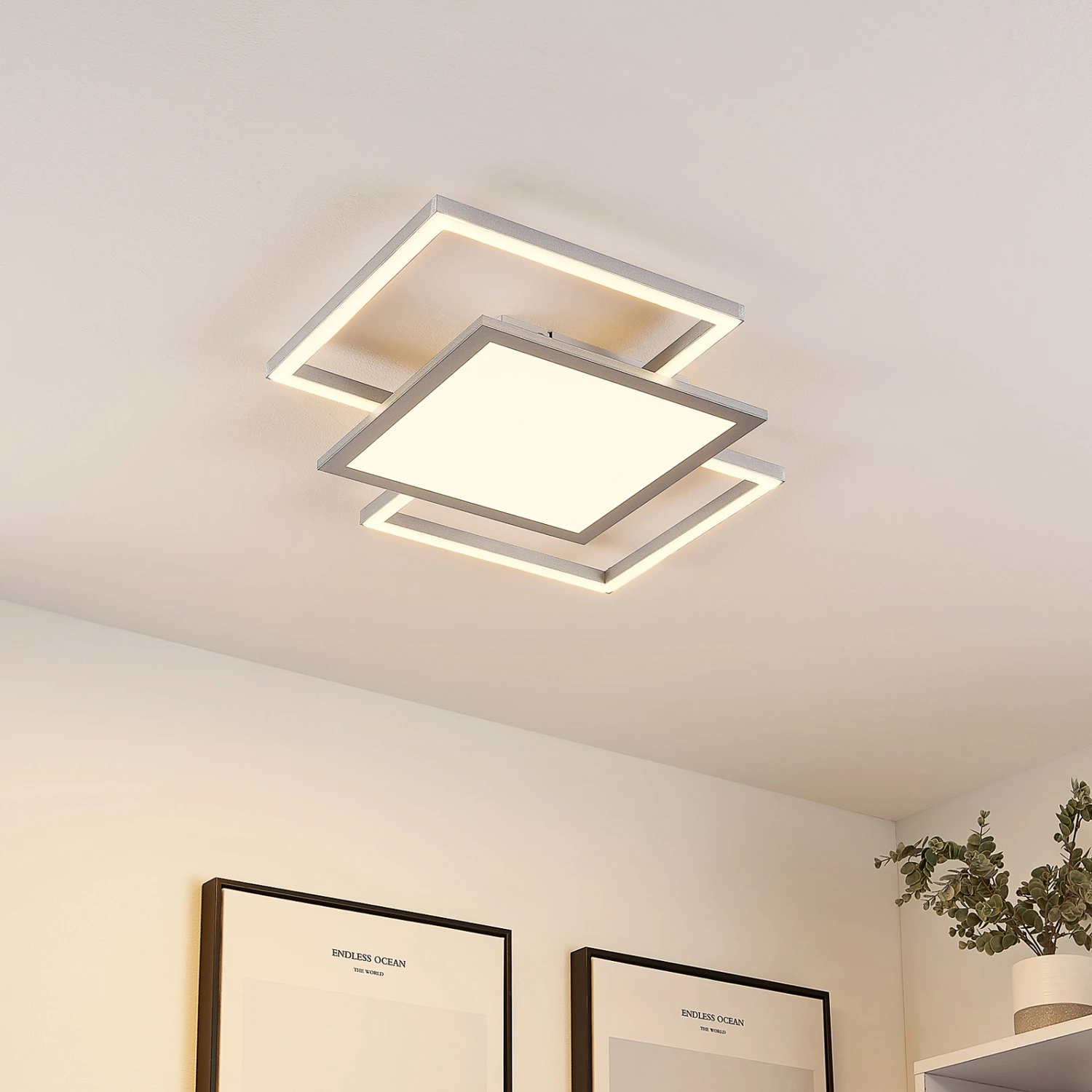 Die LED-Deckenlampe Ciaran verbindet ein modernes Aussehen mit zweckmäßigen Funktionen. Sie besteht aus zwei quadratischen Rahmen und einem Viereck, welche sich überlappen und ein attraktives, symmetrischen Muster ergeben. Ihr Leuchtenkörper besteht aus Eisen und Aluminium, was ihr ein glattes und elegantes Aussehen verleiht.