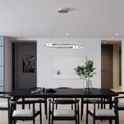 Mit Hilfe der 4-Stufen-Dimmtechnik sowie der regulären Off-Funktion lässt sich die Leuchte in 100 %, 60 %, 30 % und 13 % ihrer gängigen Helligkeit dimmen und wie gewohnt an- und ausschalten. Dies geschieht durch das mehrmalige Betätigen des Wandschalters. Das stilvolle, silberne Design der LED-Deckenleuchte Ciaran eignet sich hervorragend für die Installation in einem Wohnzimmer und setzt attraktive Akzente an Wohnungsdecken. Das eher dezente Äußere, integriert sich mühelos in verschiedenste Einrichtungsstile, ohne dabei das restliche Mobiliar zu überschatten.