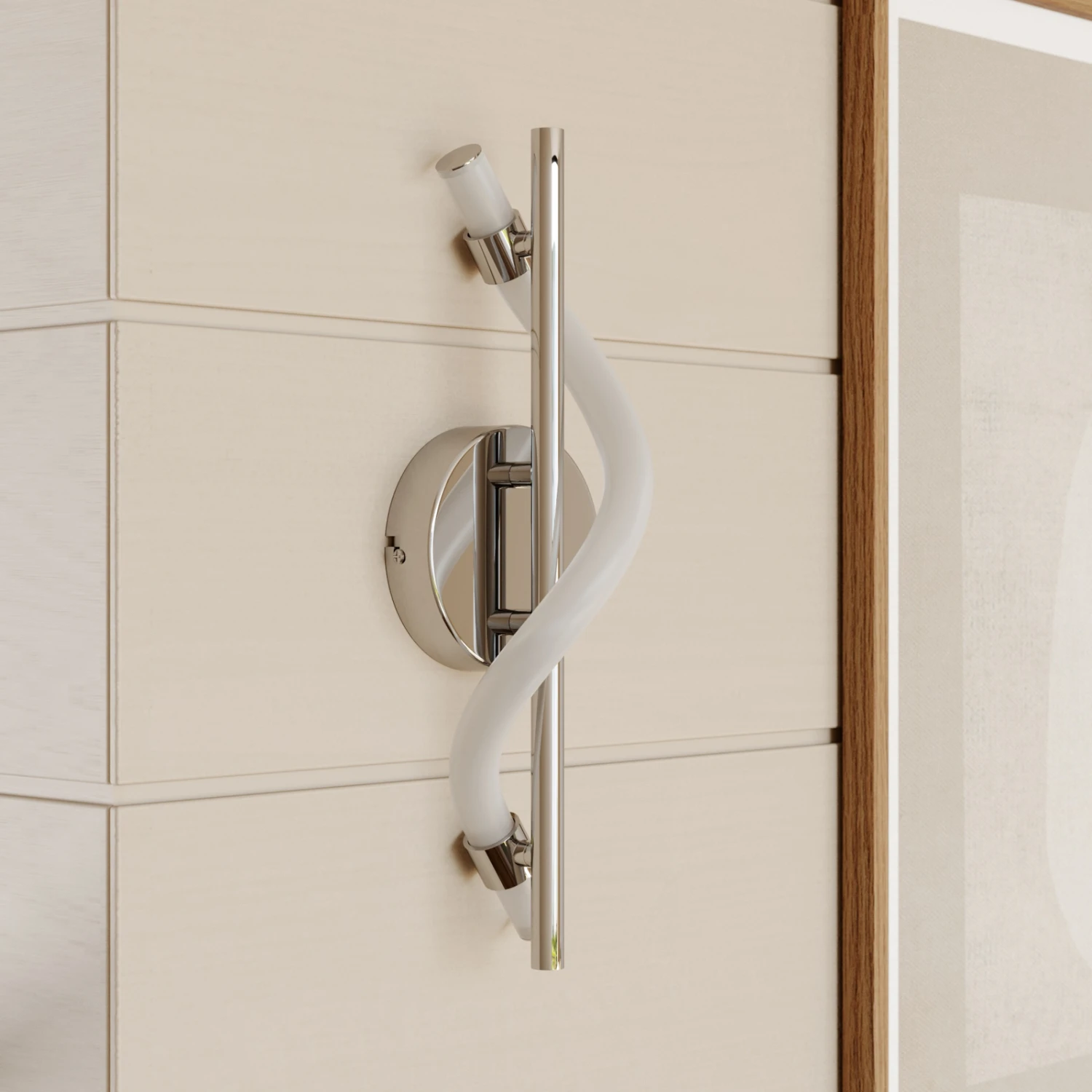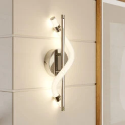 Das Gestell besteht aus einer runden Montageplatte, an der ein Metallstab befestigt ist. Um den Stab herum windet sich die LED-Leuchtröhre empor. Der Materialmix aus Edelstahl und Kunstoff sowie die gelungene Farbwahl in modischem Chrom verleihen der Leuchte ein modernes Flair, das sich wunderbar in zeitgenössisches Interieur eingliedern lässt.