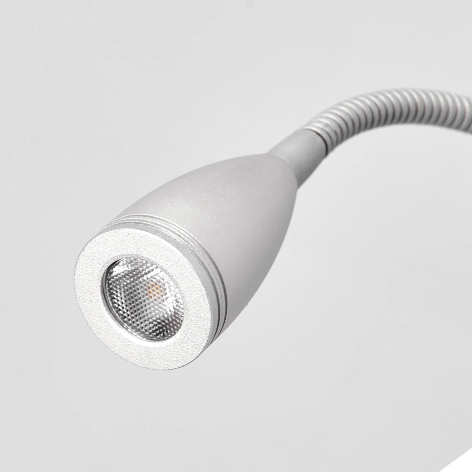 Torin hat eine silbergraue Oberfläche, die recht zeitlos erscheint, und einen integrierten Flexarm, an dessen Ende ein Leuchtkopf mit integrierter LED von Cree sitzt. Durch den Flexarm lässt sich die LED-Wandleuchte nicht nur ín eine zielgerichtete Position bringen, die hervorragend zum Lesen geeignet ist, sondern es ist auch möglich, eine indirekte Lichtausrichtung zu verwirklichen, wodurch die Atmosphäre etwas heimeliger wirkt. Bei den LEDs braucht man sich nicht um einen hohen Energieverbrauch zu sorgen, denn der liegt trotz heller Leuchtkraft im niedrigen Bereich.