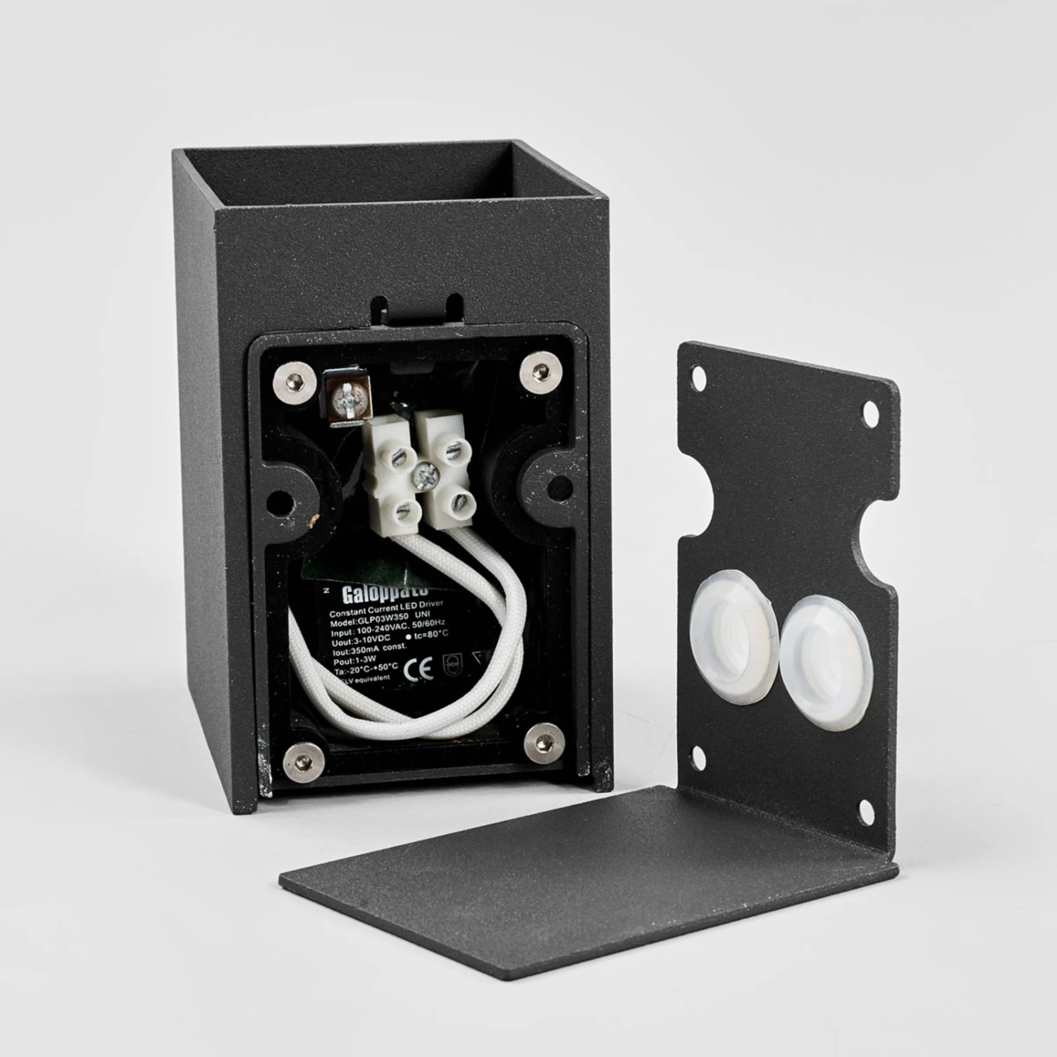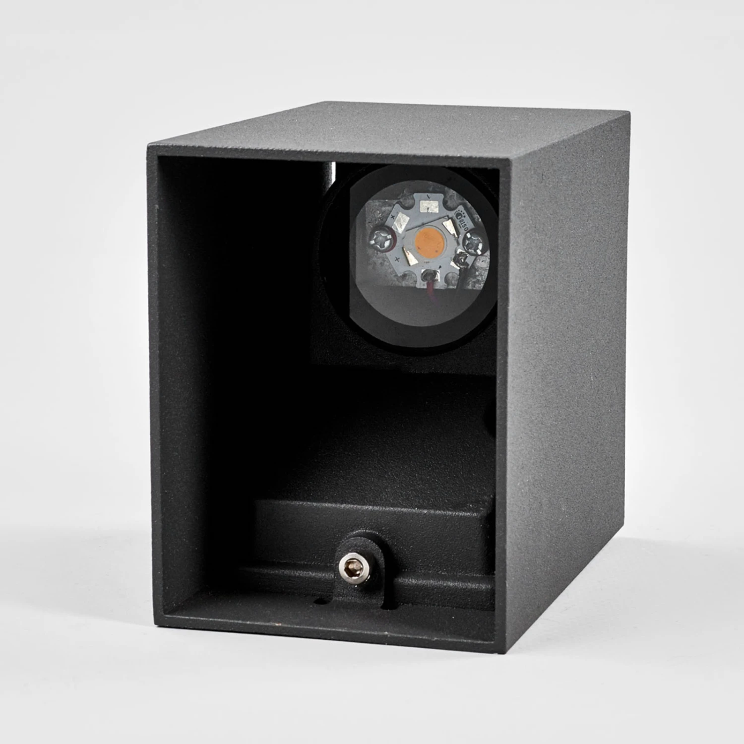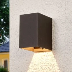 Mikka zählt zu den dezenten Lichtspendern für den Außenbereich. Im ausgeschalteten Zustand sieht man lediglich eine Art Quader an der Wand. Schaltet man die LED-Außenwandleuchte ein, dann kommt ein schöner Lichtkegel hinzu, der je nach Anbringung nach oben oder unten weist. Die fest verbauten LEDs sind Leuchtmittel mit einer hohen Lichtausbeute, denn der Energieverbrauch ist gering, die Leuchtkraft aber gut.