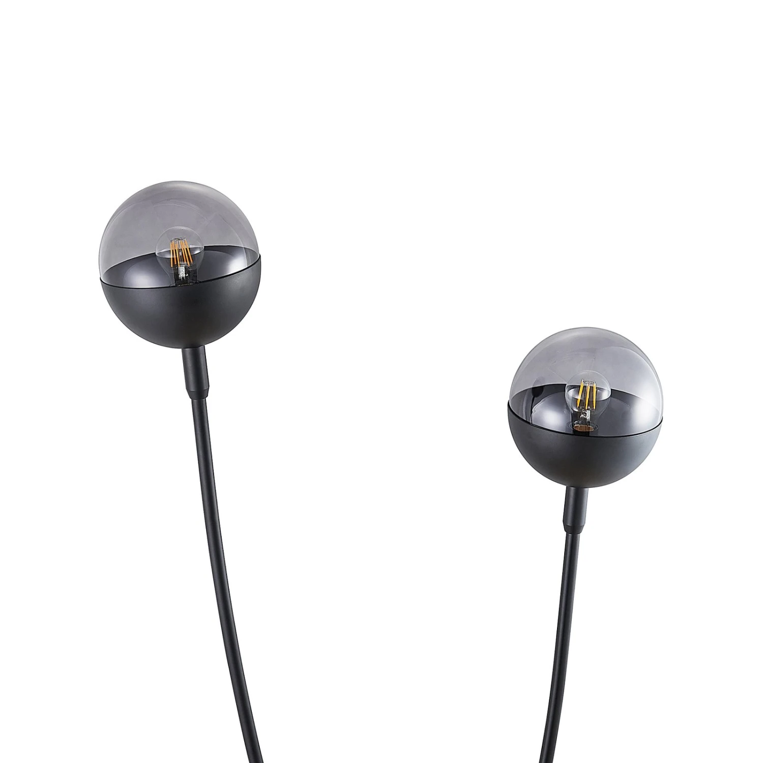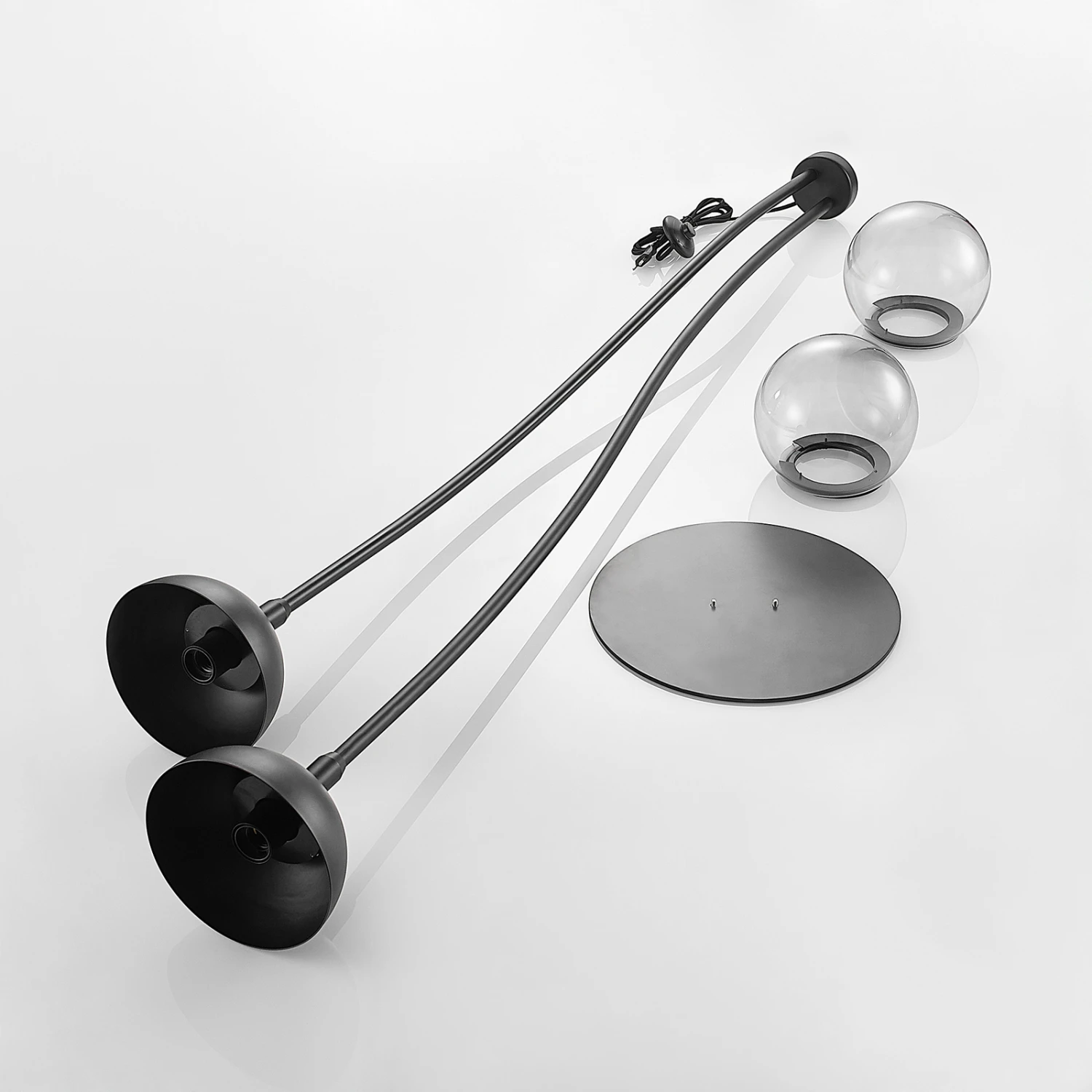 Zweiflammige Stehlampe Dustian mit Kugelschirmen aus Glas und Metall, designorientierte Optik