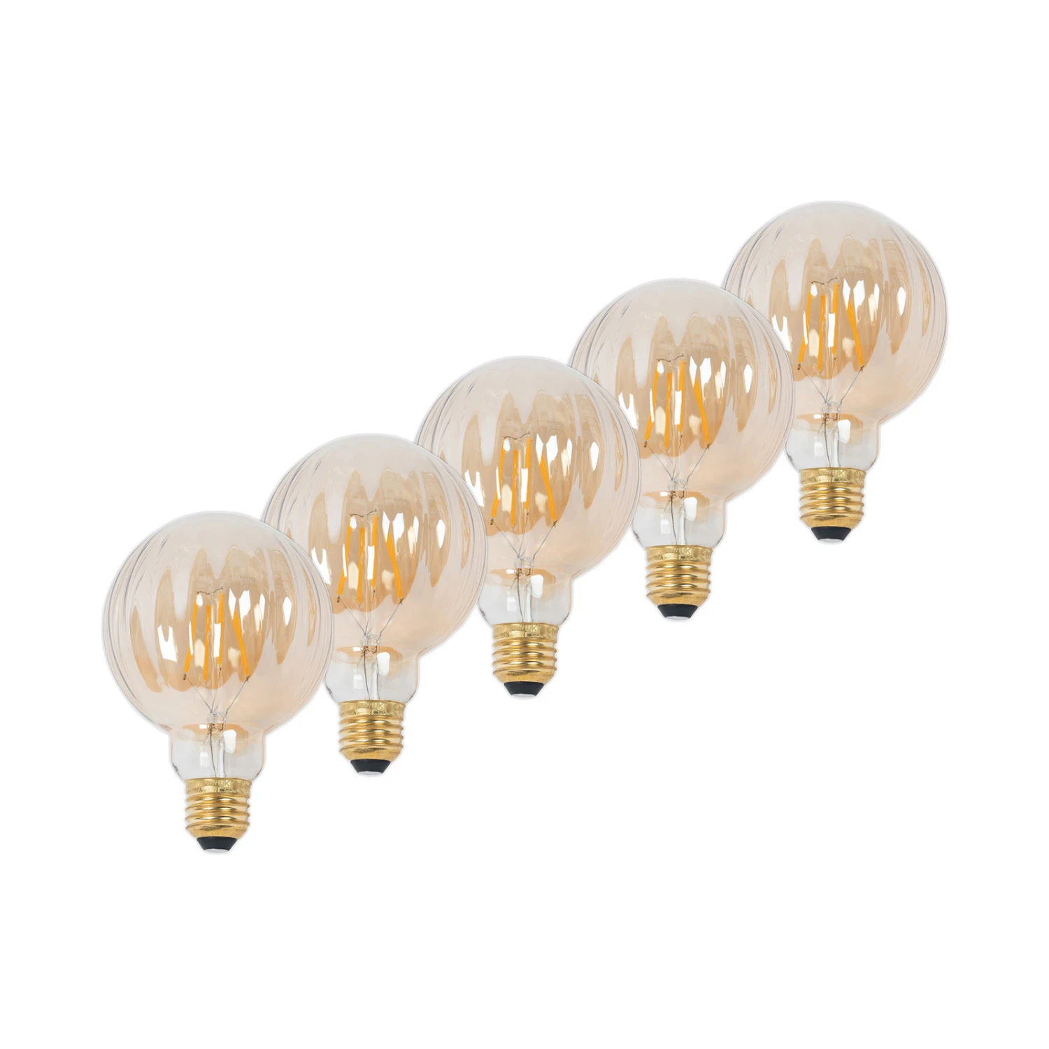 E27-LED-Lampe in G95-Globeform mit amberfarbener Oberfläche und Rillenstruktur, dimmbar, CRI > 90 – in praktischem 5er-Set