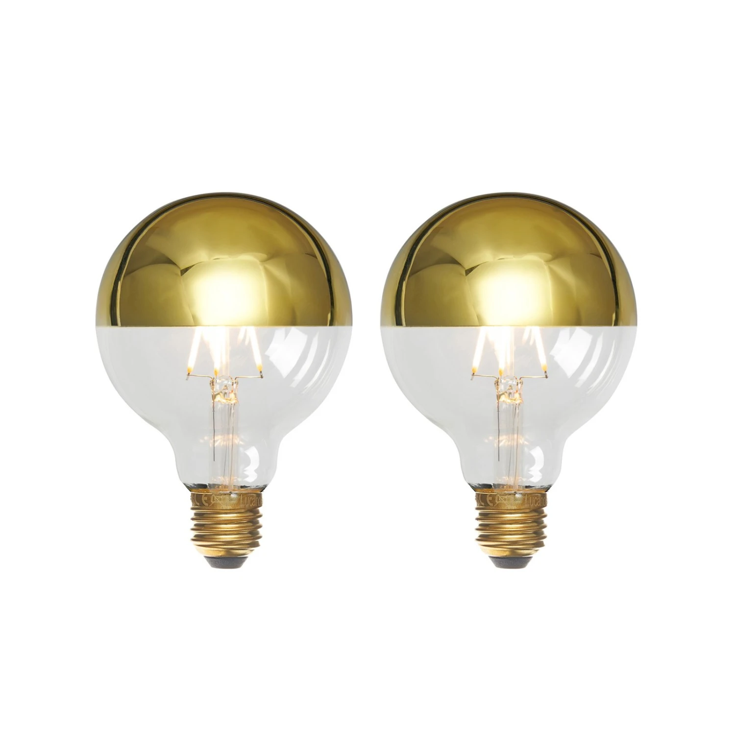 E27 LED-Filament-Globelampe, golden kopfverspiegelt, CRI > 90, dimbar, G95 – in praktischem 2er-Set