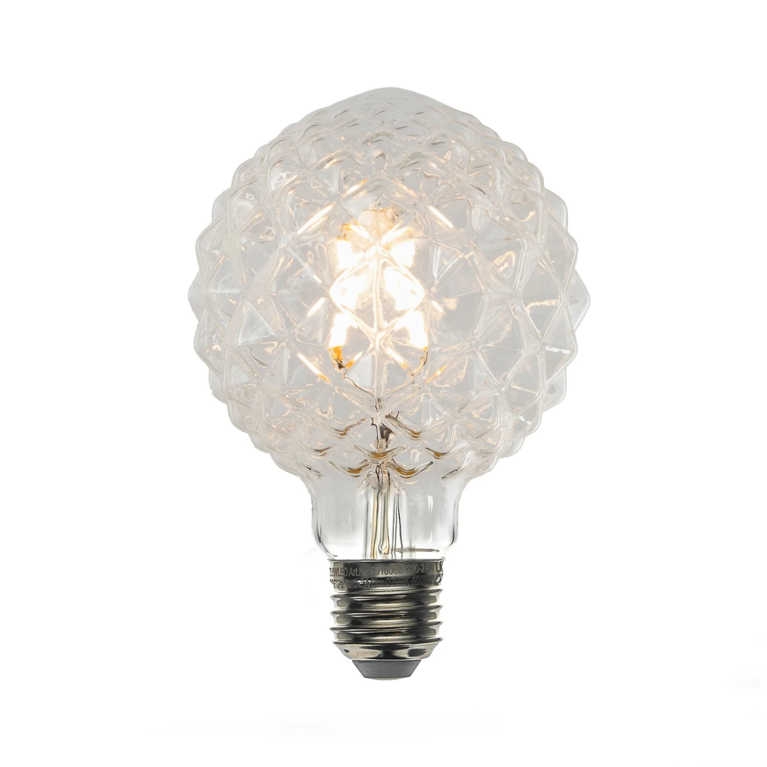 Diese LED-Globelampe ist außergewöhnlich gestaltet mit dem interessant strukturierten Glaskolben, der für eine ganz besondere und atmosphärische Lichtwirkung sorgt, weil der Lichtschein mehrfach gebrochen und reflektiert wird und sich in einem Spiel aus Licht und Schatten im Raum abbildet. Die LED-Filamentlampe mit den G95-Abmaßen lässt sich zudem bei Bedarf dimmen, hat eine warmweiße Lichtfarbe und einen hohen CRI-Wert, der eine besonders gute Farbwiedergabe ermöglicht.