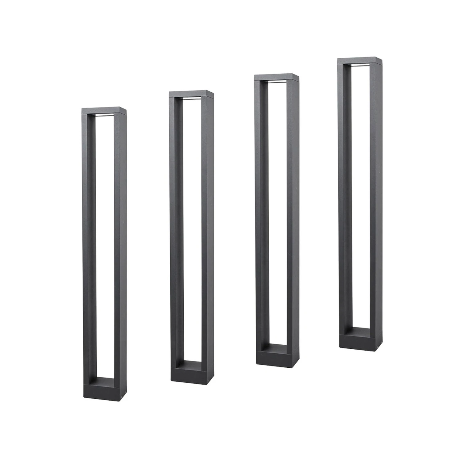 4er-Pack: LED-Pollerleuchte Jupp mit sanftem Lichtschein, grafitgrauer Oberfläche und eckiger Rahmenform