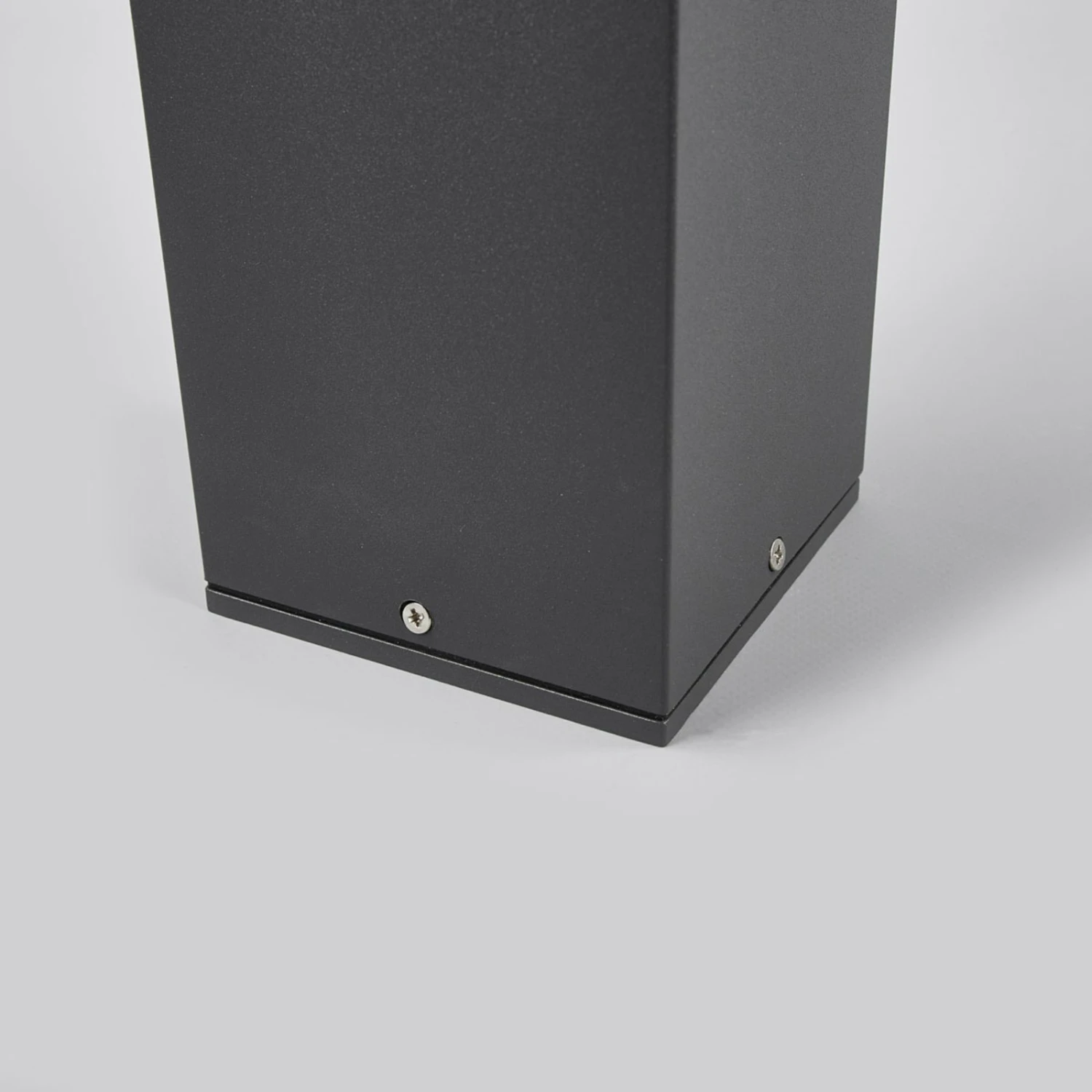 Wegeleuchten kann man entlang von Gartenwegen oder für Hofeinfahrten verwenden, wo dann ein Lichtpunkt erzeugt wird, der je nach Platzierung von vielen Seiten sichtbar ist und nützliche Orientierung in der Dunkelheit bietet. Nicola ist als LED-Wegeleuchte angenehm schlicht und unverkennbar modern in der Form. Der Korpus besteht aus grafitgrauem Aluminium und zu allen vier Seiten sind besonders schlagfeste Temperglaseinsätze eingelassen, die ausreichend Schutz vor Witterungeinflüssen und Bruch bieten. Was das Leuchtmittel betrifft, so ist die Wegeleuchte Nicola mit einer 7 W starken Bridgelux LED sparsam im Energieverbrauch, denn es wird ein Lichtstrom von über 77 Lumen pro Watt erzeugt. Die LED sitzt unterhalb der oberen Abdeckung und erzeugt deshalb angenehm indirektes Licht. Ideale Beleuchtung für modern gestaltete Außenbereiche!