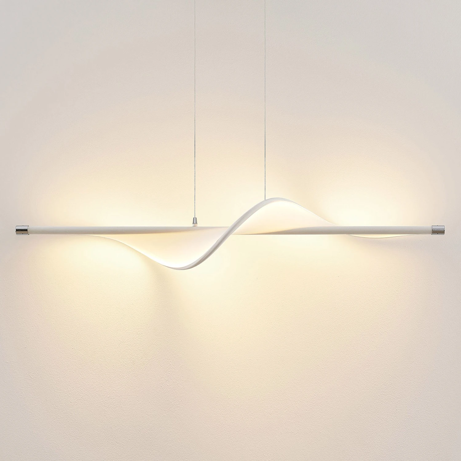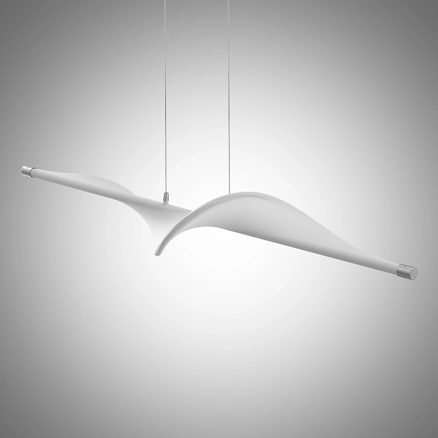 Die LED-Hängeleuchte Edano wirkt einerseits durch ihre Größe und andererseits durch ihre besondere Gestaltung sehr außergewöhnlich. Der lange Schirm aus textilem Material wirkt mit seinen Wölbungen sehr interessant und lässt Assoziationen an die Flügel eines Seglers im Wind aufkommen.