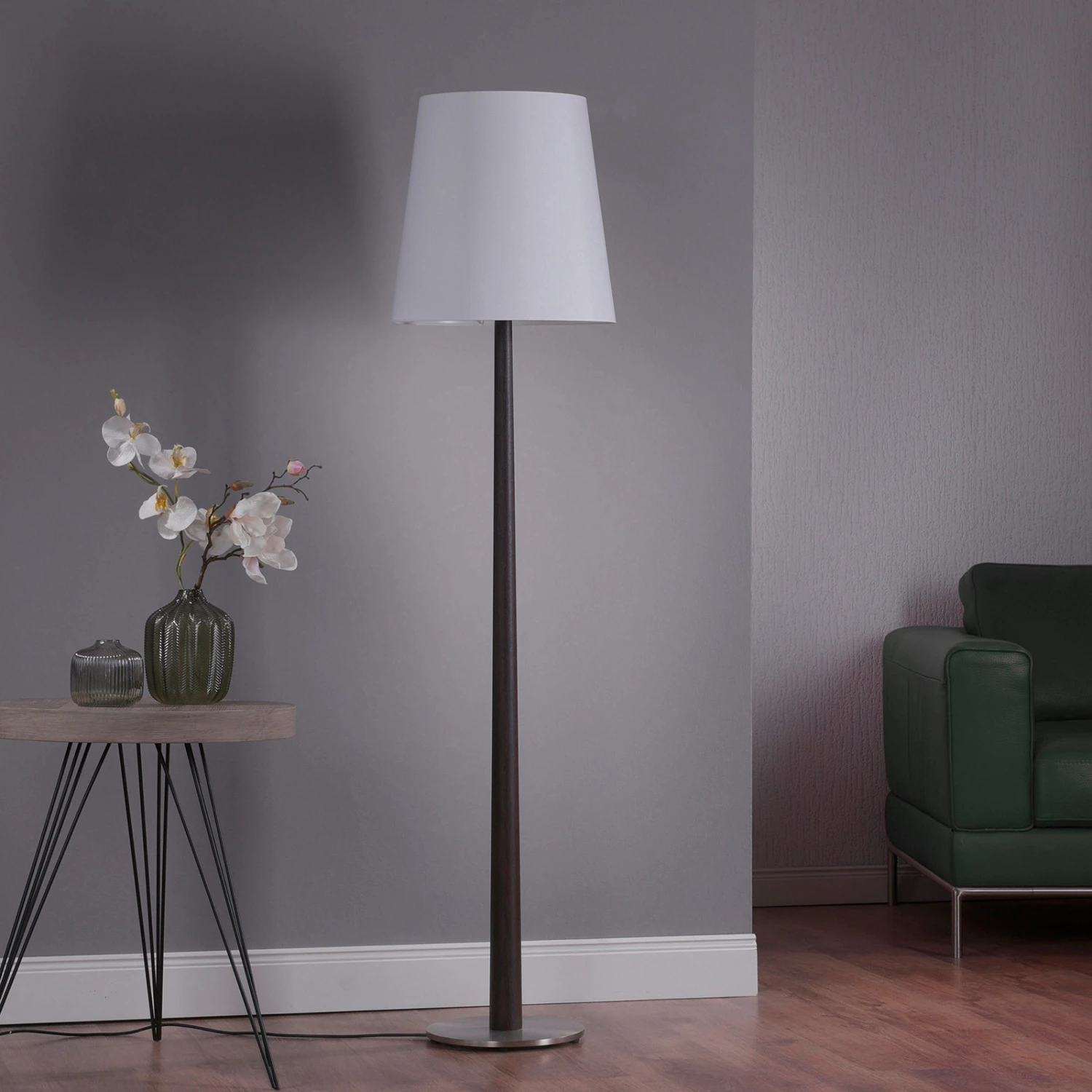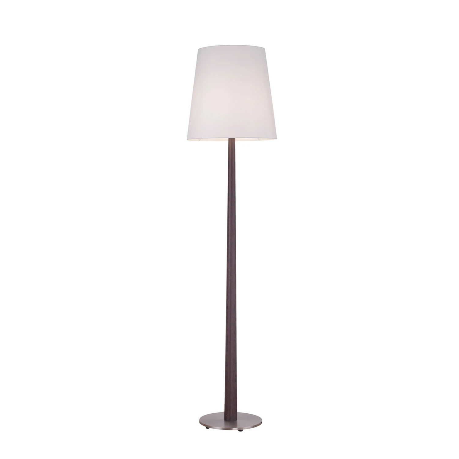 Die stilvolle Stehleuchte Elif überzeugt direkt auf den ersten Blick: Mit ihrem konisch geformten Holzfuß, der aus massiver Eiche kolonial besteht, und dem ebenfalls konischen Lampenschirm in Weiß ist ein harmonischer Kontrast von Hell und Dunkel geschaffen, der stilvoll und elegant jeden Wohnraum aufwertet. Das Holz wurde hierbei in aufwändiger Handarbeit bearbeitet und gefertigt. Für die Stabilität der Leuchte sorgt ein passender, runder Stahlsockel in Nickel matt.