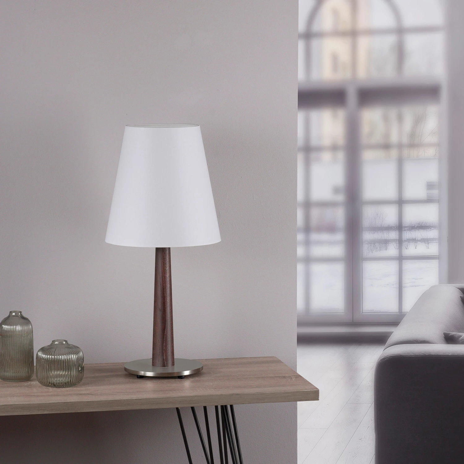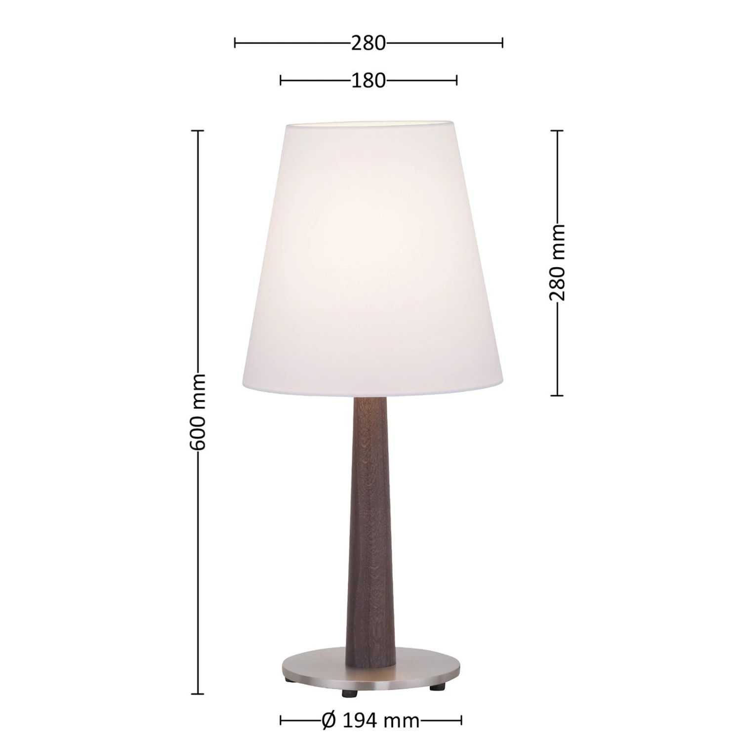Lucande Elif Tischlampe Weiß, Konisch Eiche Dunkel