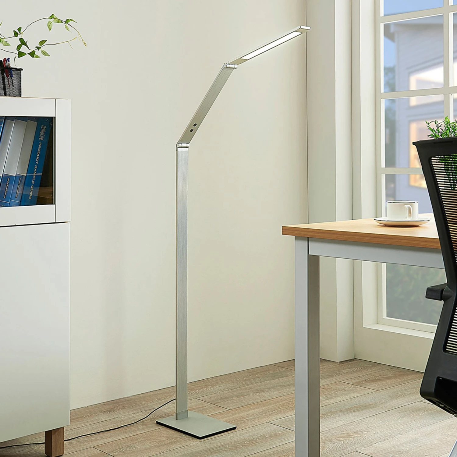 Nicano ist eine LED-Stehleuchte, die unverkennbar in moderner, detailreduzierter Optik gehalten ist und sich gut in puristische Wohnstile einpasst. Sie kann hervorragend als Leselampe verwenden werden, wenn sie hinter oder neben einer Couch oder einer anderen Sitzgelegenheit platziert wird. Dort ist es dann von Vorteil, dass man die Ausrichtung der Leuchte über zwei Gelenke individuell bestimmen kann.