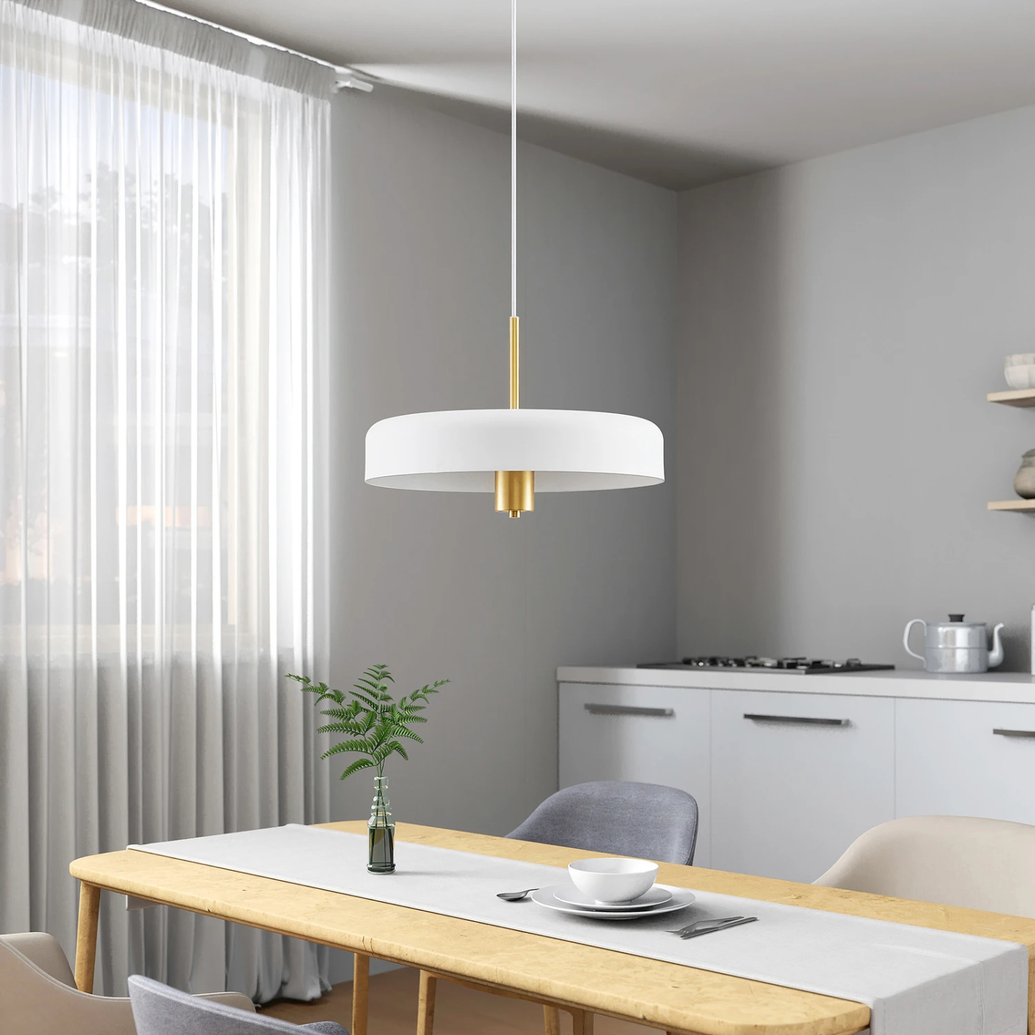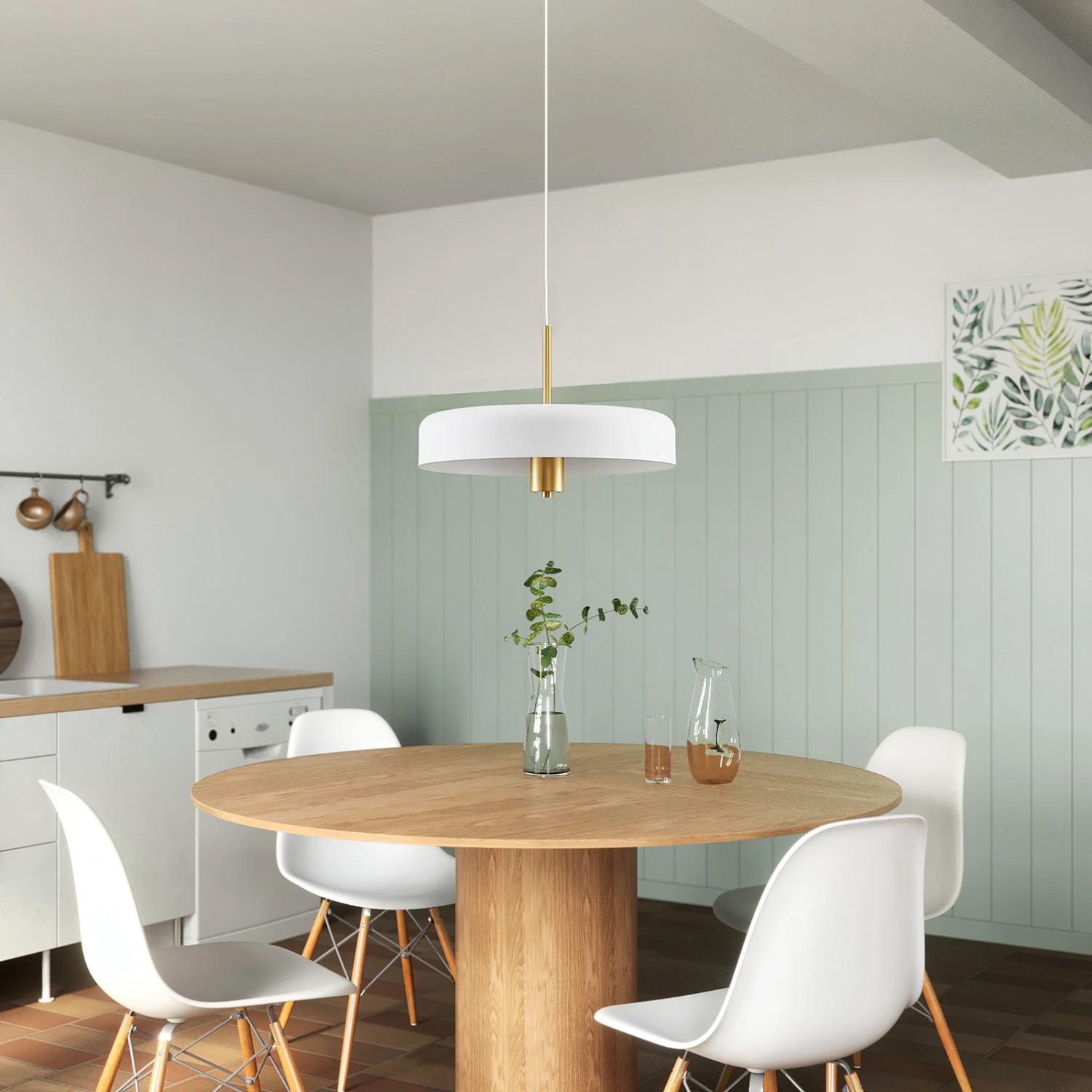 Flache, weiße Design-Pendellampe Filoreta als stilvolle Ergänzung für den Esstisch