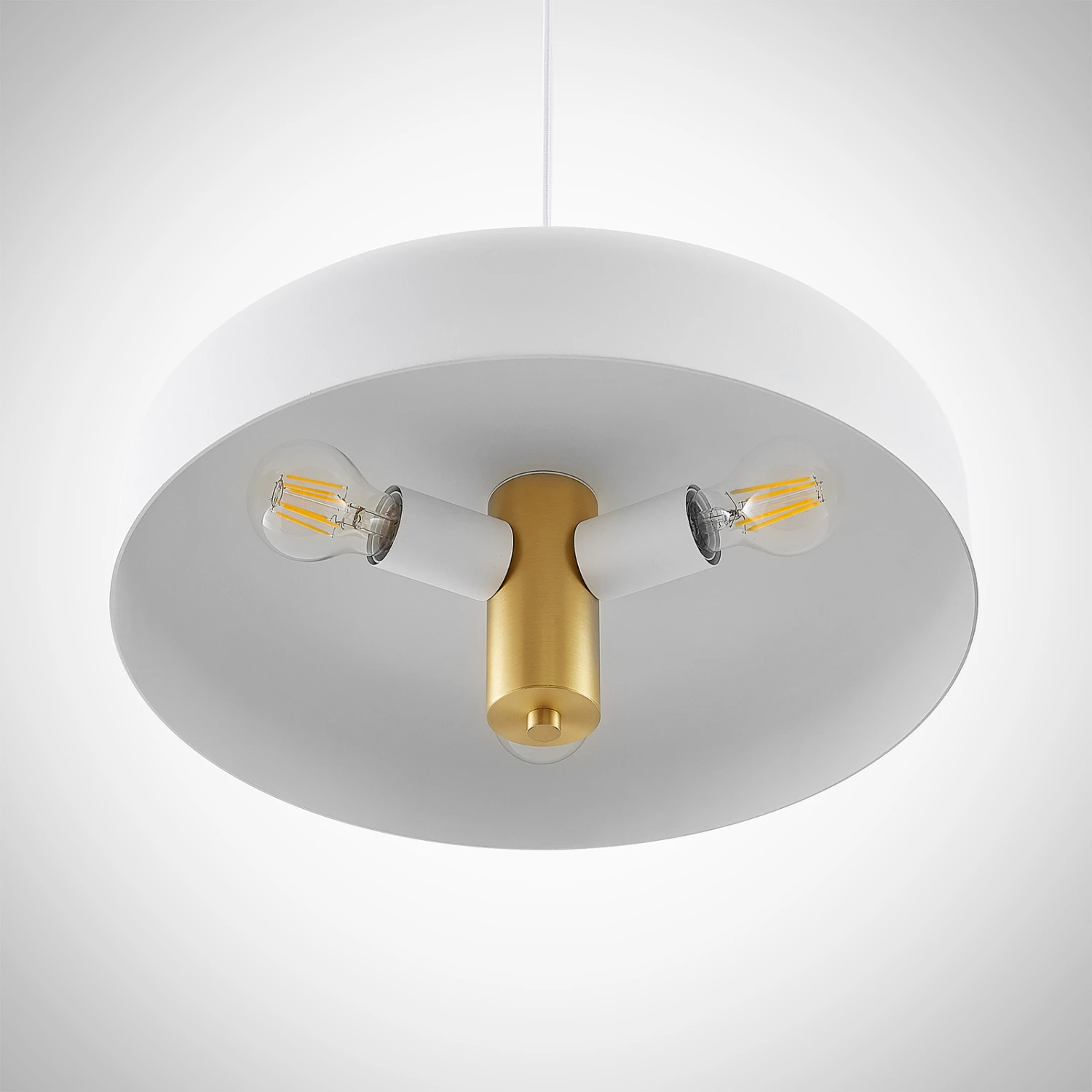 Die zeitlose Oberfläche in Mattweiß wirkt ausgewogen und wird ergänzt von kleineren Details in gebürstetem Messing, wobei auch das stoffummantelte Kabel in dieser warmtönigen Farbe gehalten ist. Dies alles beweist einen Sinn für ausgesuchte Details, die bei dieser Design-Pendelleuchte harmonisch aufeinander abgestimmt sind.