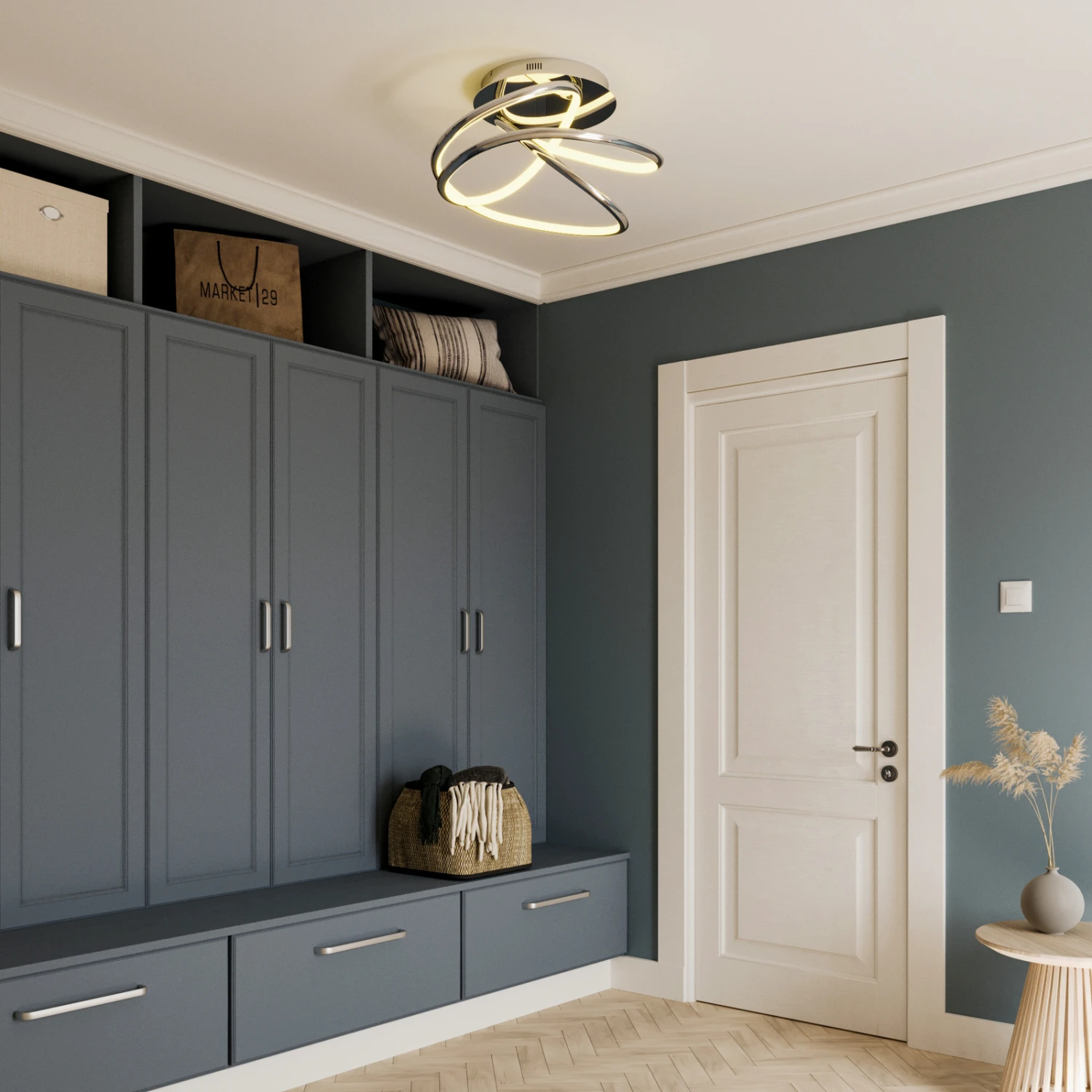 Das Design von Fluxus ist von Harmonie gekennzeichnet. Reduziert auf das Wesentliche, erzielt die Deckenlampe einzigartige Lichteffekte im Raum. Mit ihrem warmweißen Licht hüllt diese schöne Leuchte den Wohnbereich in eine wohlige und gemütliche Atmosphäre.