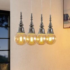 Esszimmer-Pendellampe Gesja in vierflammiger Ausführung ohne Leuchtenschirme, verchromt