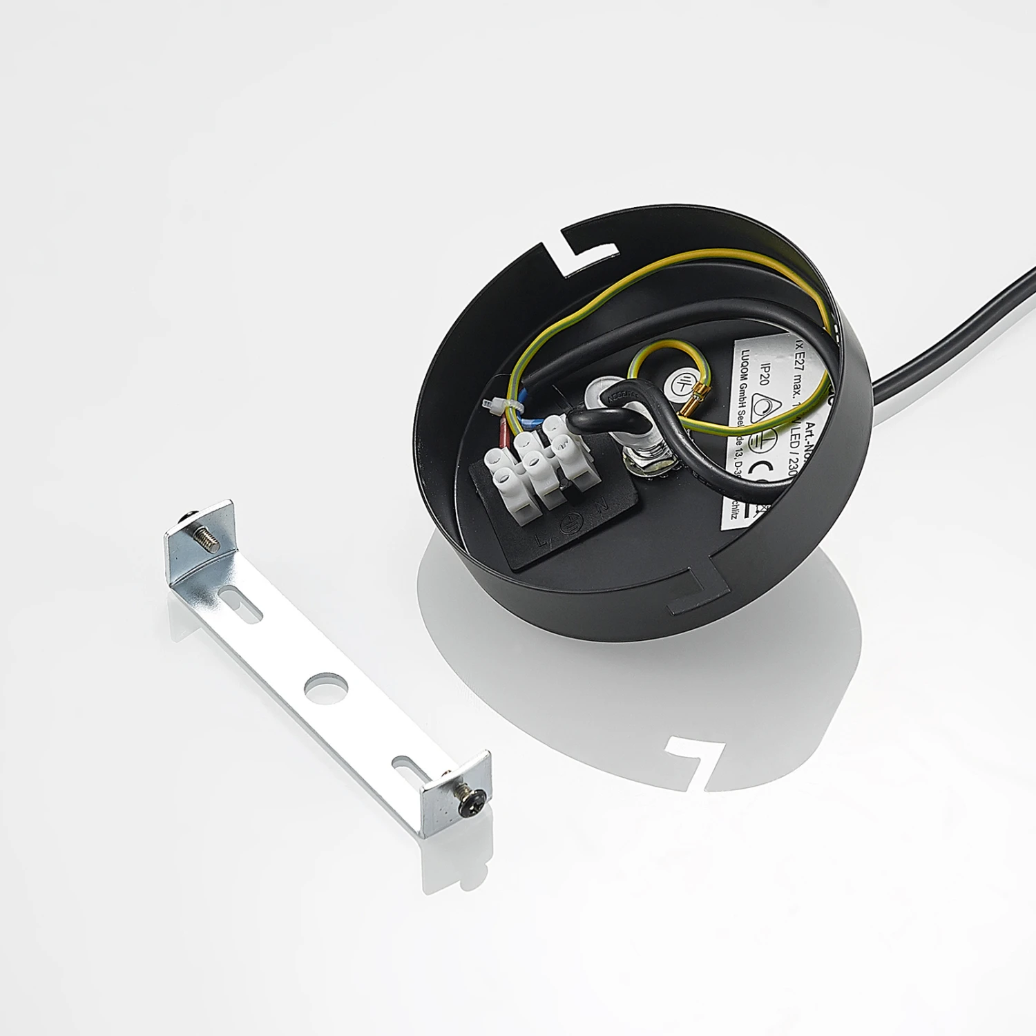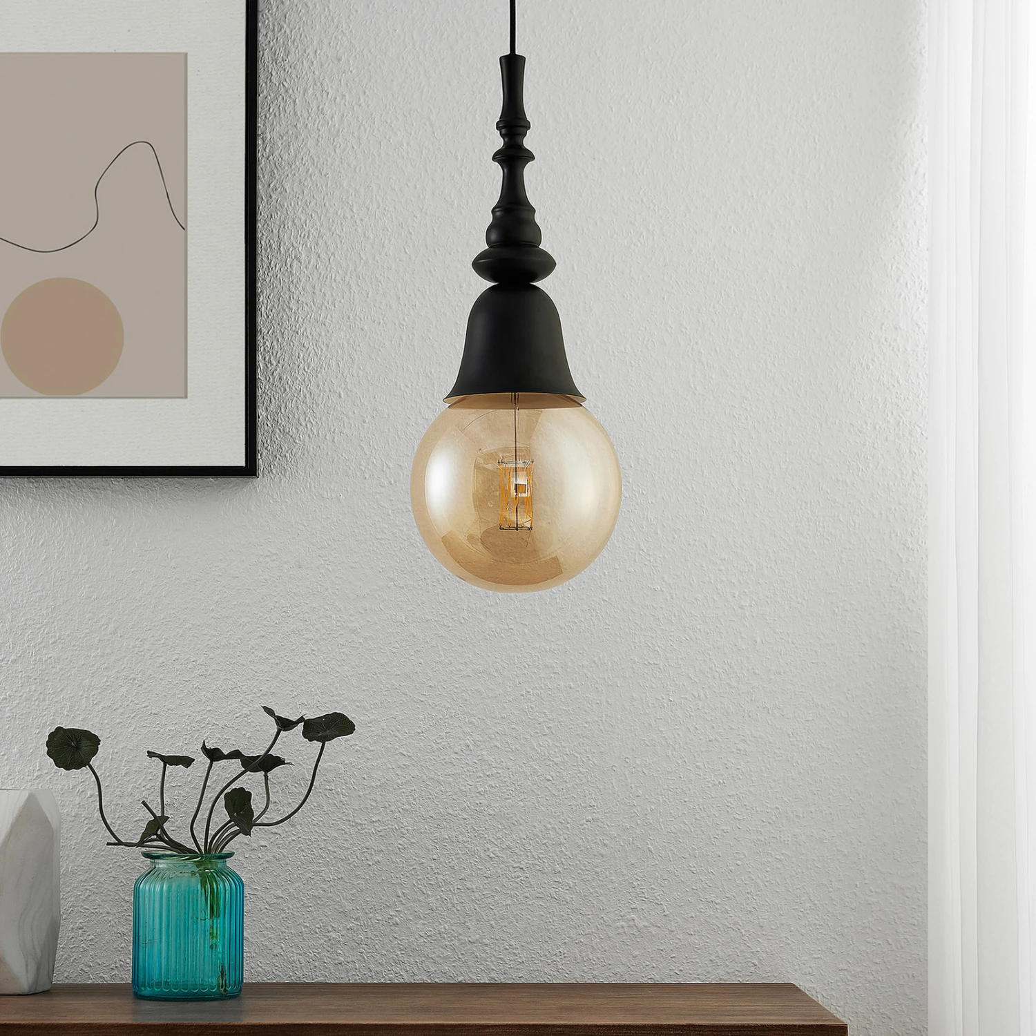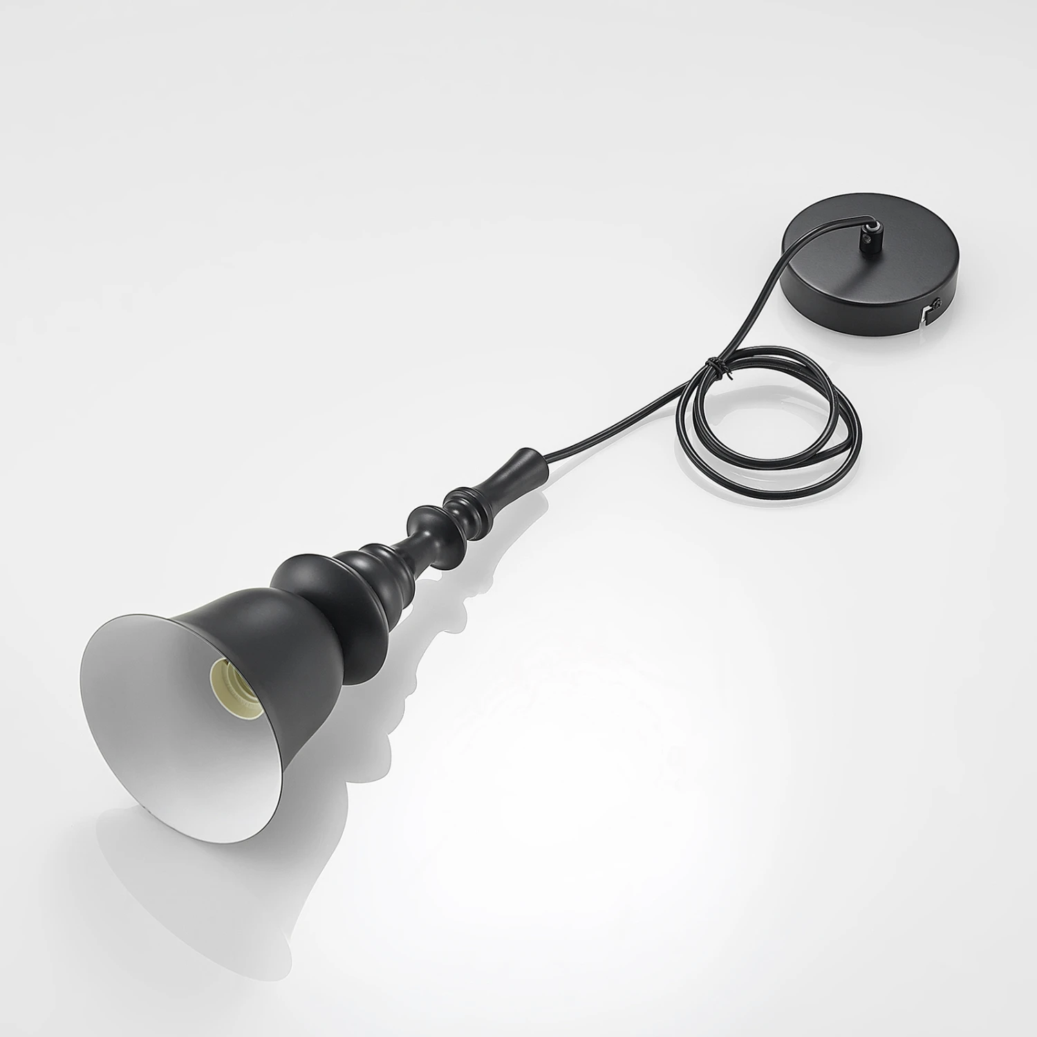 Gesja ist eine Pendelleuchte, die keinen richtigen Schirm besitzt, sondern vielmehr eine hübsch gestalte Lampenfassung. Dabei überzeugen die barocken Formen und das schwarze Finish der Leuchte gleichermaßen und vereinen Nostalgie und Modernität zu einem harmonischen Ganzen. Ergänzt werden sollte die Hängeleuchte am besten von einem Globe-Leuchtmittel, das größere Abmaße zu verzeichnen hat als jene Lampen im klassischen Glühlampenformat. Damit wird die Fassung voll ausgefüllt und dem Leuchtmittel kommt optisch eine größere Präsenz zu. Viele Flure und Wohnbereiche können mit dieser kompakt wirkenden Leuchte gut beleuchtet und dezent in Szene gesetzt werden. Entsprechend passende Leuchtmittel können separat über das Zubehör bestellt werden.