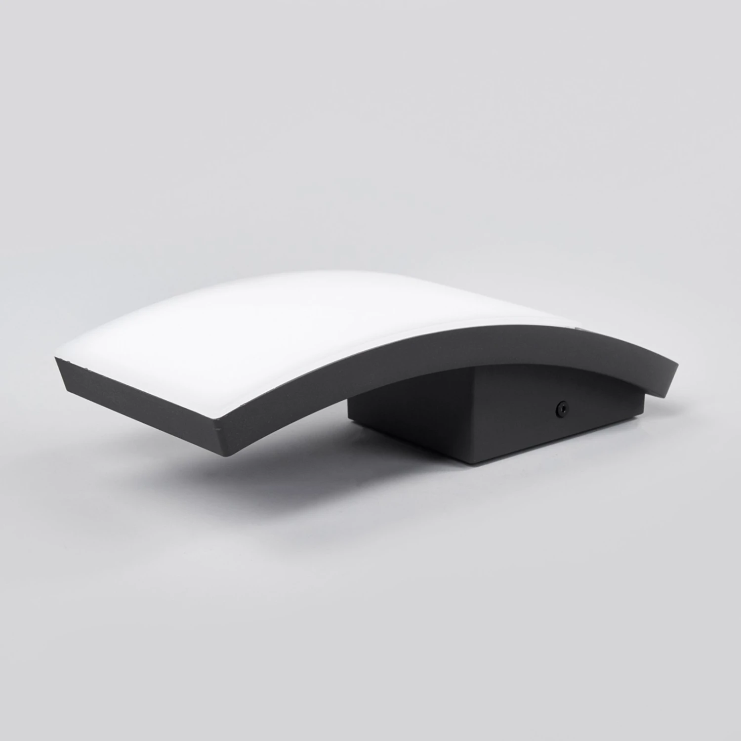 Siara ist für die Nutzung im Außenbereich konzipiert, die Schutzart IP54 kennzeichnet in dieser Hinsicht, dass die Leuchte ausreichend vor Nässe und Schmutz geschützt ist. Die Optik der LED-Außenwandleuchte kann man als schlicht und modern bezeichnen, denn das Aussehen ist detailreduziert und wirkt eher minimalistisch. Blickt man von der Seite auf die LED-Außenwandleuchte, dann kann man sehen, dass der Leuchtenkörper leicht gewölbt ist. Die LEDs verbergen sich hinter einer opalweißen Blende aus Polycarbonat und ihr warmweißes Licht erfährt deshalb eine relativ weiche und gleichmäßige Verteilung, so dass die Hausumgebung angenehm erhellt wird.