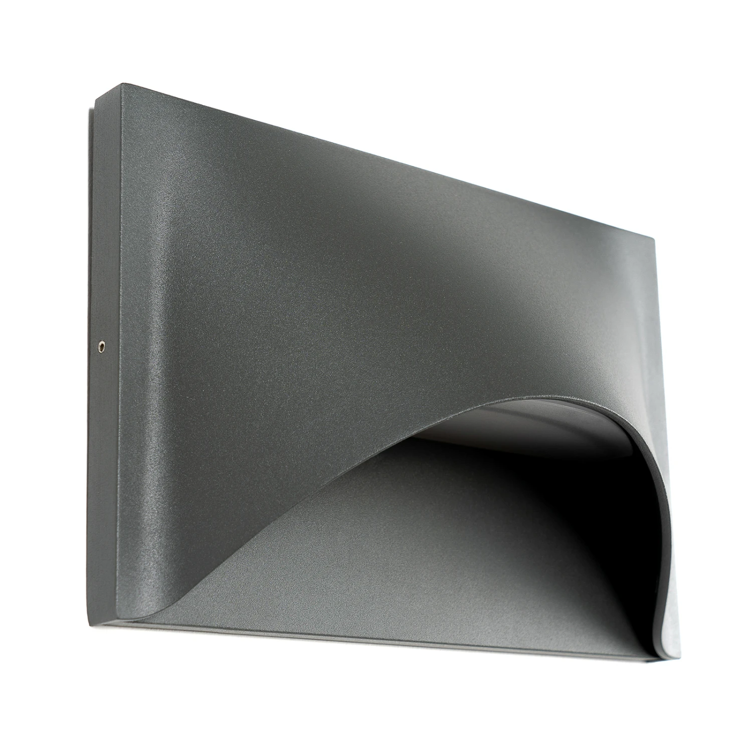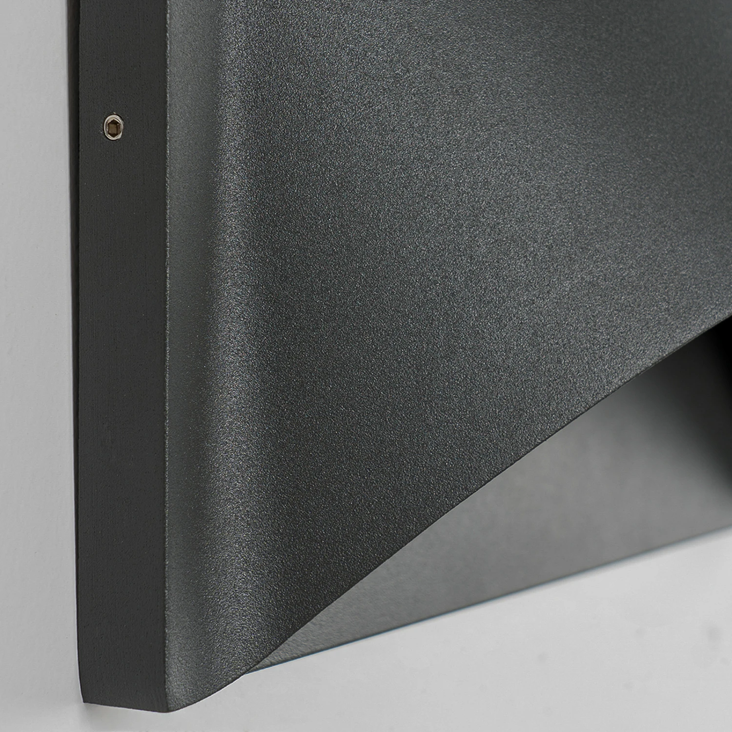 Die LED-Außenwandleuchte Gianovia besitzt ein eckiges Gehäuse, das zugleich leicht nach außen geschwungen ist. Unter der elegant geformten Abdeckung aus dunkelgrauem Aluminium verbergen sich fest verbaute LEDs, die leuchtstark und zugleich verbrauchsarm sind. Das nach unten abgestrahlte Licht besitzt eine warmweiße Lichtfarbe und wirkt sehr einladend im Bereich des Hauseingangs oder der Terrasse. Dank ihrer guten Schutzart kann diese Wandleuchte langfristig und zuverlässig im Außenbereich dienen und schmückt auch im ausgeschalteten Zustand die Hauswand.